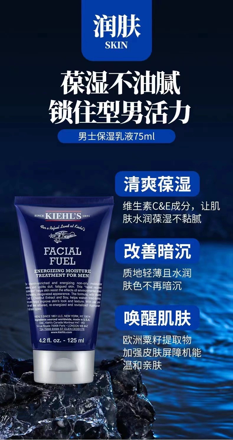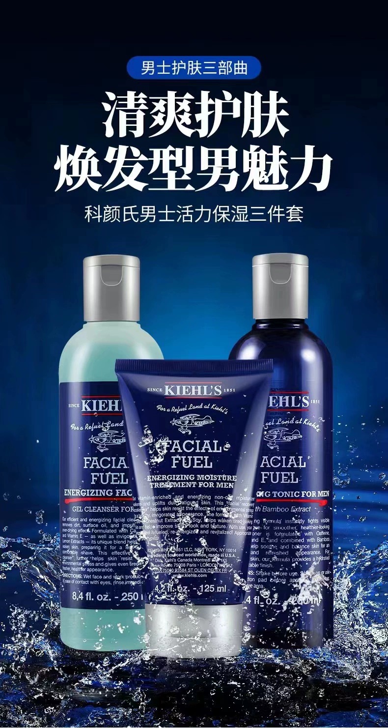 KIEHL'S 科颜氏 男士保湿三件套(洁面250ml+爽肤水250ml+乳液125ml)