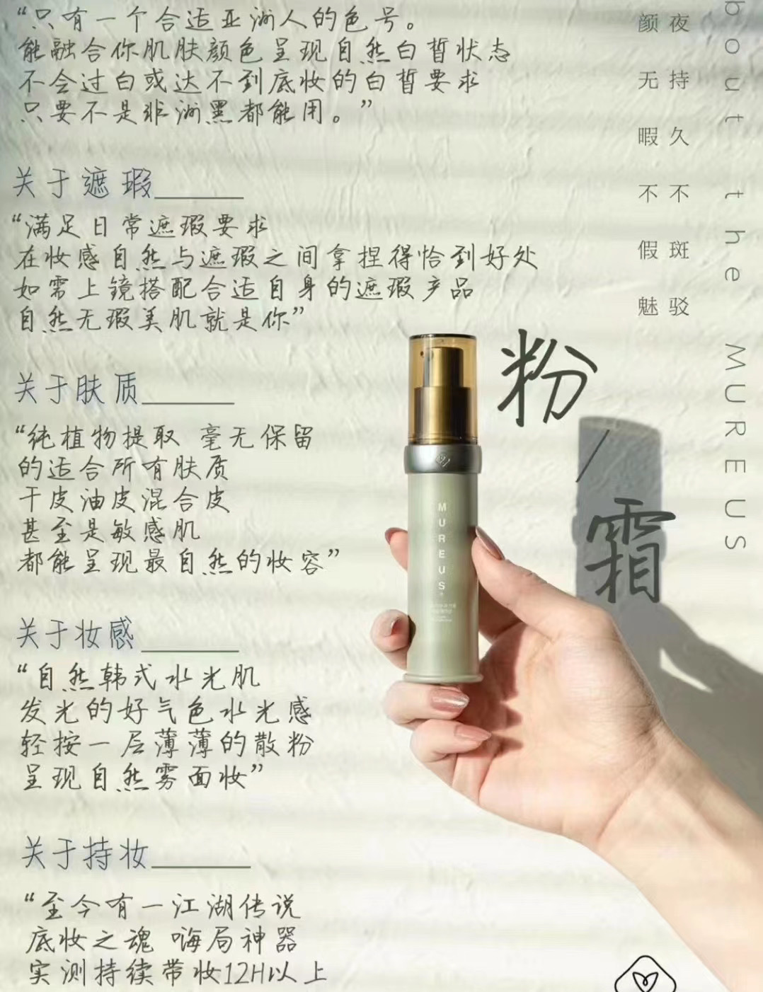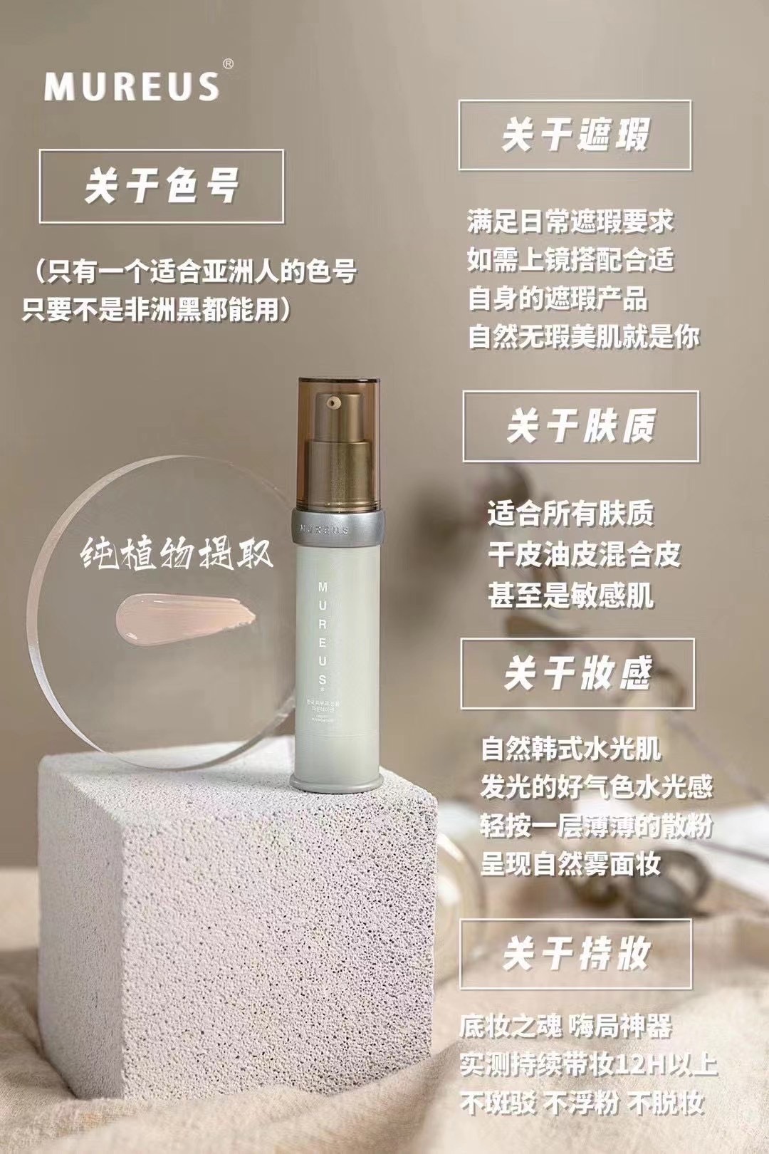 粉底液韩国MUREUS院线粉霜 纯植物提取干皮油皮都可用,韩式水光肌遮瑕持妆