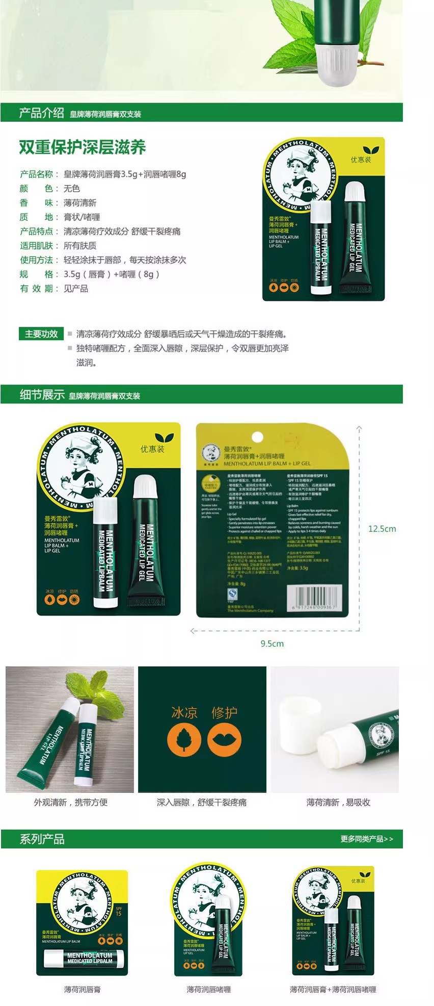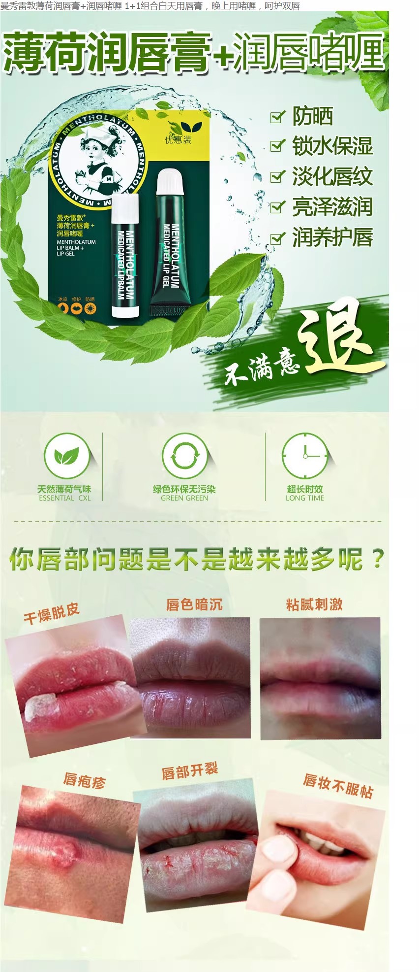 【29元会员福利】曼秀雷敦薄荷润唇啫喱+唇膏8g
