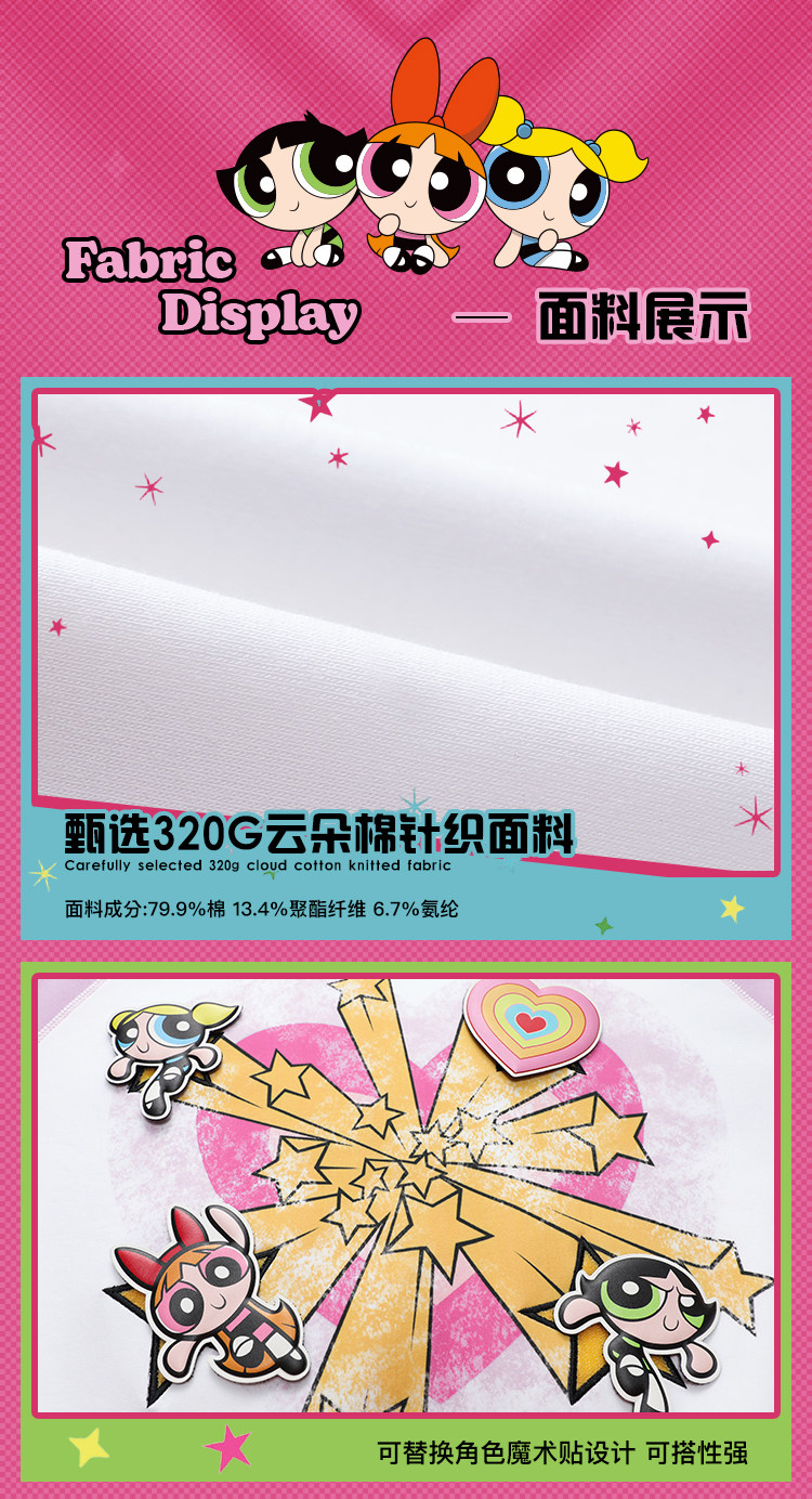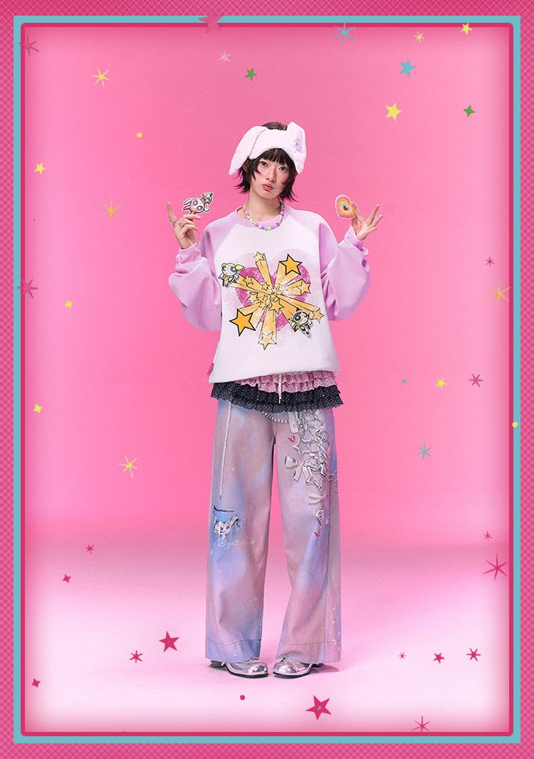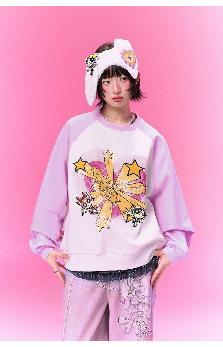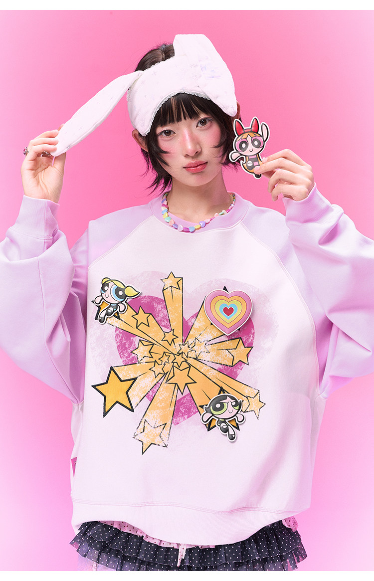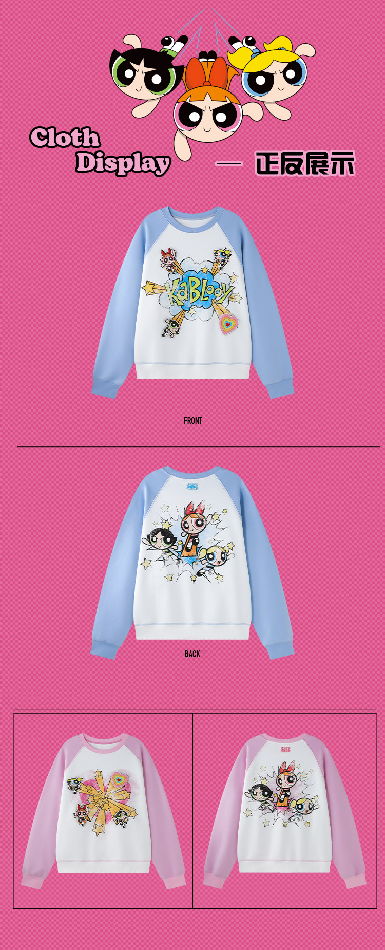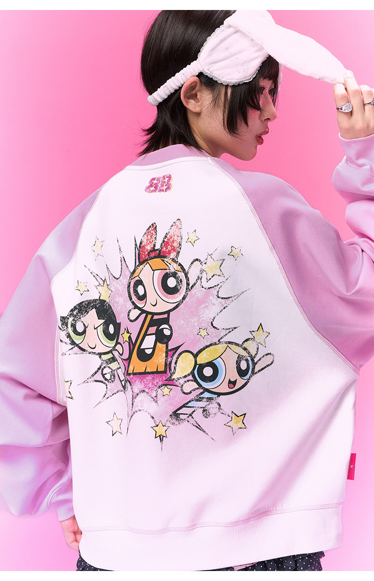 飞天小女警联名BJHG不计后果无帽卫衣女款春季新款潮粉色贴贴上衣