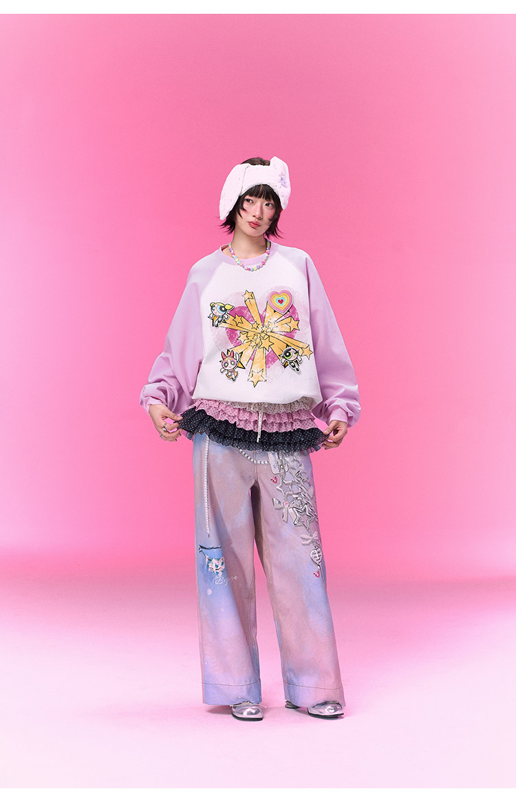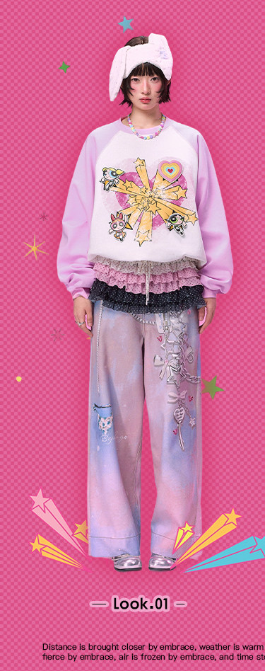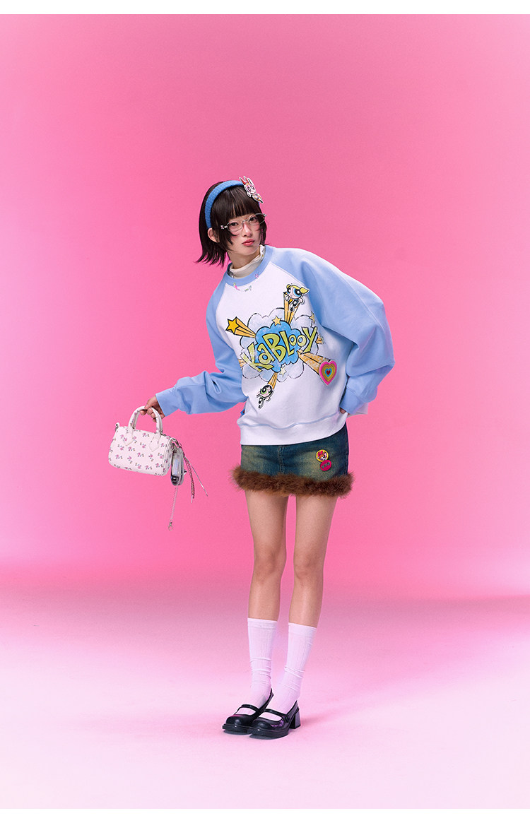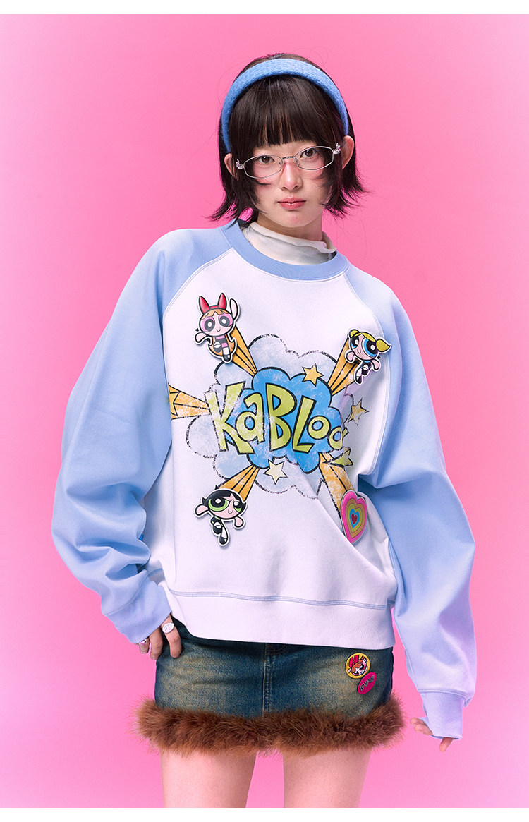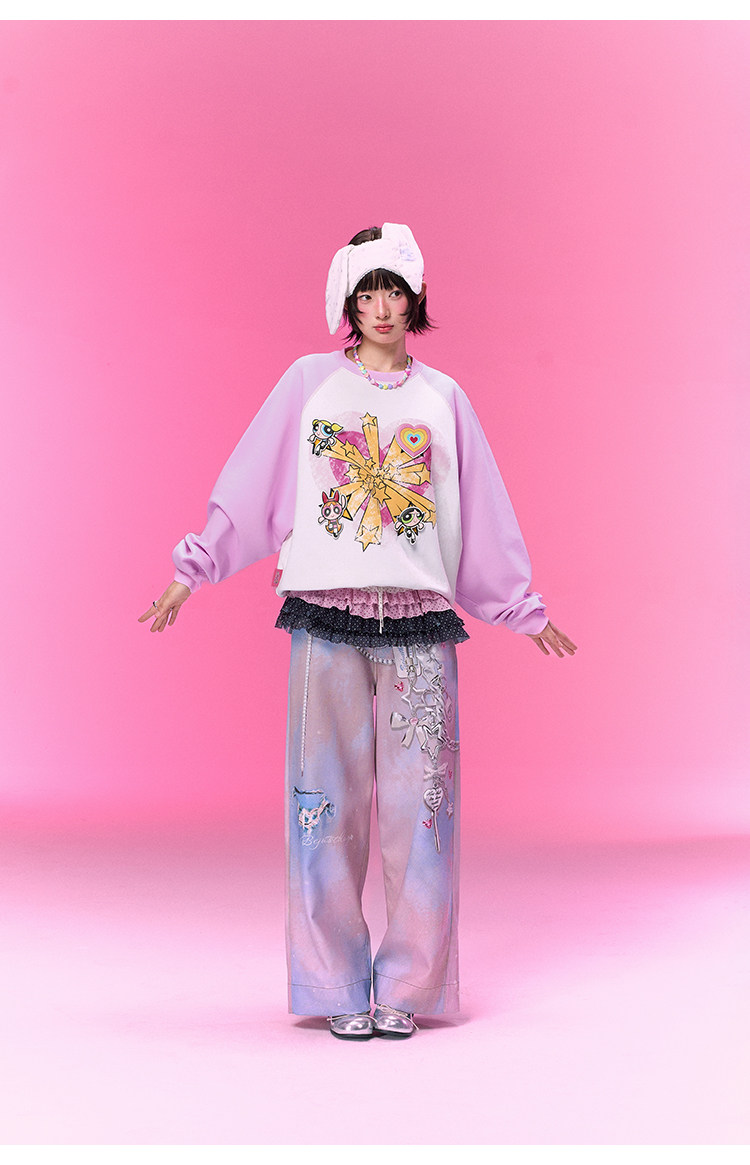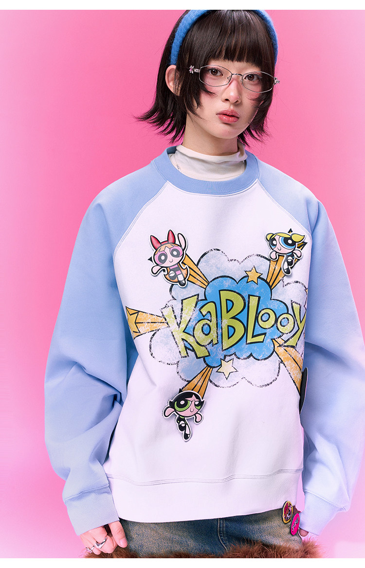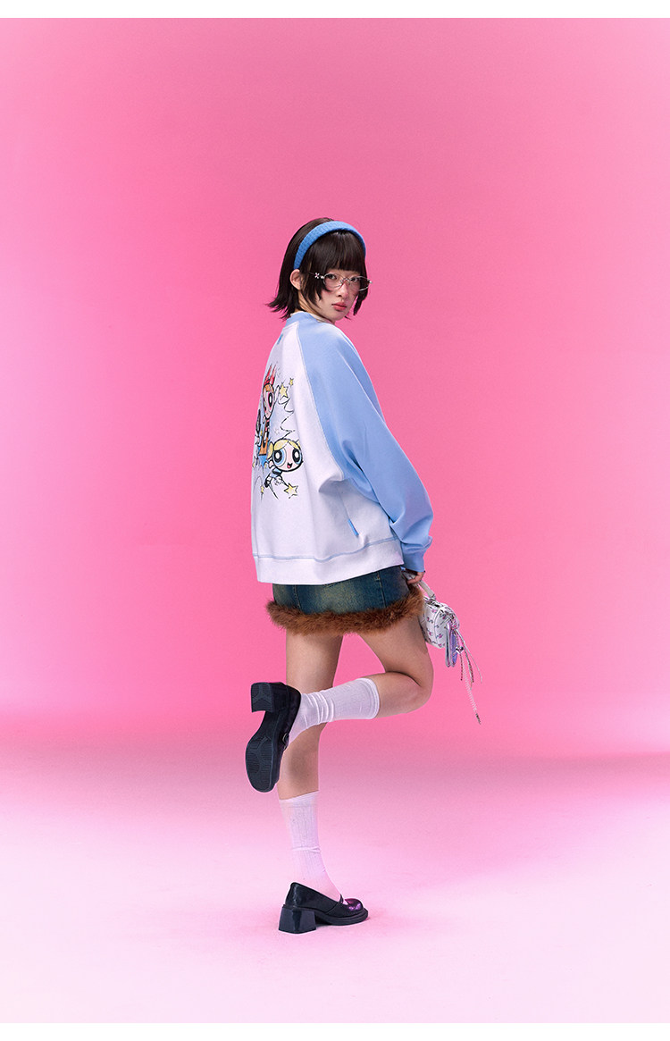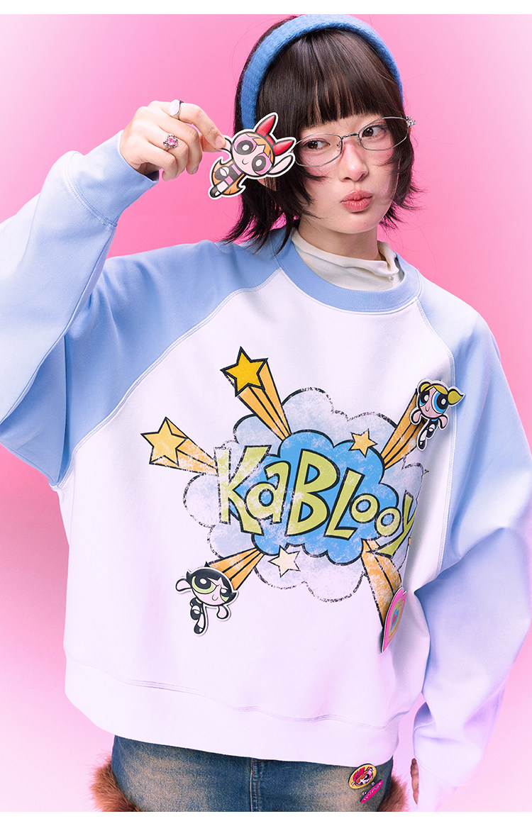 飞天小女警联名BJHG不计后果无帽卫衣女款春季新款潮粉色贴贴上衣