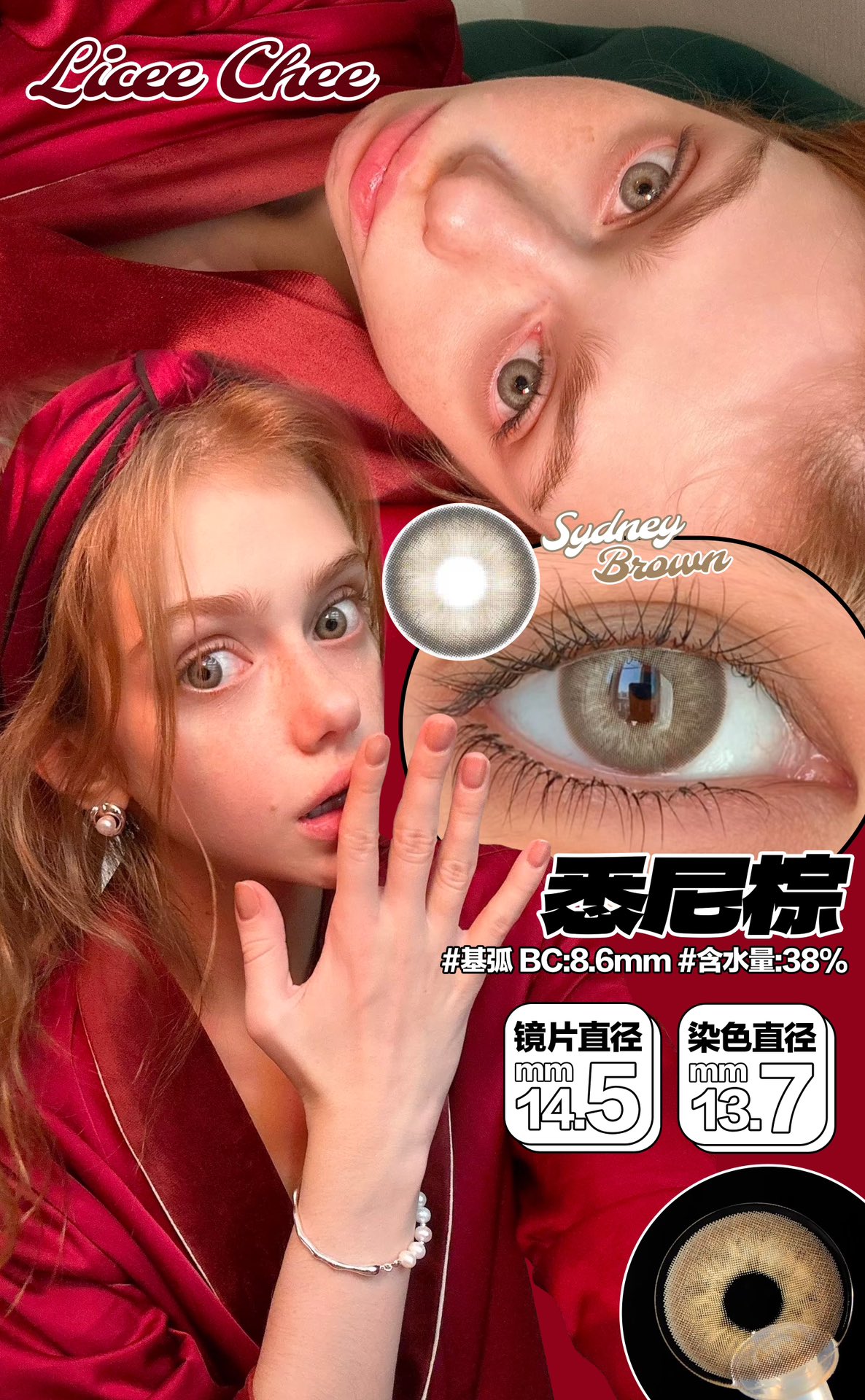 正品年抛| Licheechee系列悉尼棕美瞳 | 直径14.5着色直径13.7 | 韩国产