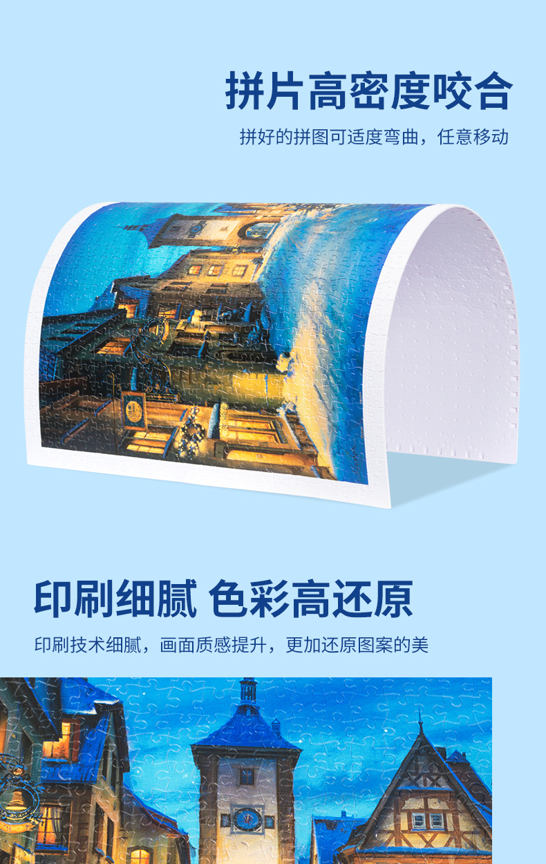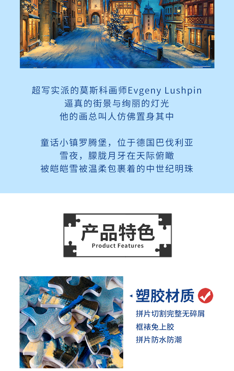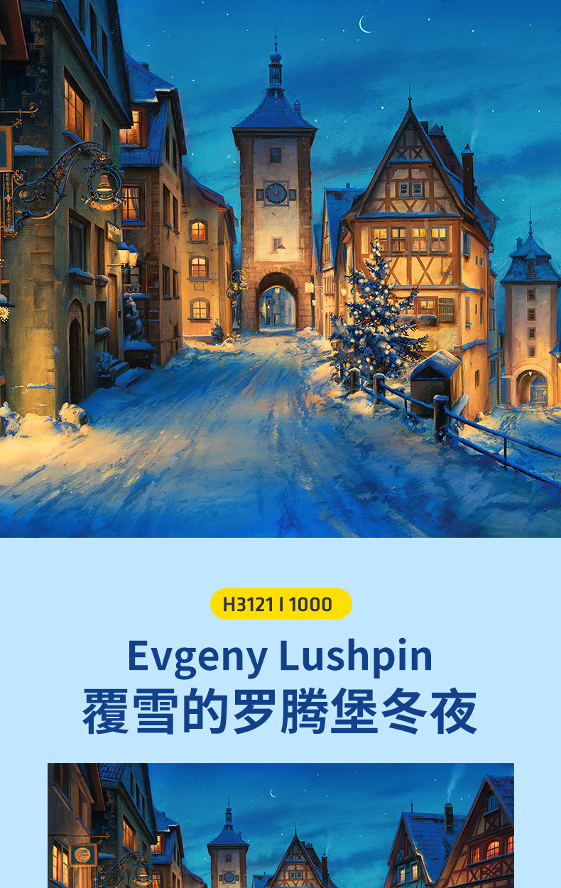【折扣商品 不退不换】1000片 塑料平面拼图 H3121 Evgeny Lushpin-覆雪的罗腾堡冬夜