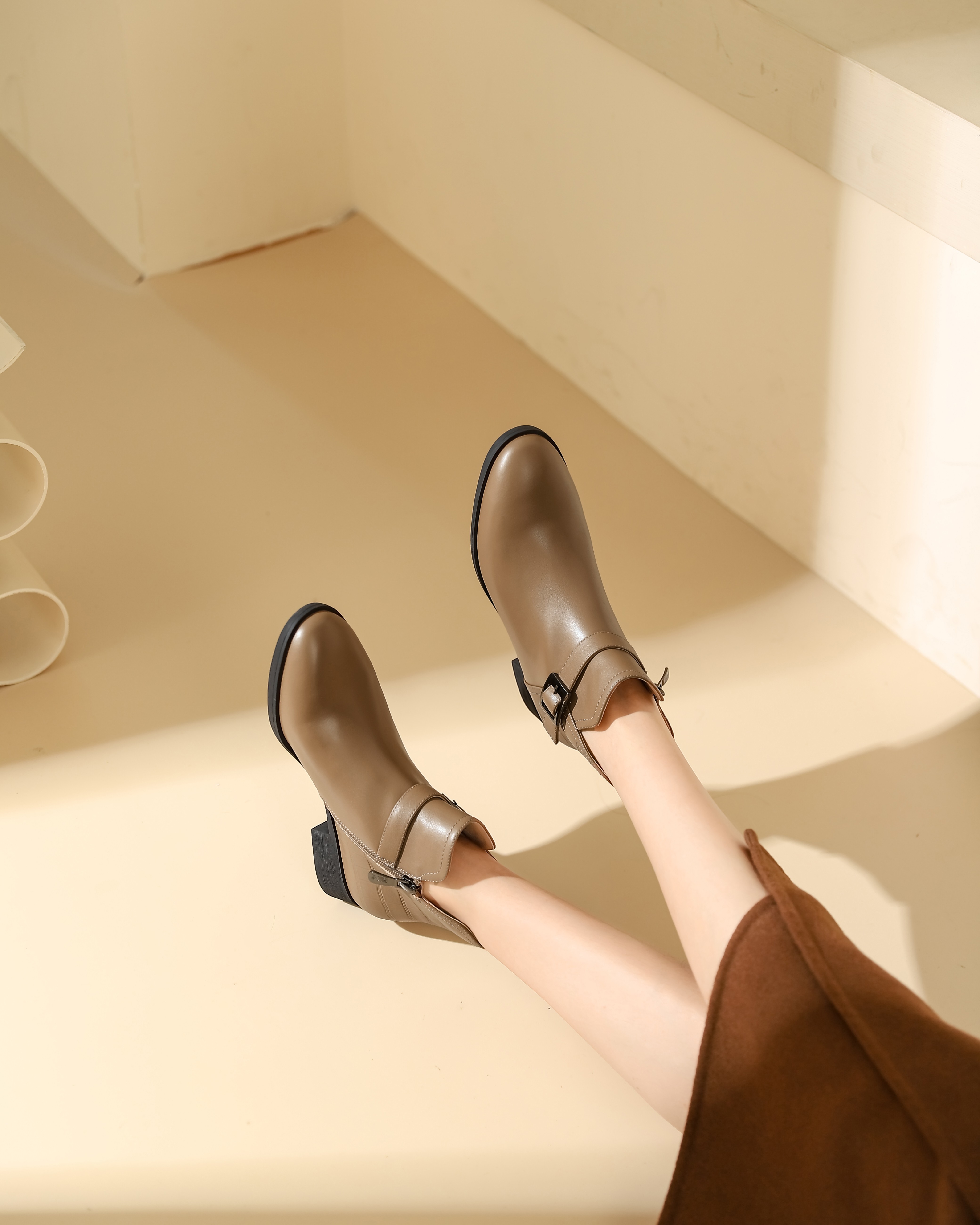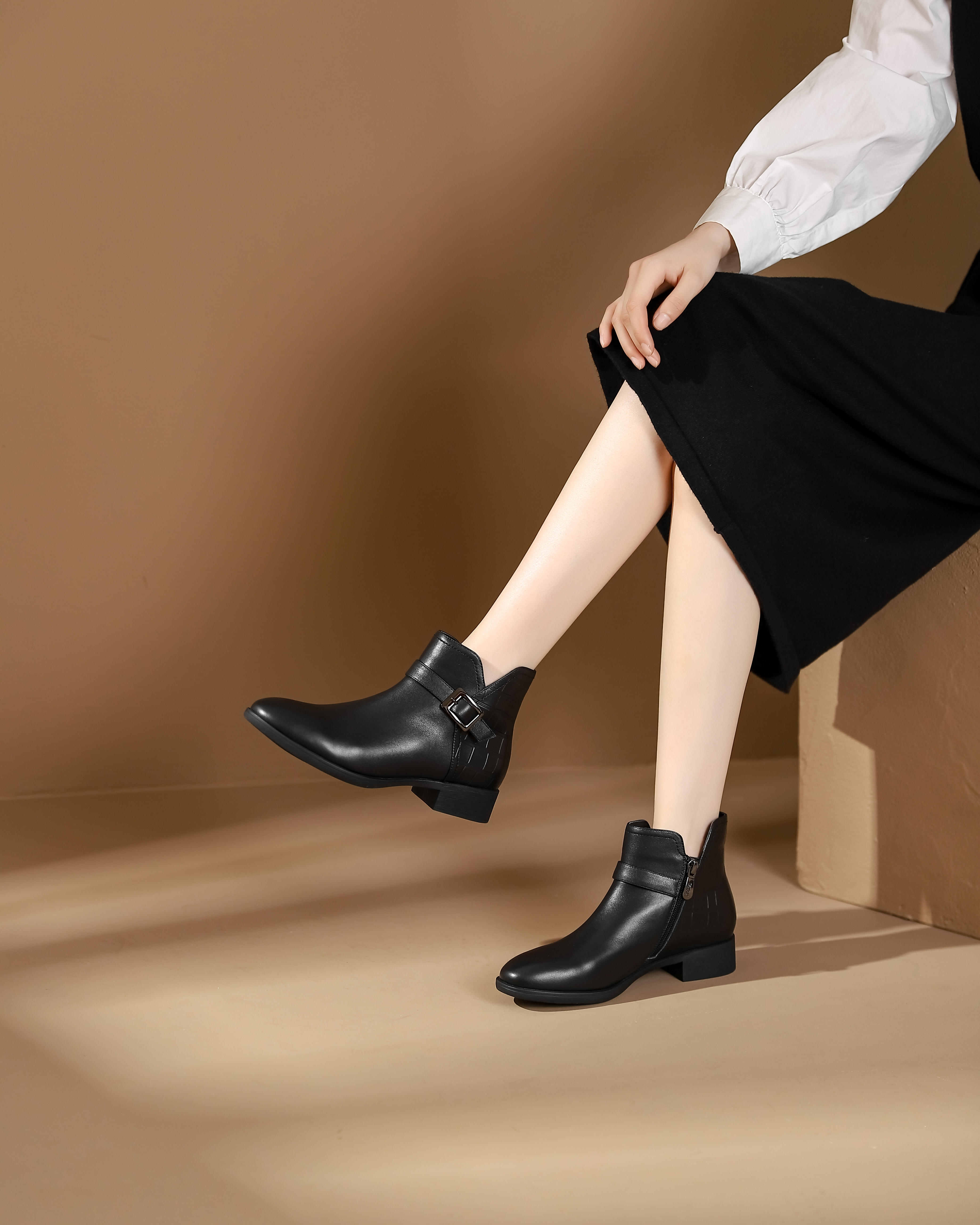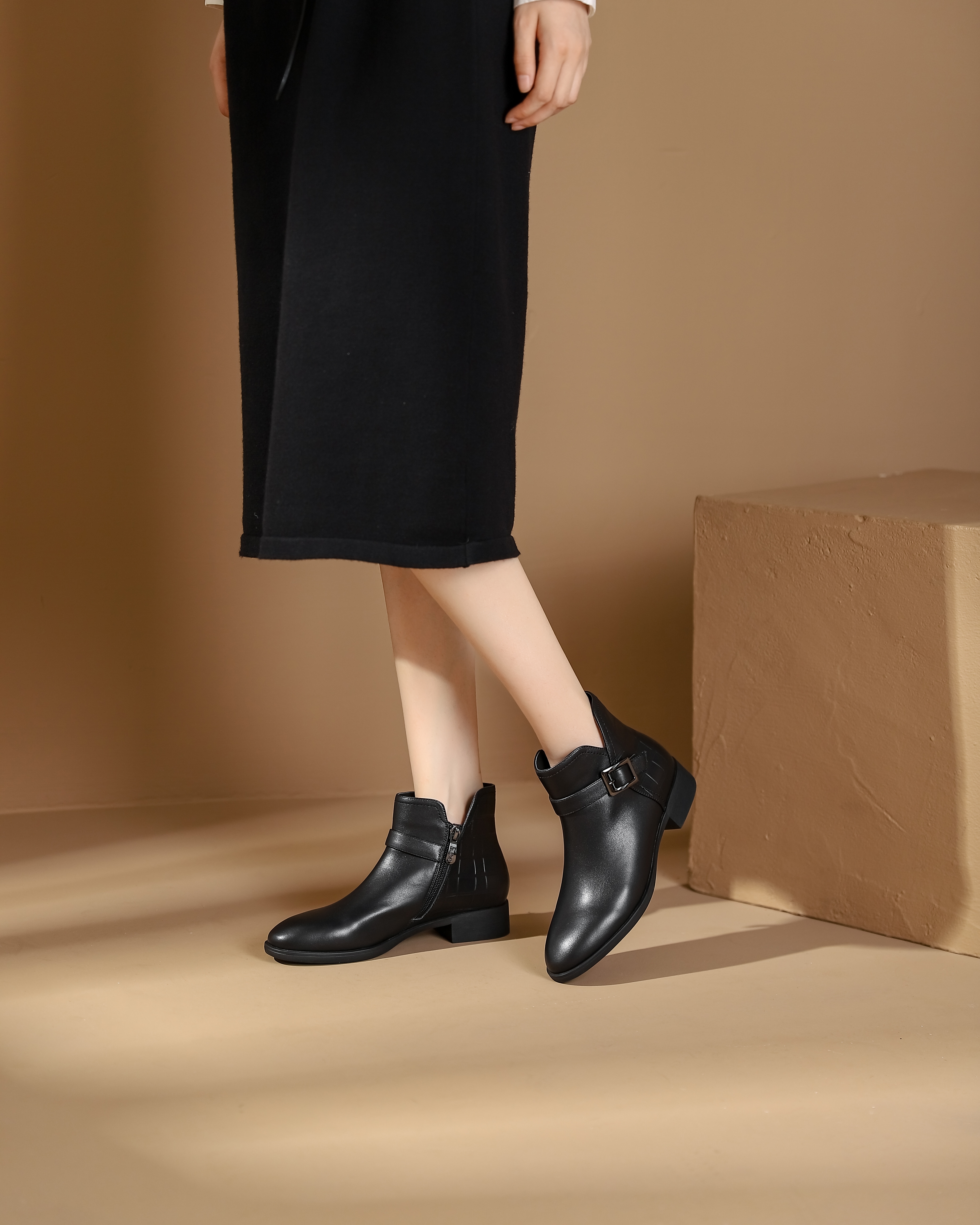 西村名物2023秋季新品圆头粗跟裸靴切尔西靴短靴X23DS45371