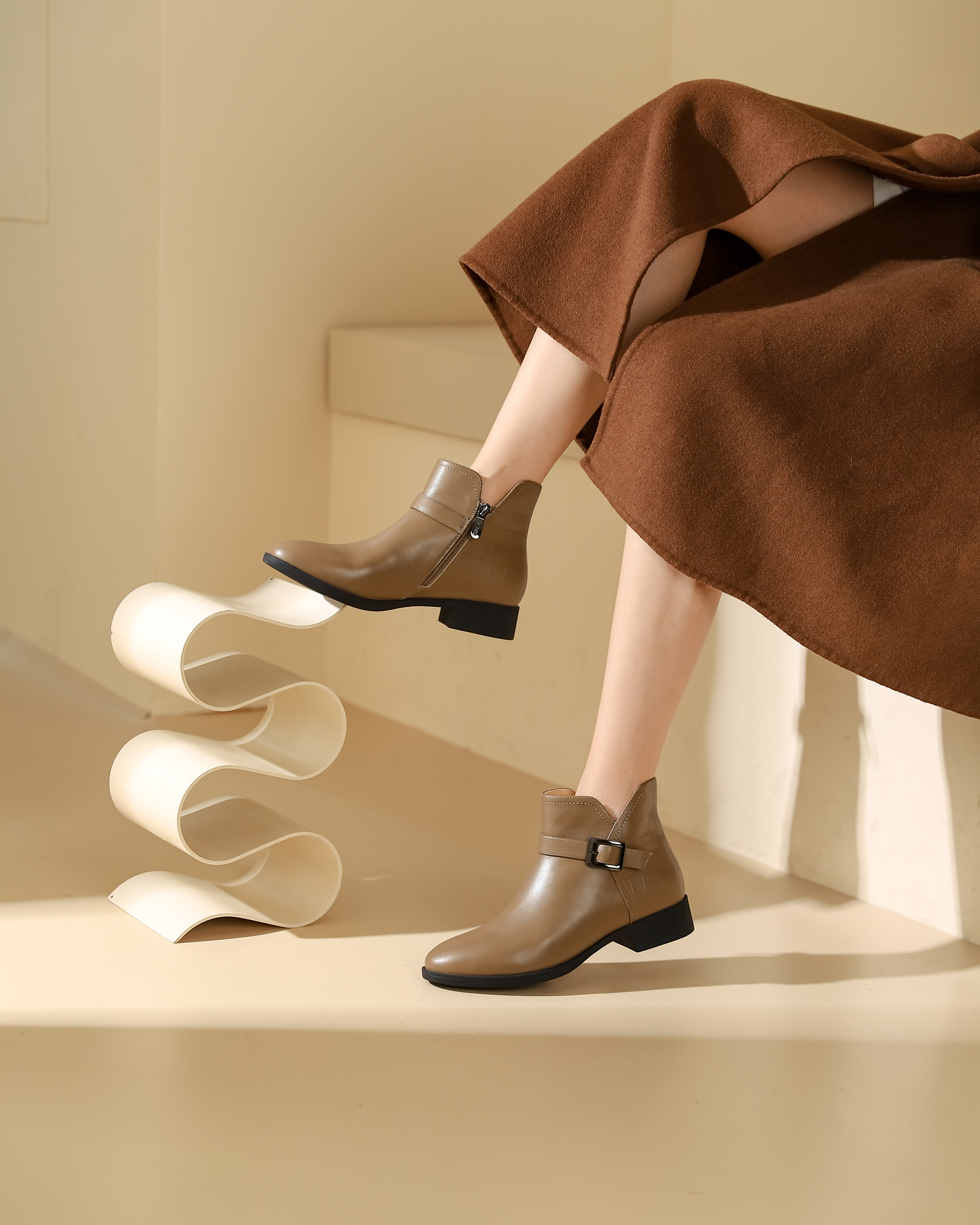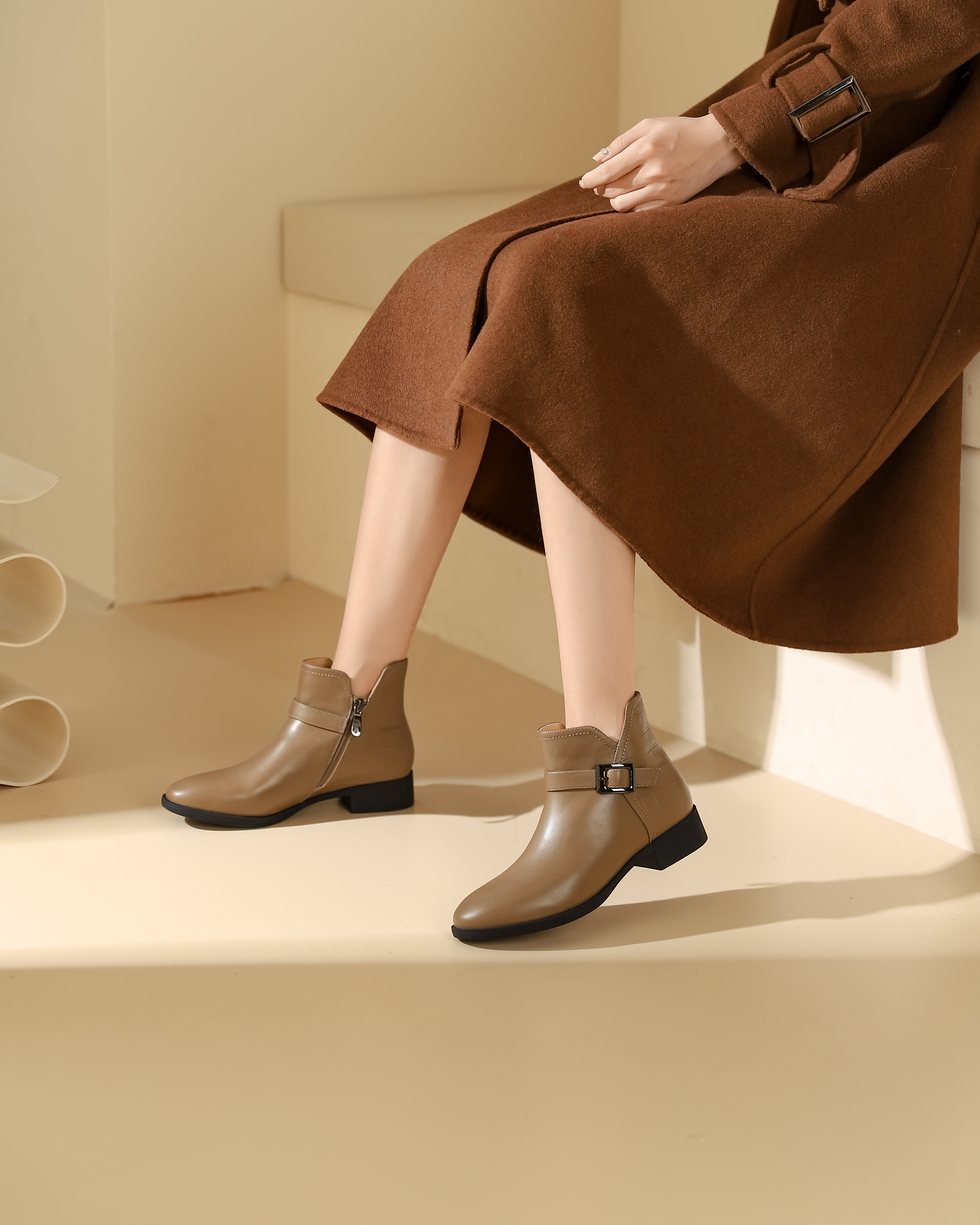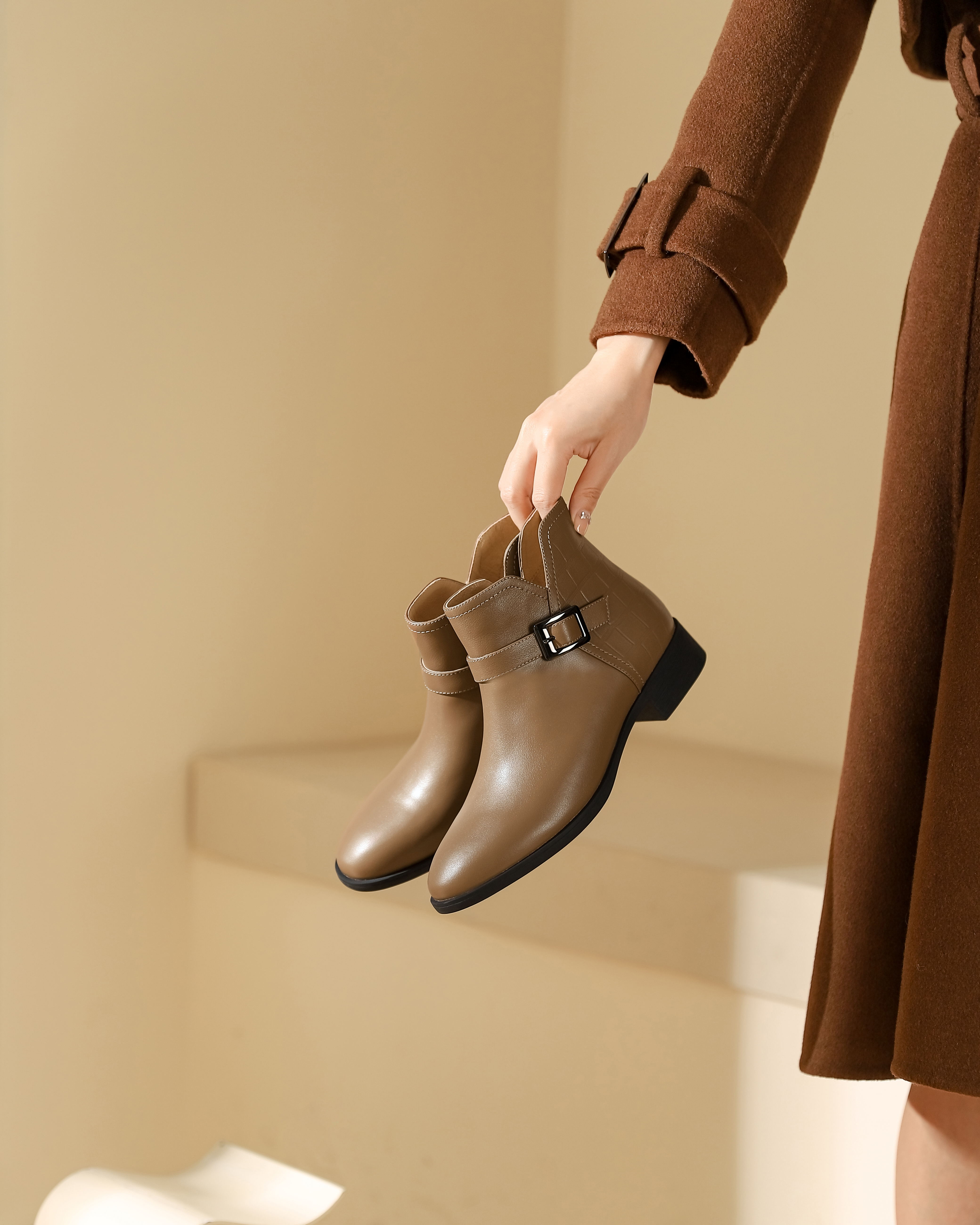 西村名物2023秋季新品圆头粗跟裸靴切尔西靴短靴X23DS45371