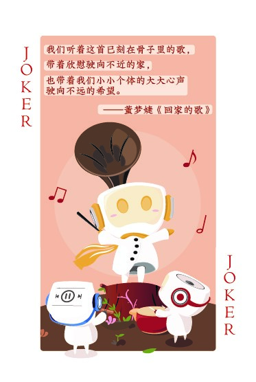 v 这是对文创产品的一次尝试。54篇文章,54位作者,54款金句书签组成一套扑克书签。大、小王和J、Q、K的书签形象为“热小泪和她的伙伴们”,热小泪为本书的化身,陪我们读书,陪我们听歌,陪我们在青春记忆中笃定梦想的方向。扑克书签和热小泪会适时以文创产品形式,实体面世,以馈读者。