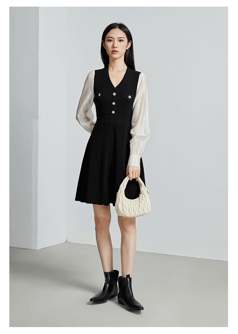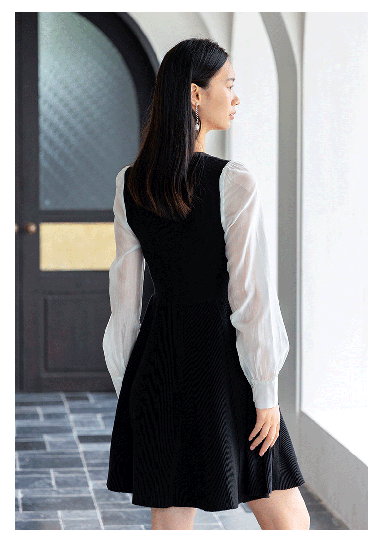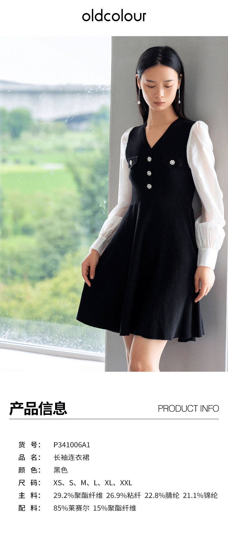oldcolour秋季新款优雅气质拼接设计感修身显瘦连衣裙女P341006A1