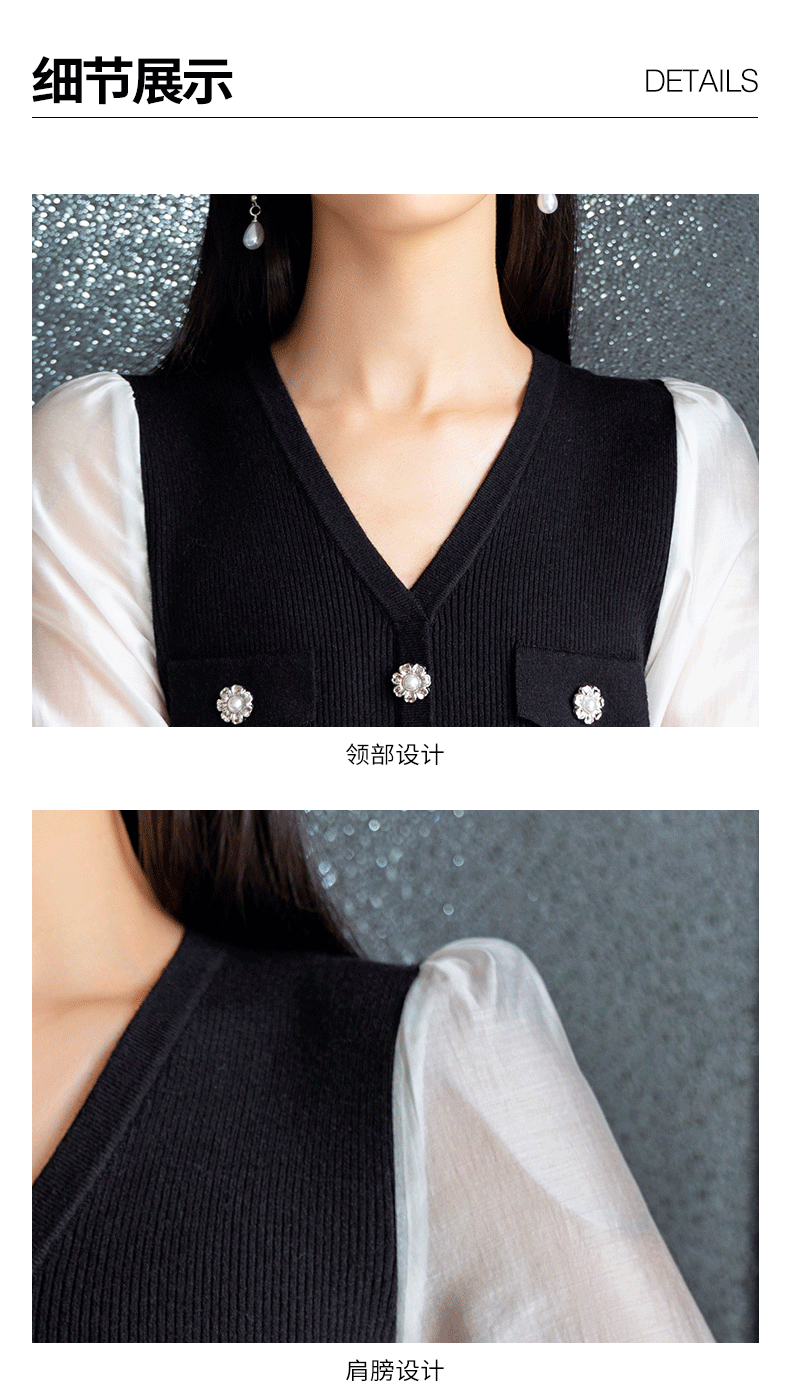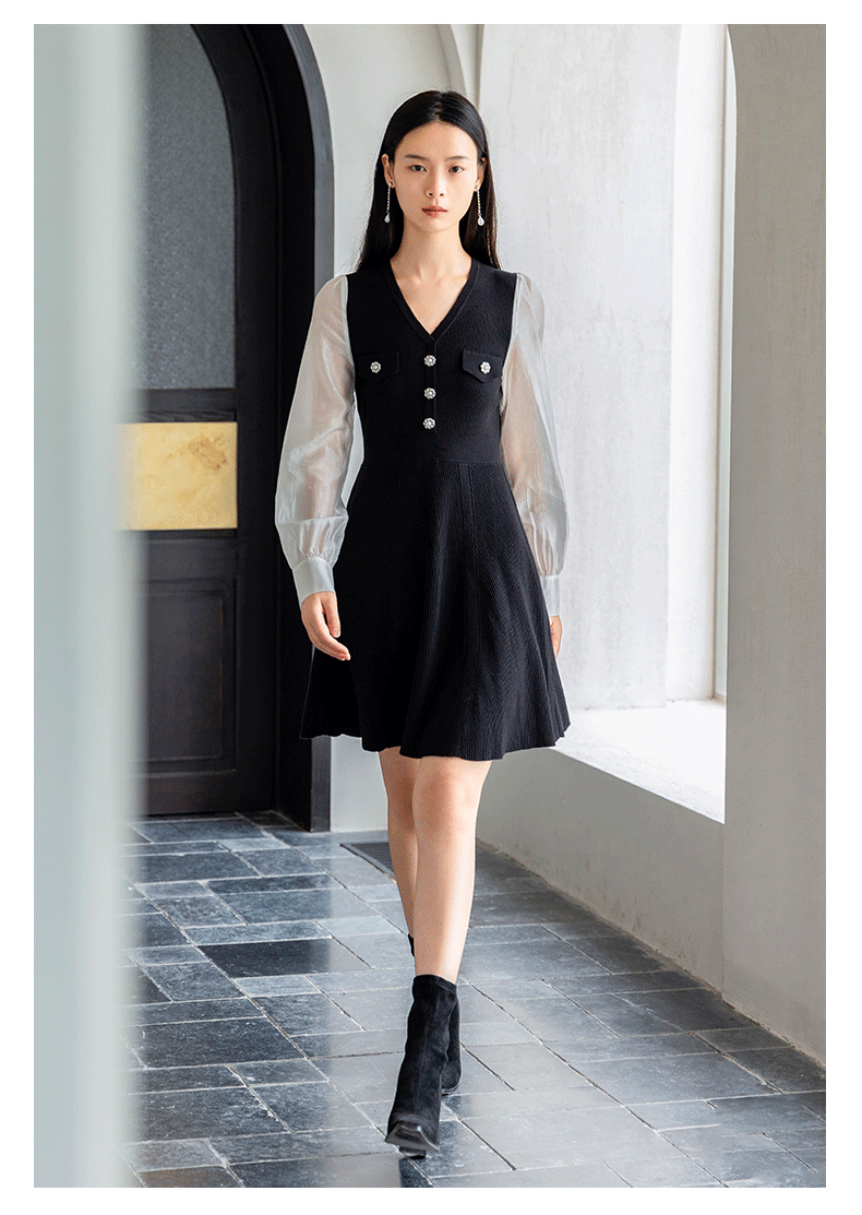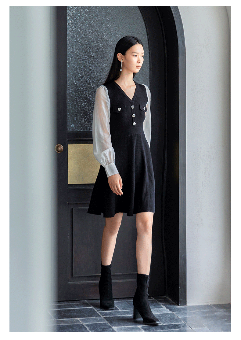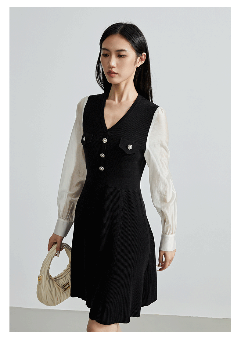 oldcolour秋季新款优雅气质拼接设计感修身显瘦连衣裙女P341006A1
