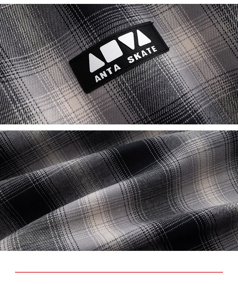 安踏滑板系列街头潮流休闲情侣同款格纹两面穿新款格纹外套172548602 YY892黑色色组-3