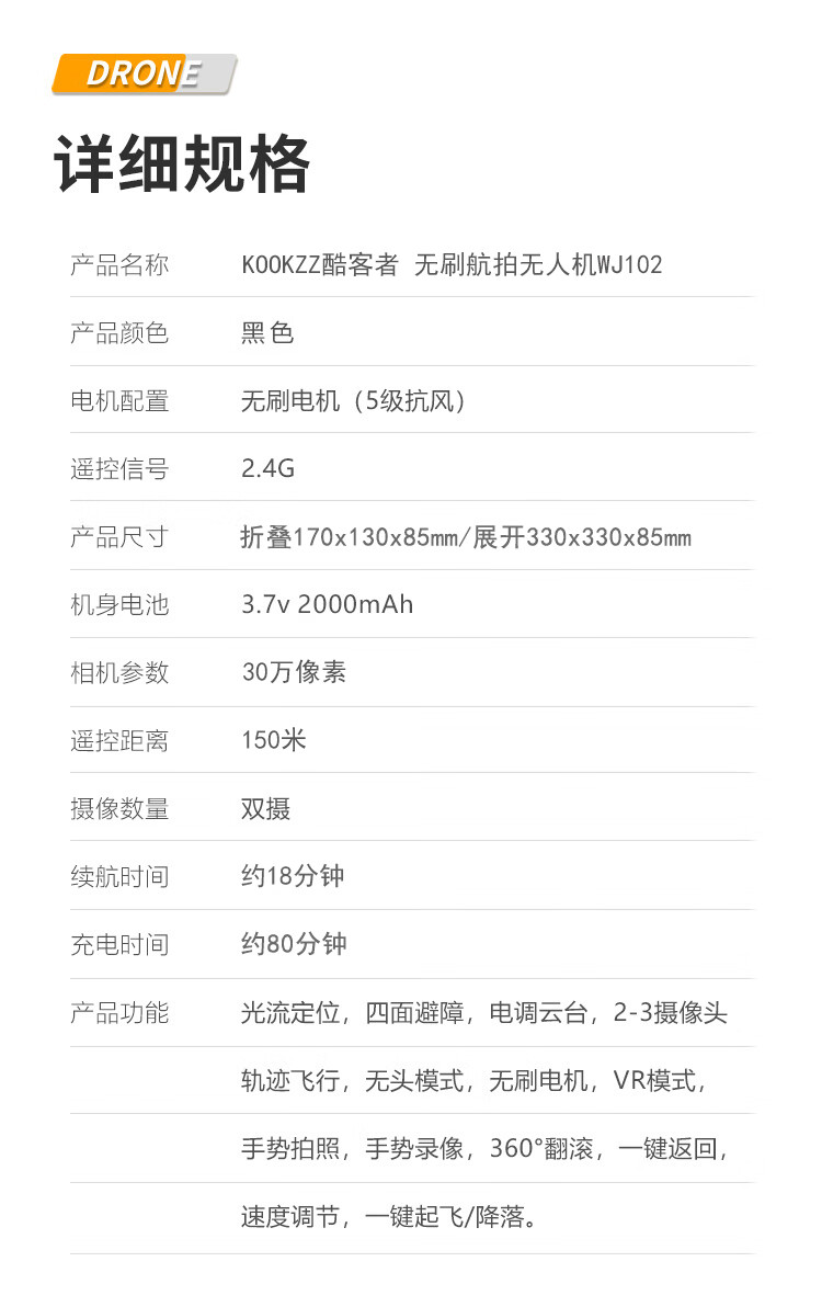 【分仓直发包邮】KOOKZZ酷客者无刷航拍无人机WJ102