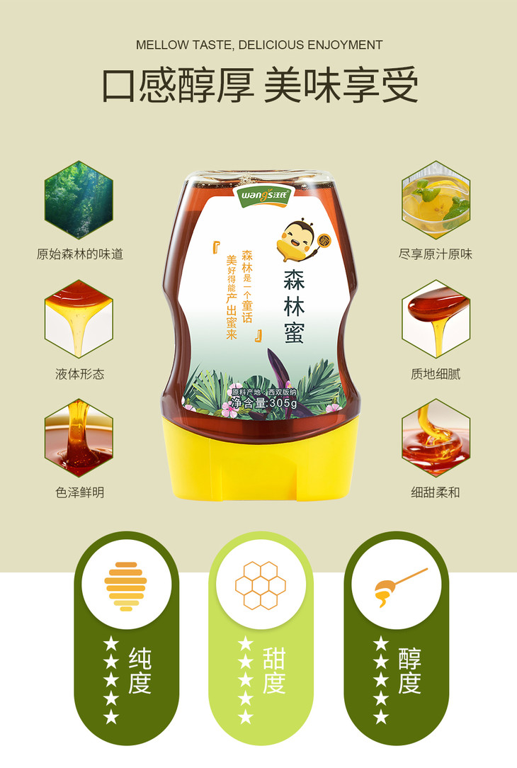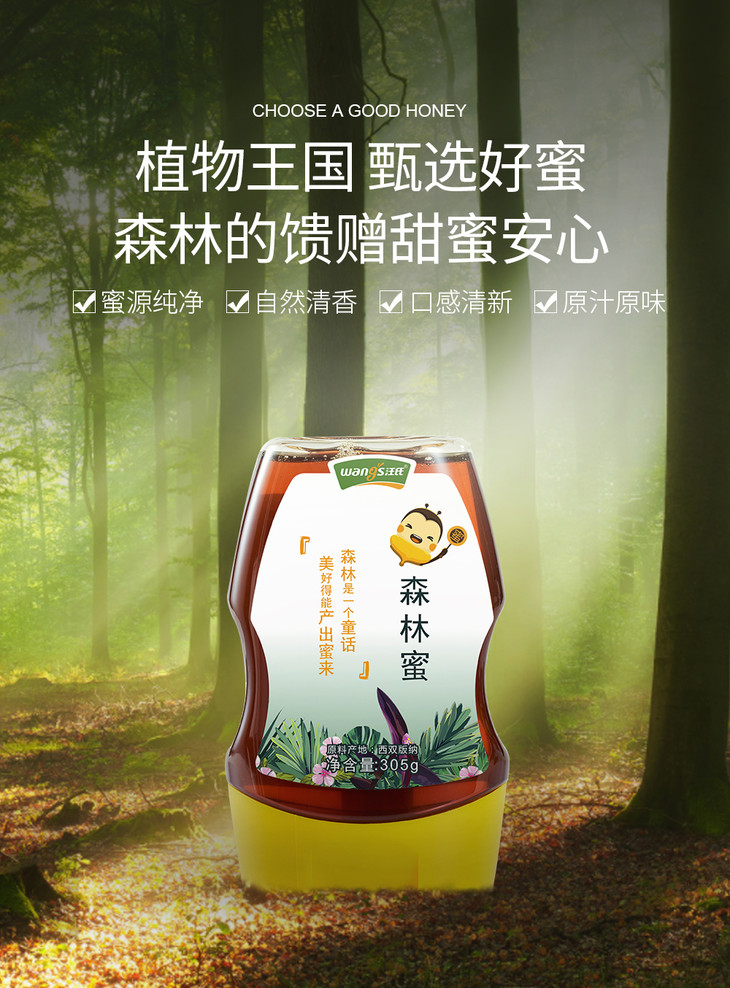 【优惠券商品 】汪氏蜂蜜 森林蜜305克/瓶