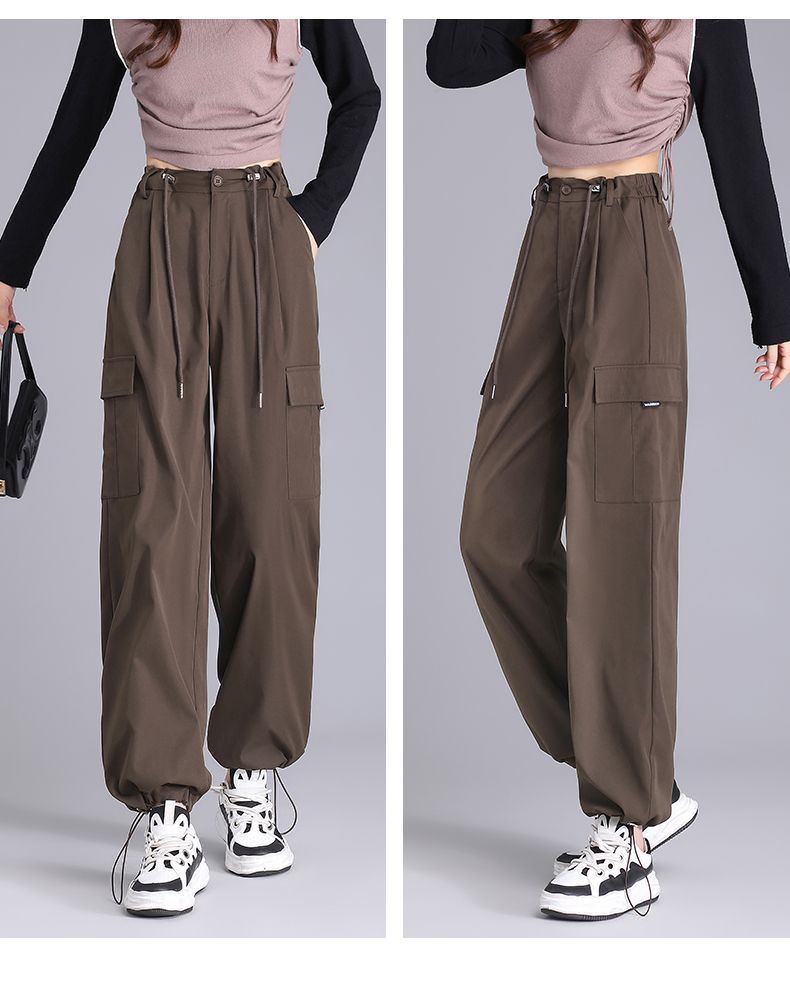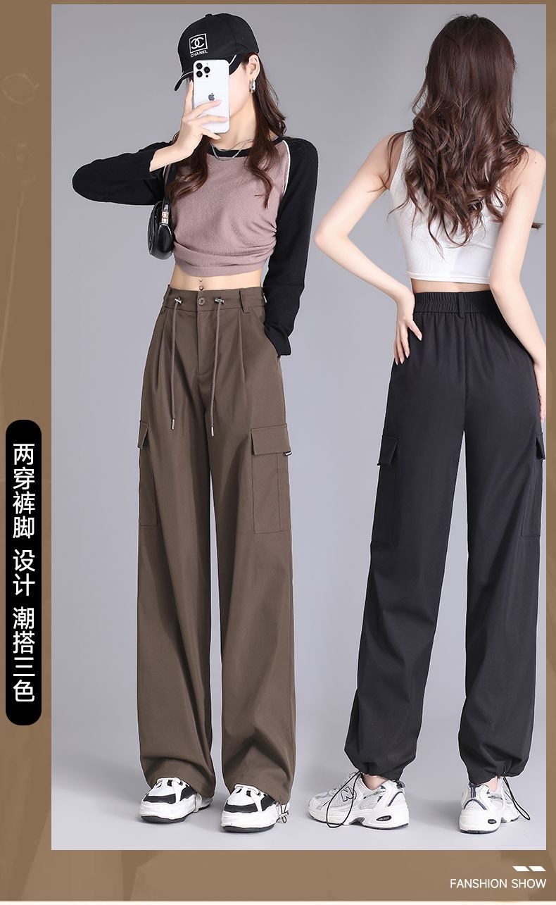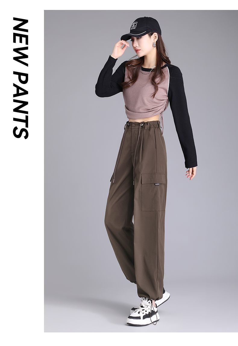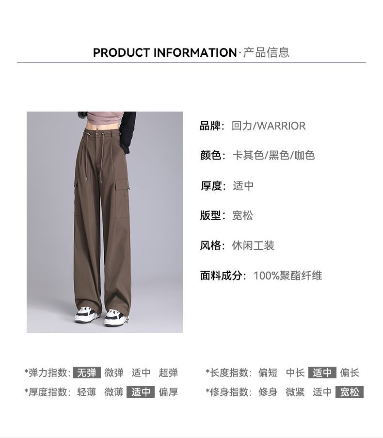 回力工装裤直筒阔腿裤子高腰显瘦2025女春秋休闲裤冲锋登山运动裤