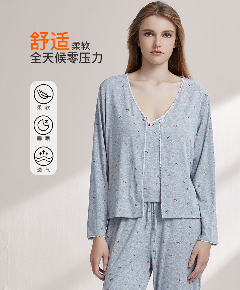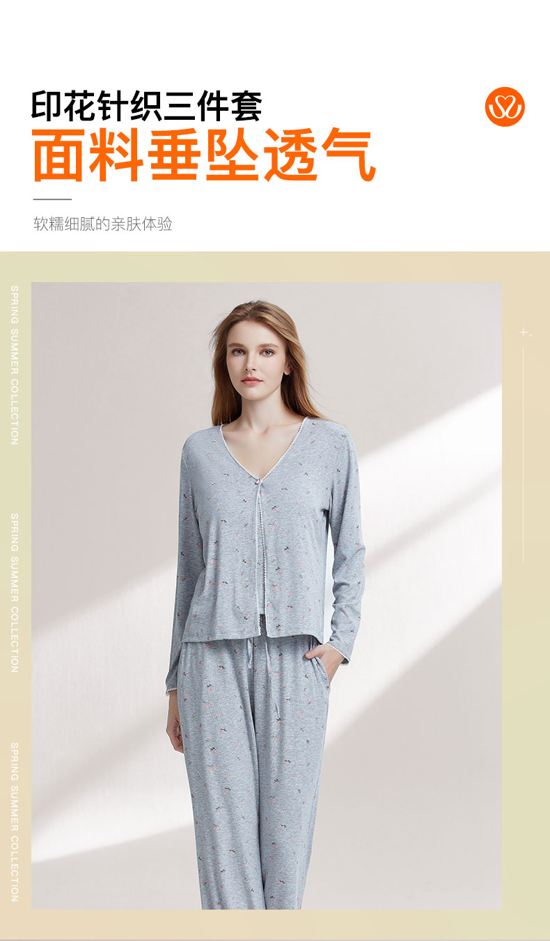 【7.5折限时特惠】【秀黛】女印花针织三件套女士睡衣家居服MW554005T【门店同款】