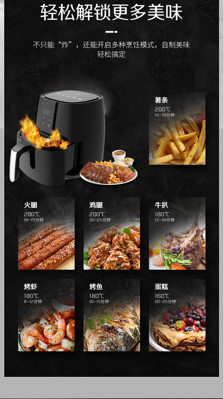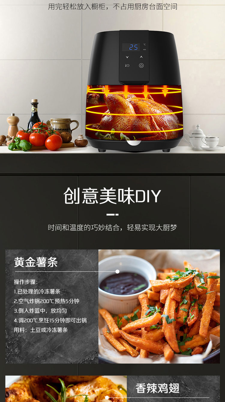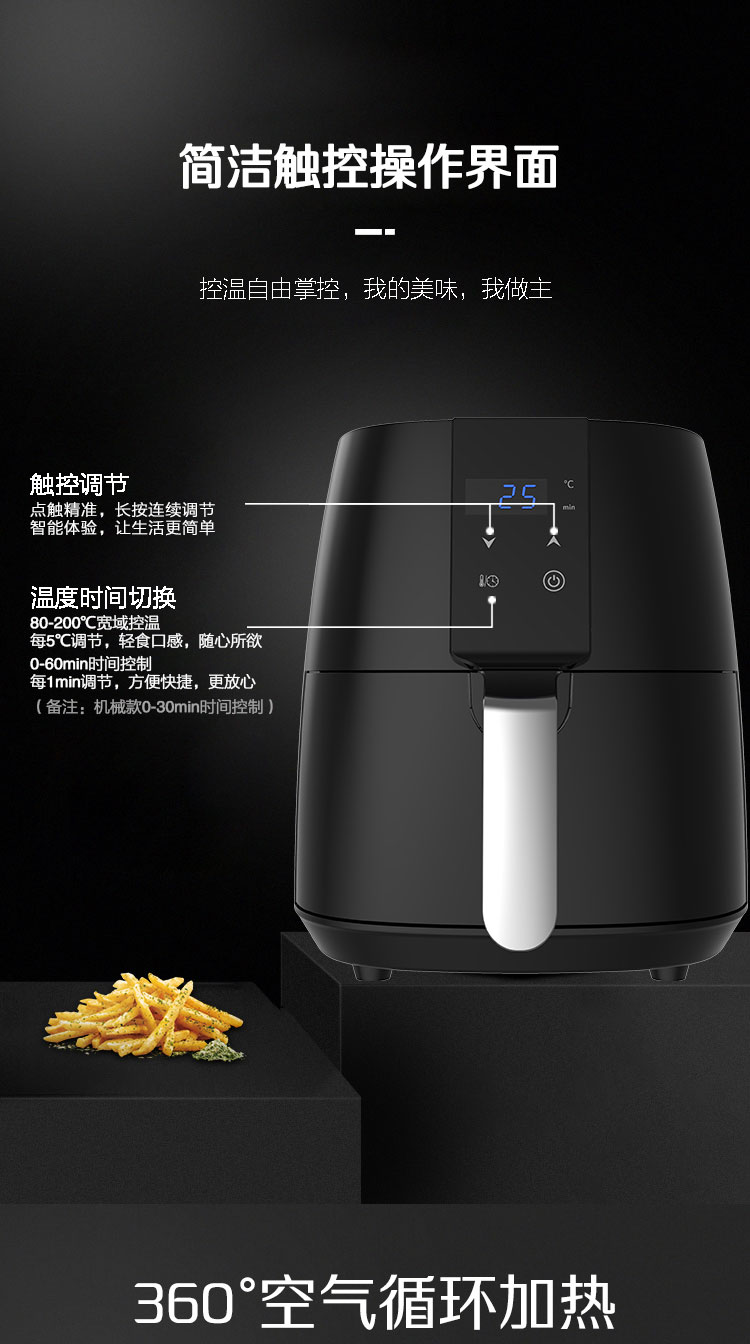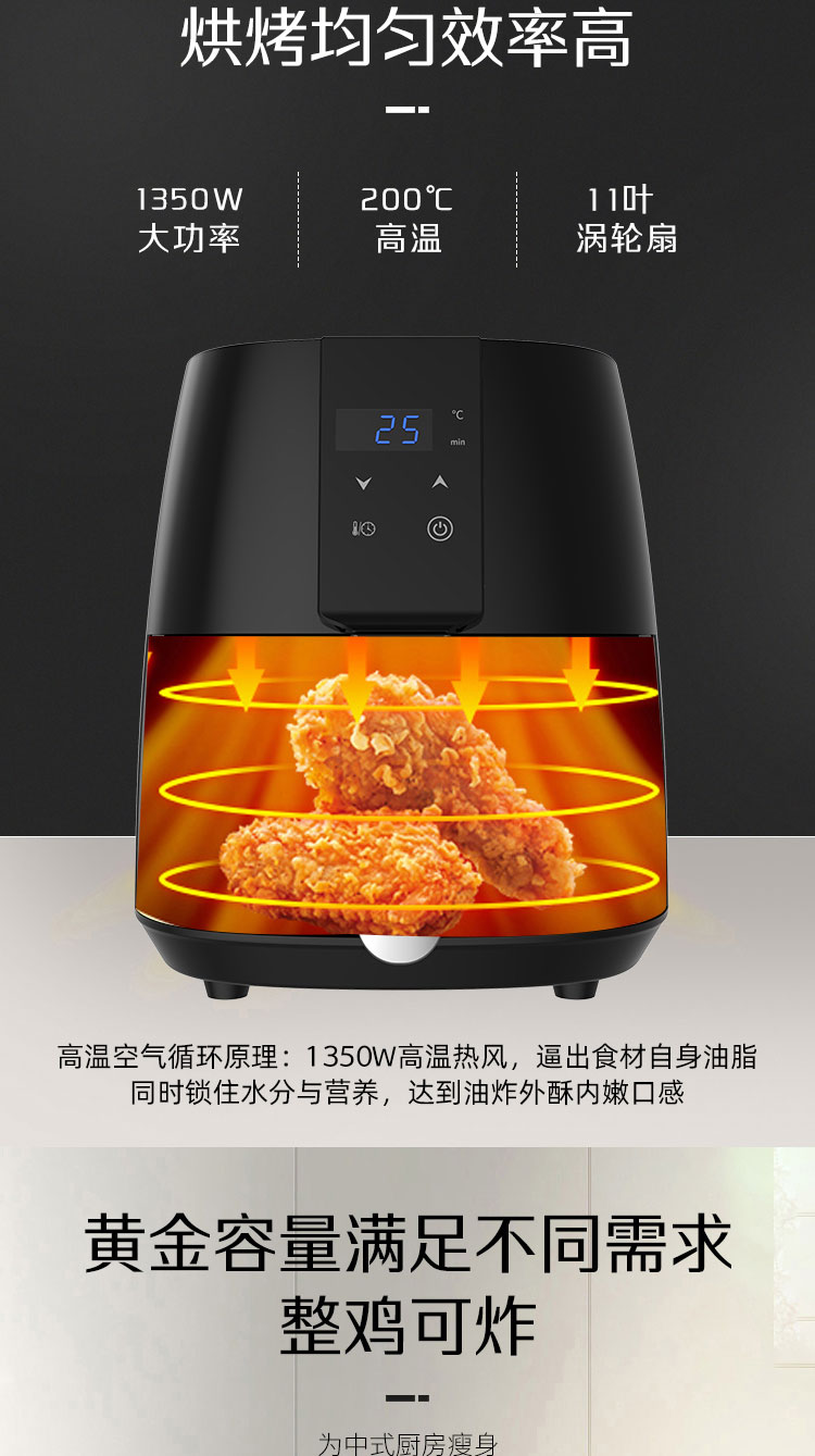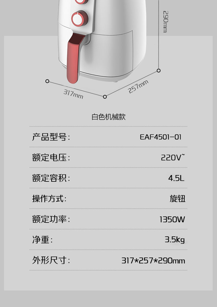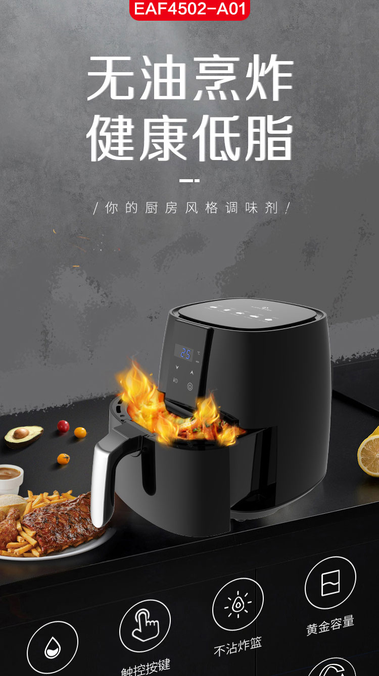 艾美特(AIRMATE)空气炸锅煎炸锅无油烟大容量4.5L低脂电炸锅智能EAF4502-A01