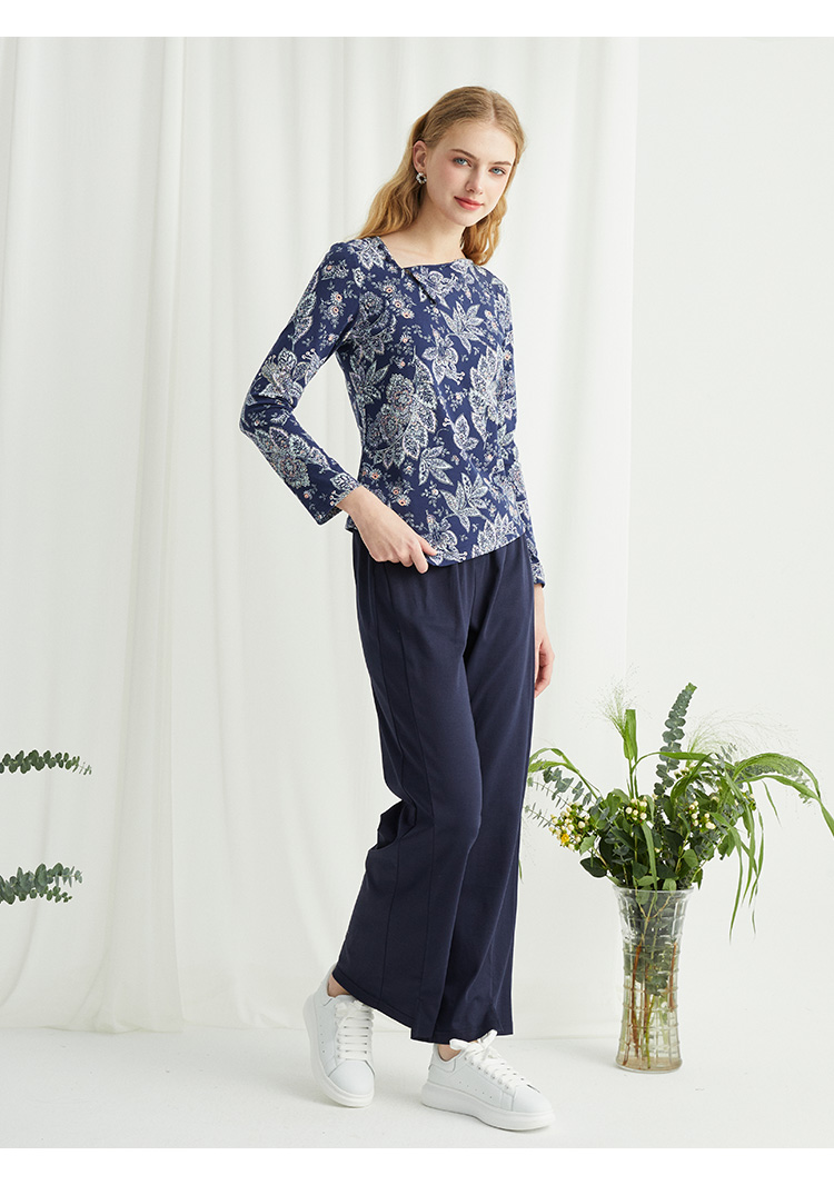 VIVIAN LIU R2443007初秋女装新款时尚圆领不规则下摆长袖上衣