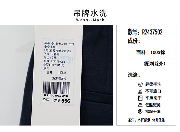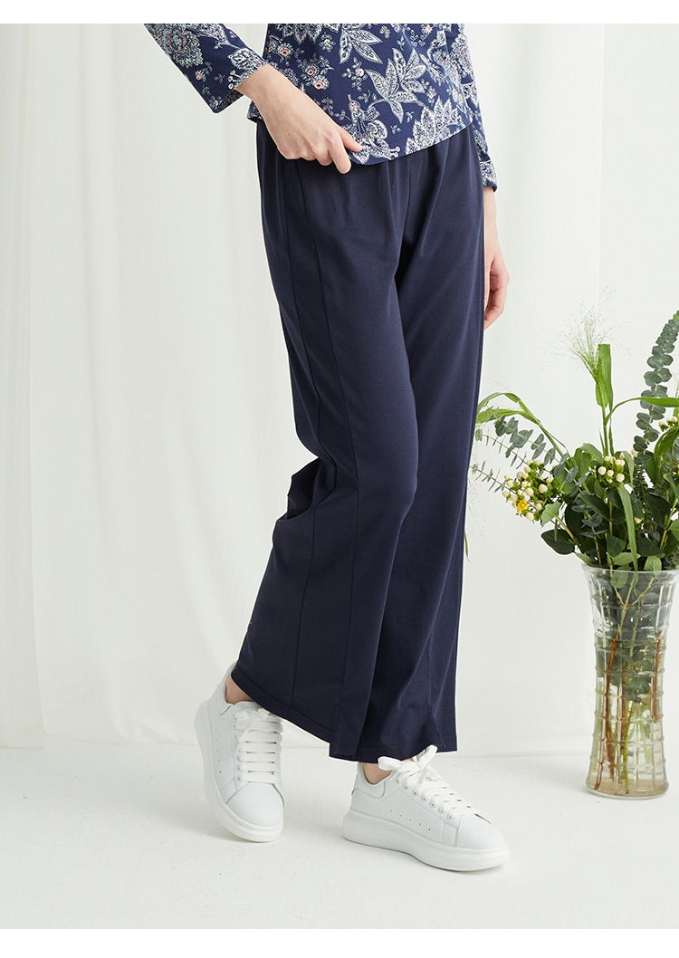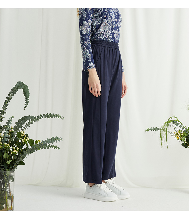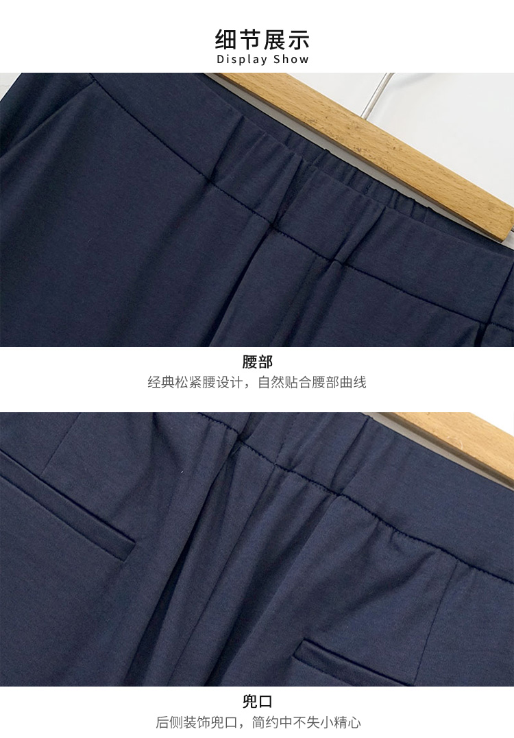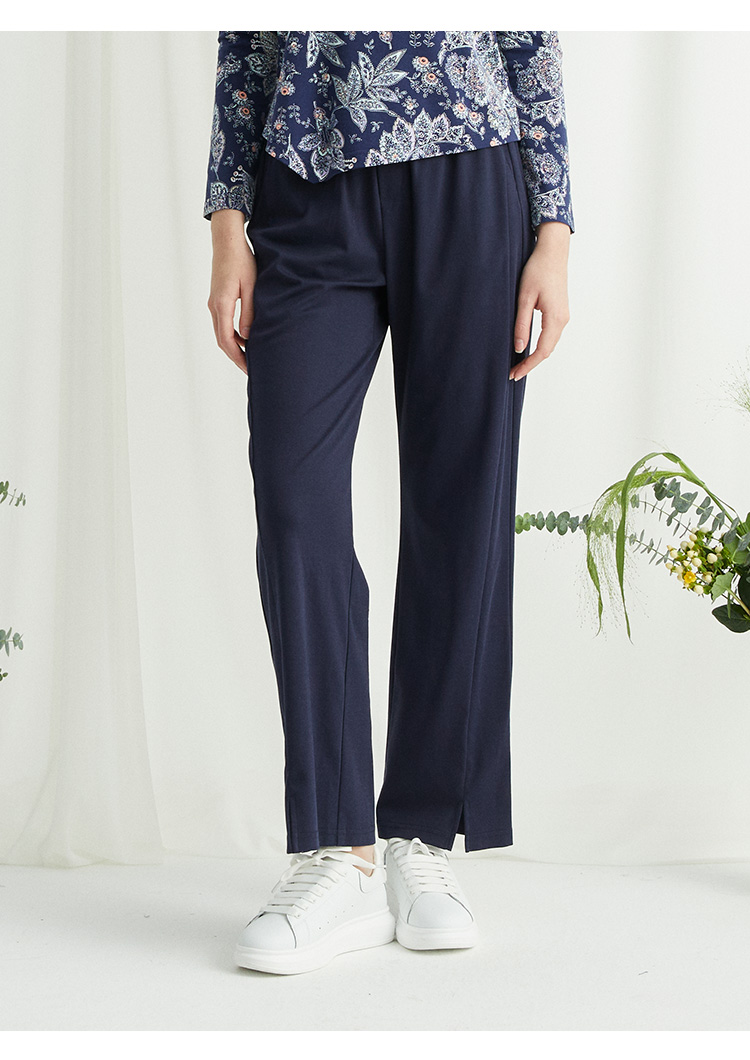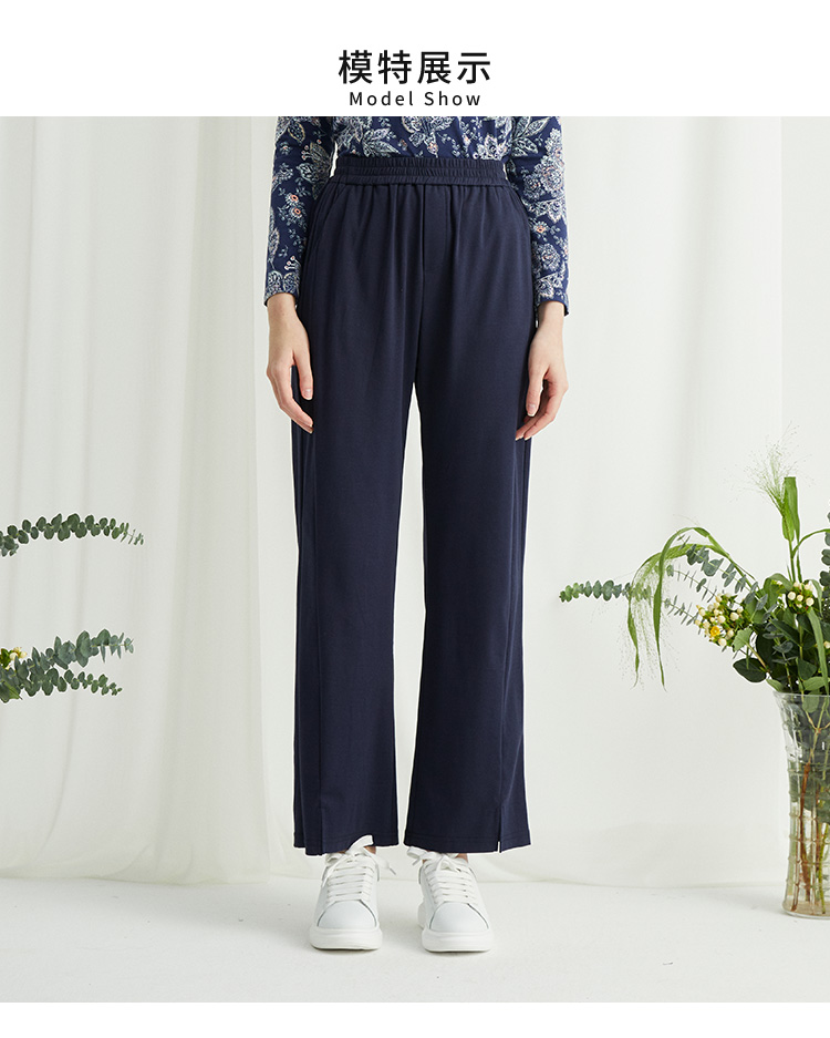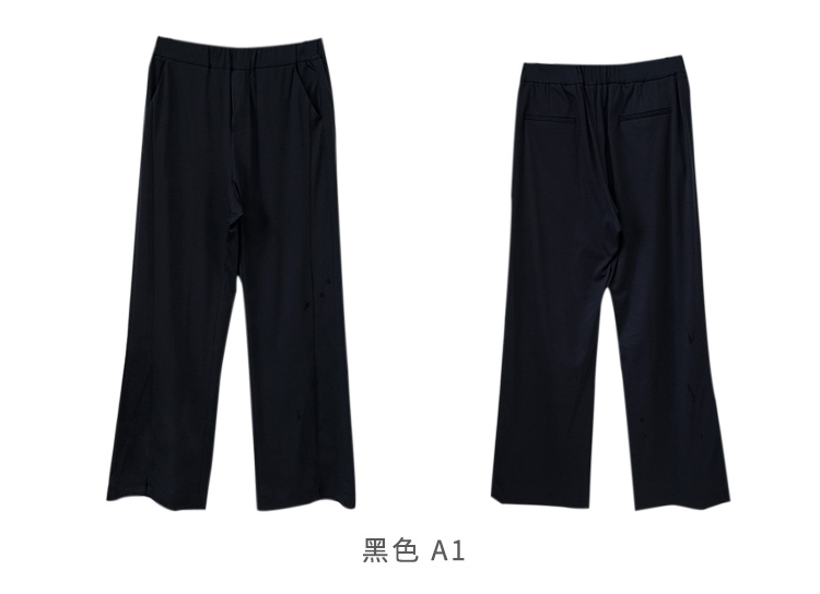 VIVIAN LIU R2437502夏女装新款时尚松紧腰裤脚开叉直筒长裤