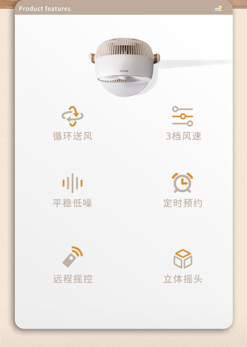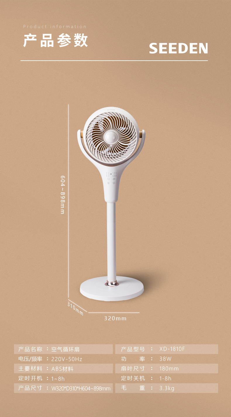 SEEDEN西点3D摇头立式循环扇XD-1810F