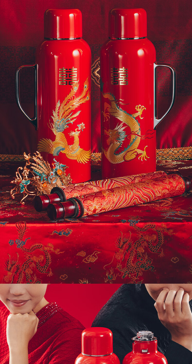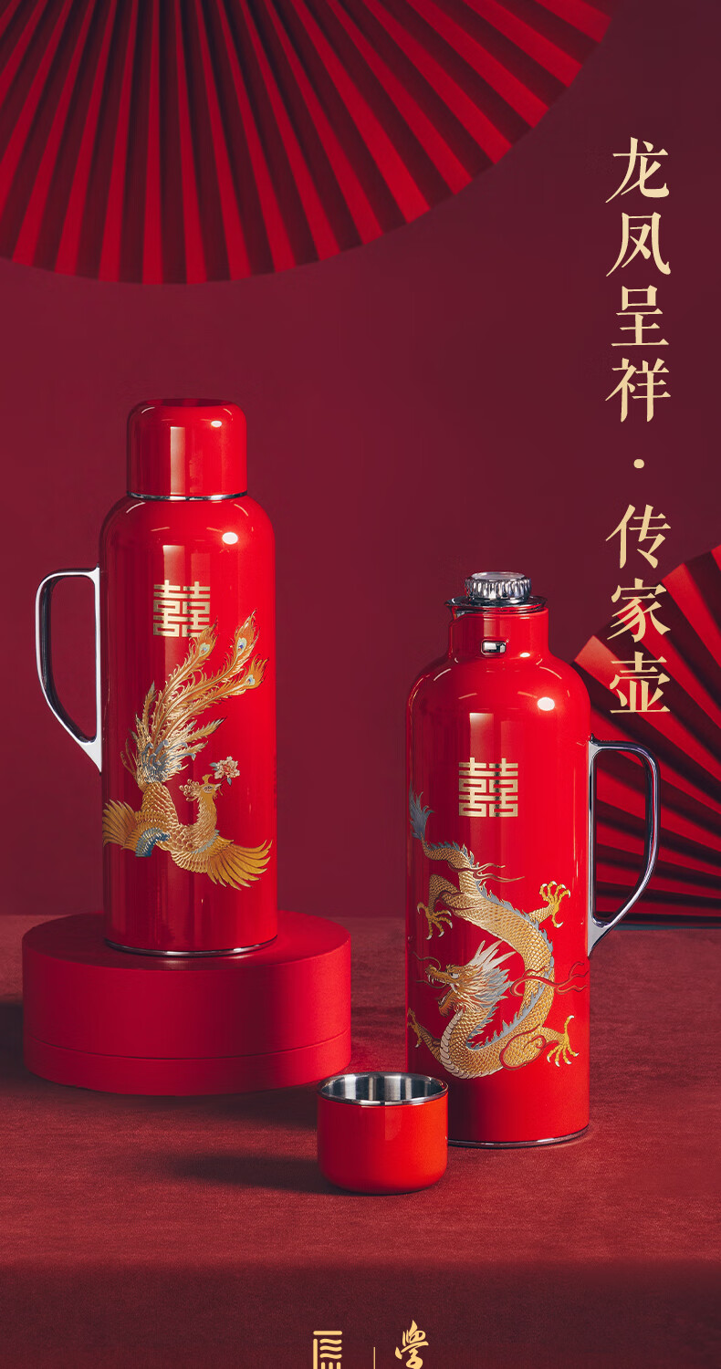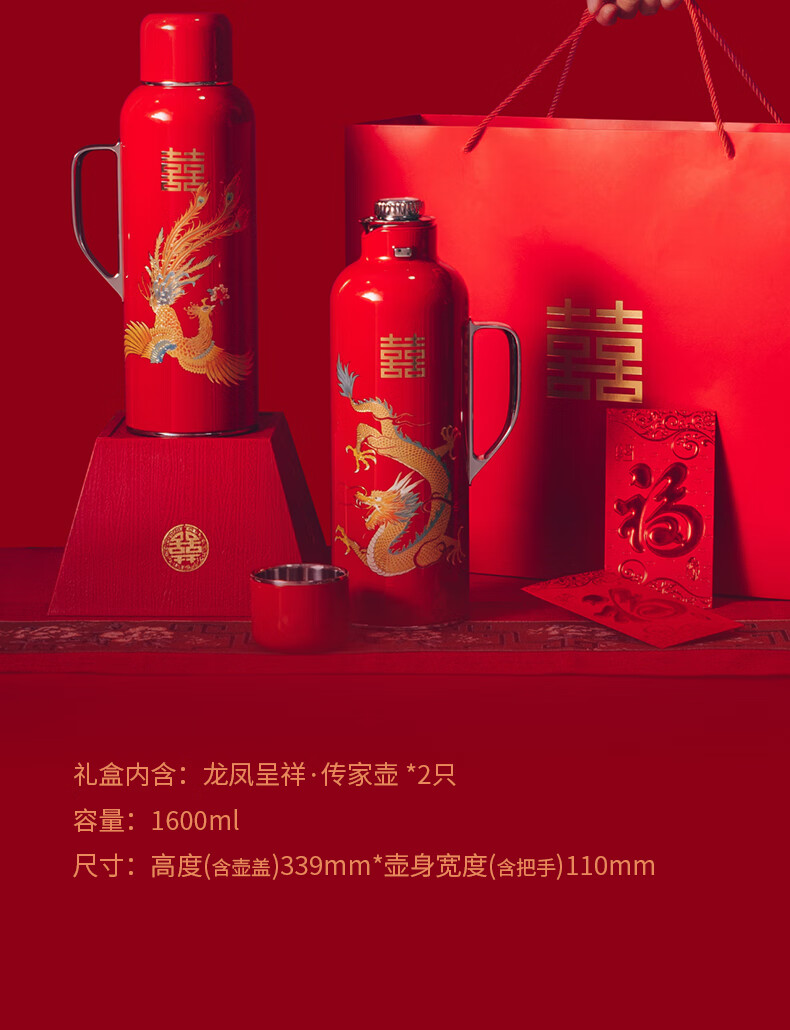 学古龙凤呈祥 · 传家壶 复古婚庆热水壶暖壶热水瓶1.6L对壶结婚送礼