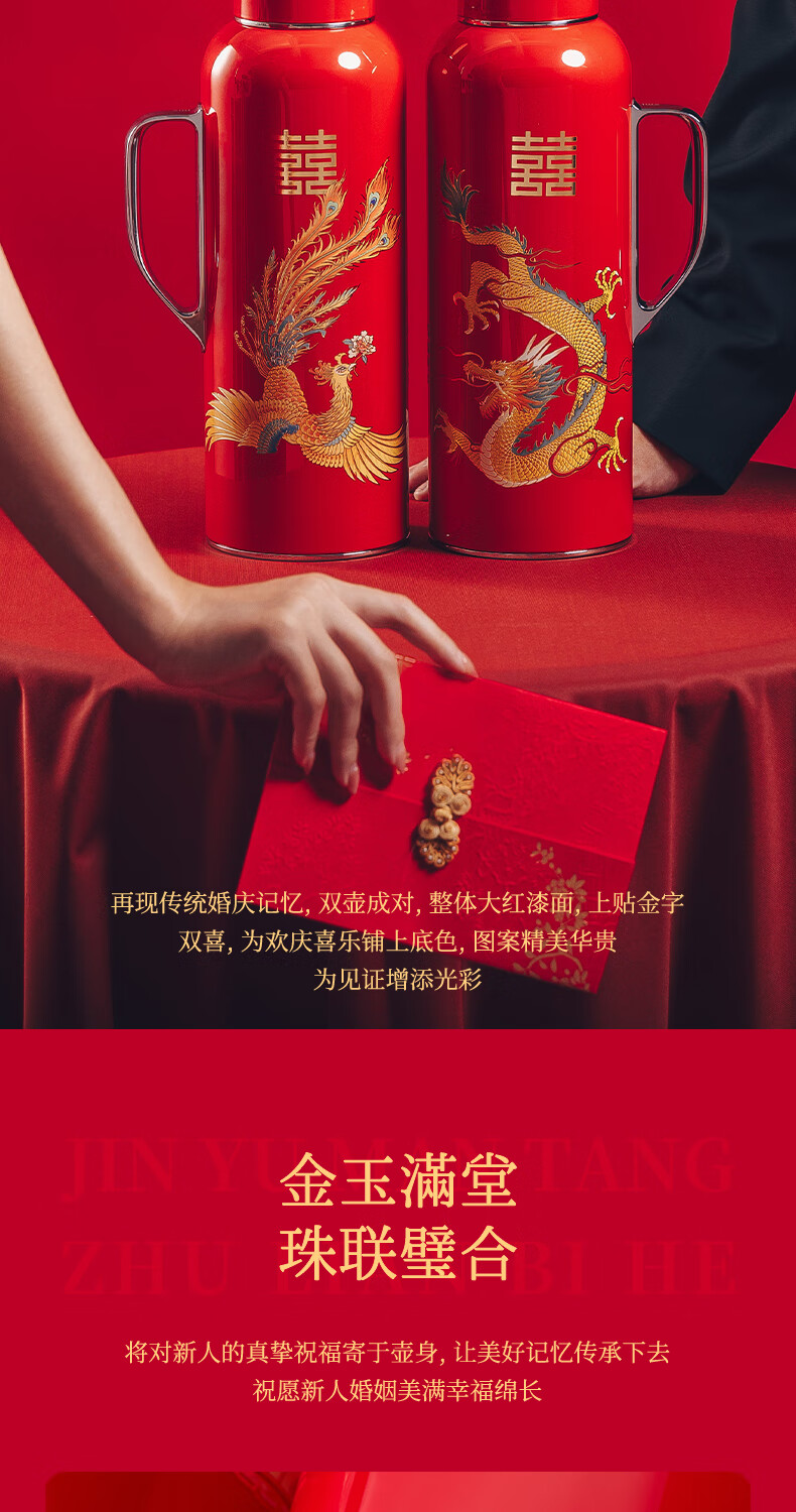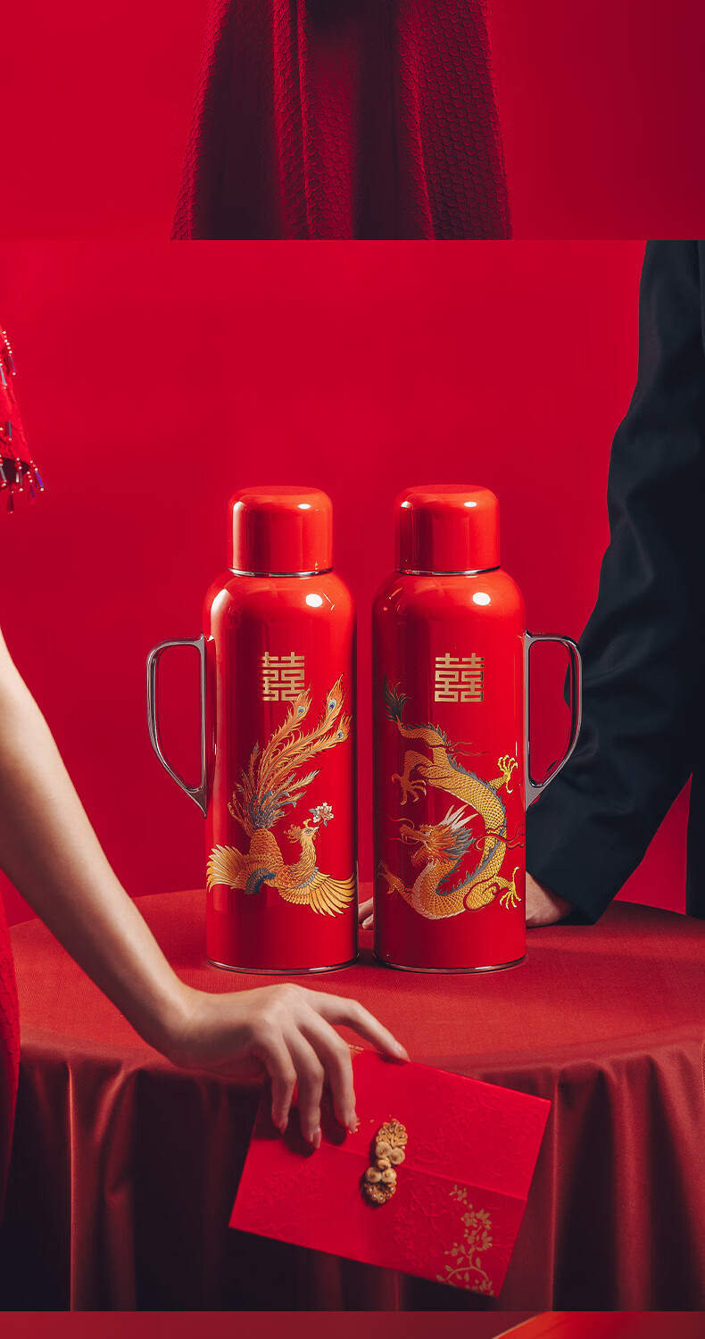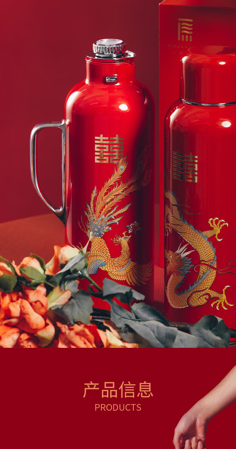 学古龙凤呈祥 · 传家壶 复古婚庆热水壶暖壶热水瓶1.6L对壶结婚送礼