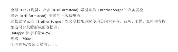 农舍山索涅兄弟(好兄弟)农舍赛松啤酒