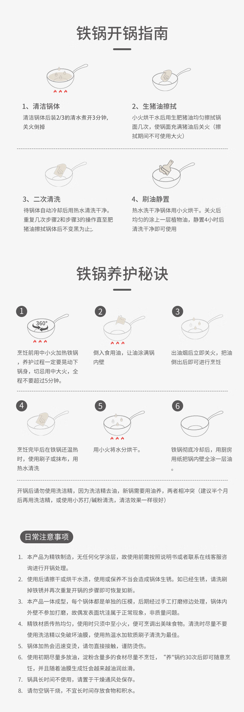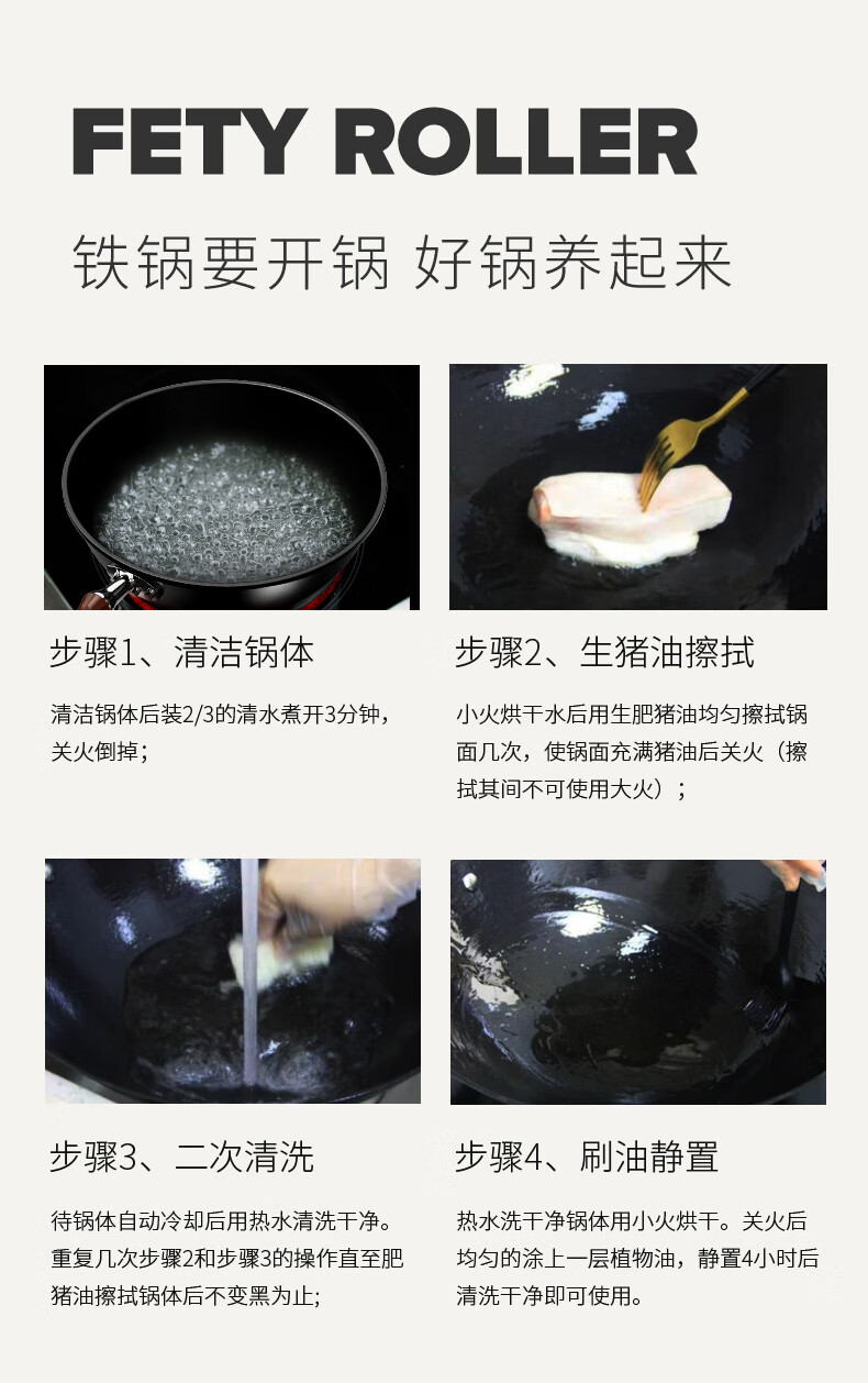 VELOSAN/温仑山 火山岩鹅卵石铁锅32cm 不粘锅 无涂层 精铁锅家用防锈燃气灶通用