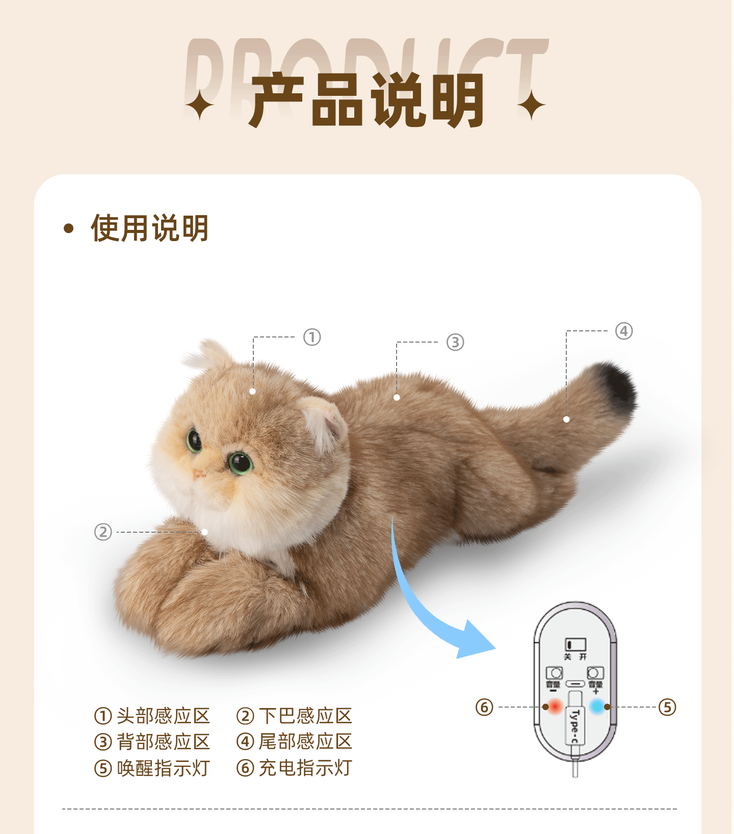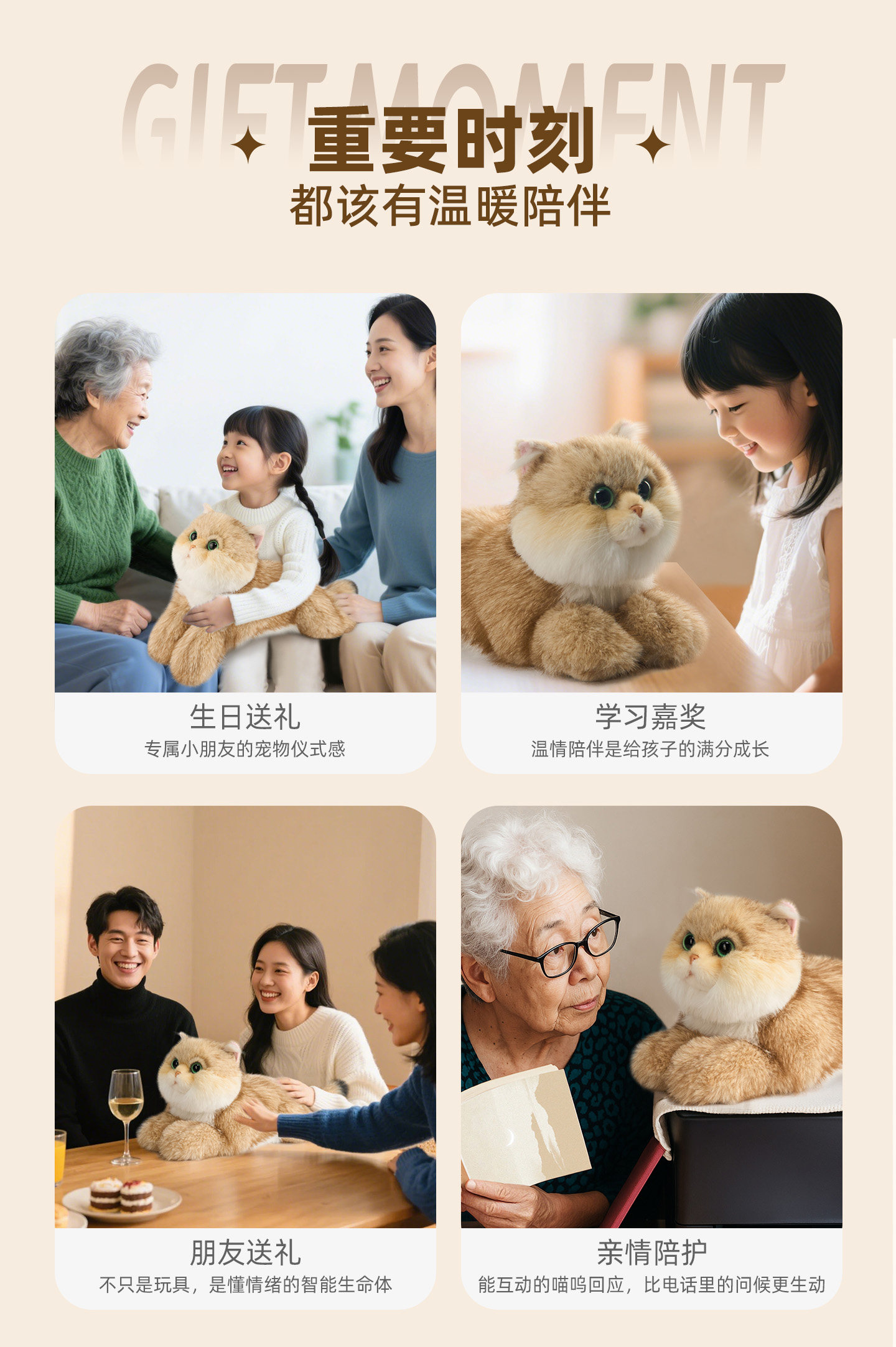 Chongker 仿真智能互动 淡三花金渐层仿真猫咪智能高端电子宠物仿生抱抱喵