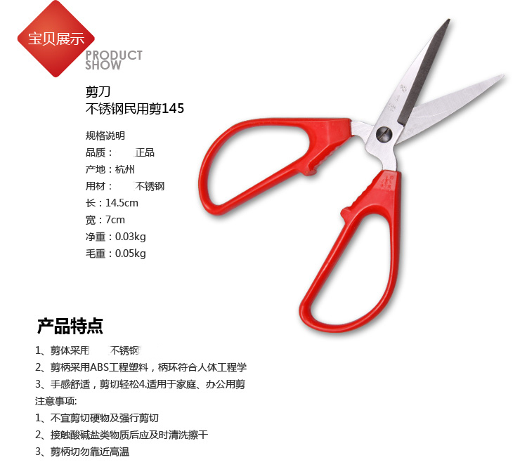 张小泉剪刀HS-145家用厨房办公不锈钢