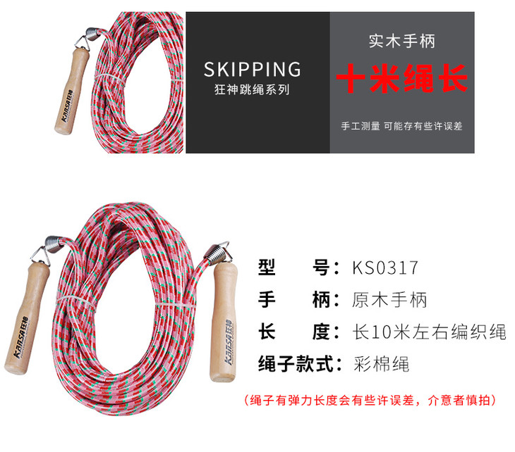 狂神彩色10M群体跳绳KS0317成人儿童室内外运动健身减肥