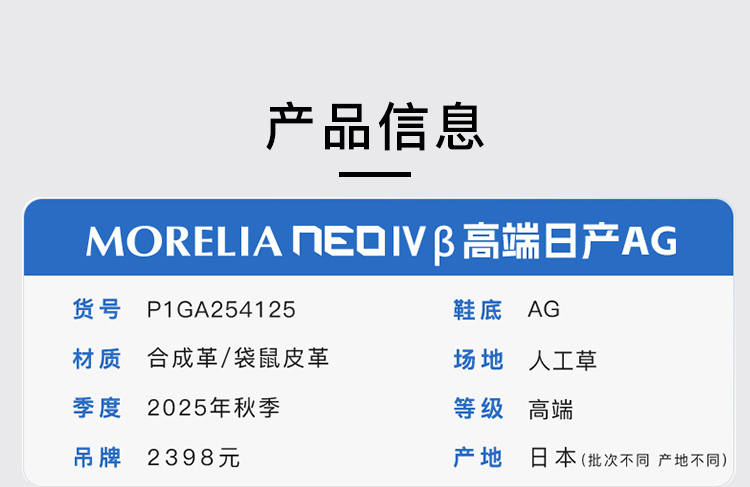 小李子美津浓莫雷拉Morelia NEO4 β贝塔高端AG短钉袋鼠皮足球鞋P1GA254125