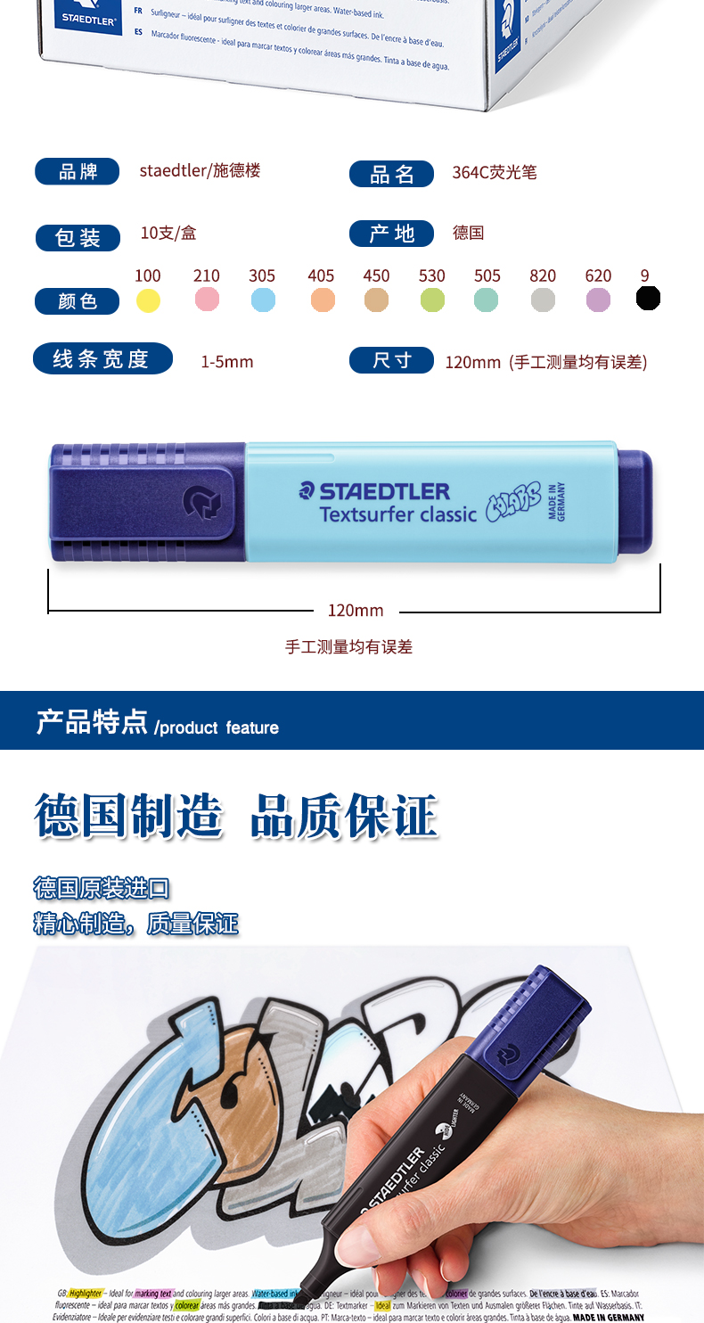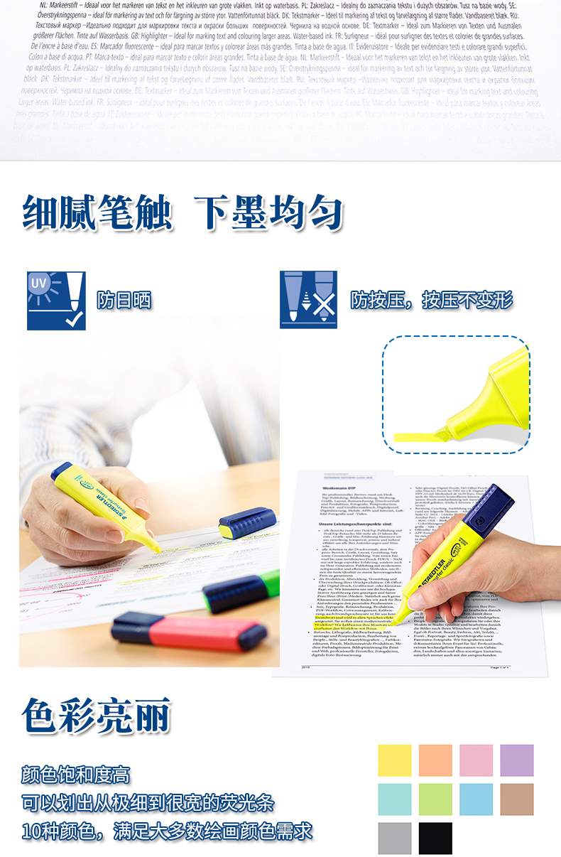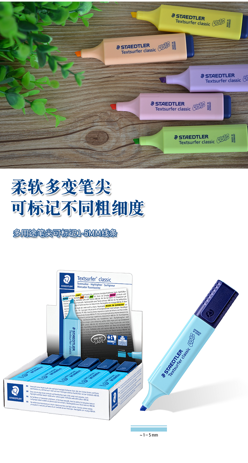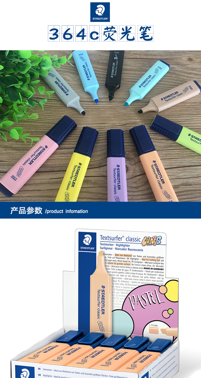 施德楼马卡龙喷墨隐形荧光笔364C标记记号笔划重点糖果色学生用