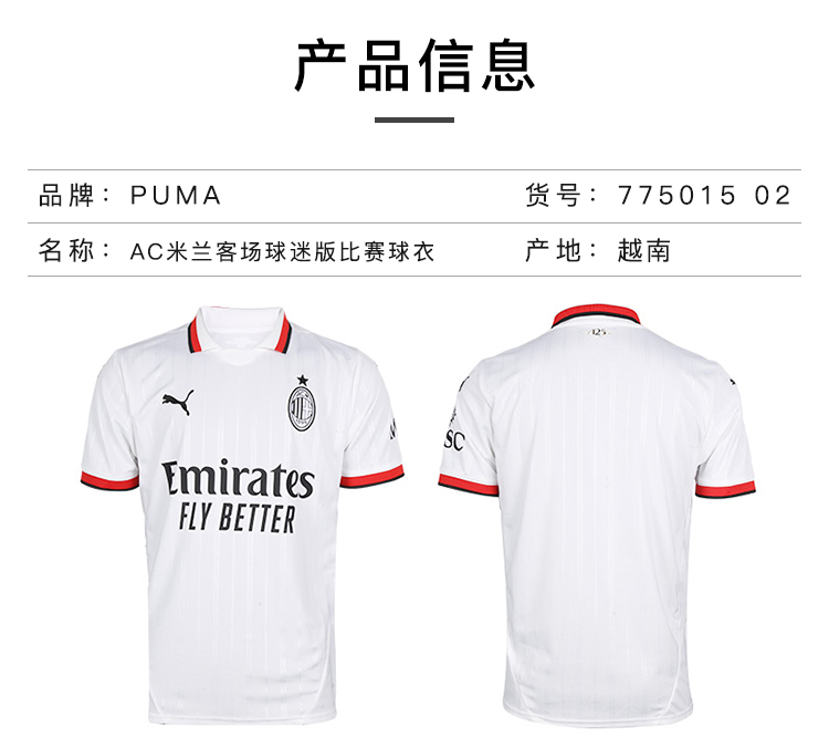 小李子PUMA彪马24/25赛季AC米兰客场球迷版比赛球衣成人男775015 02