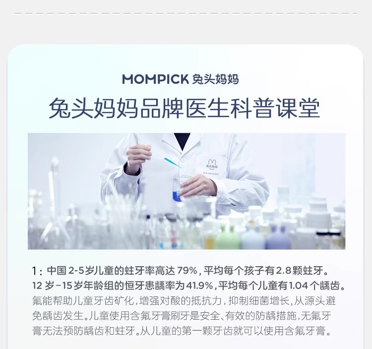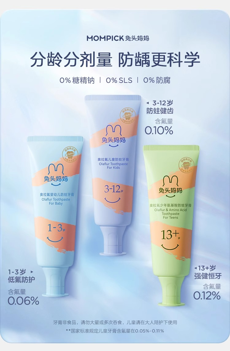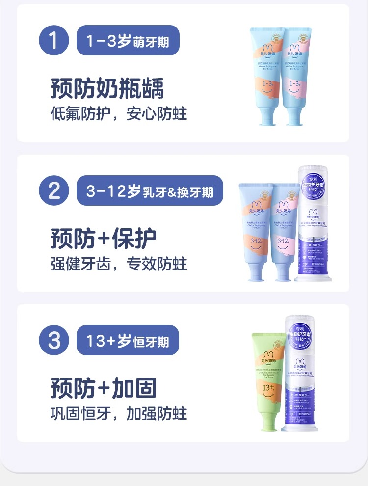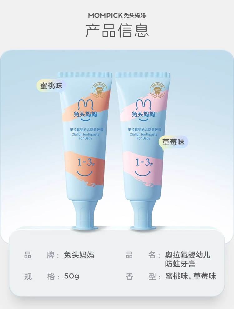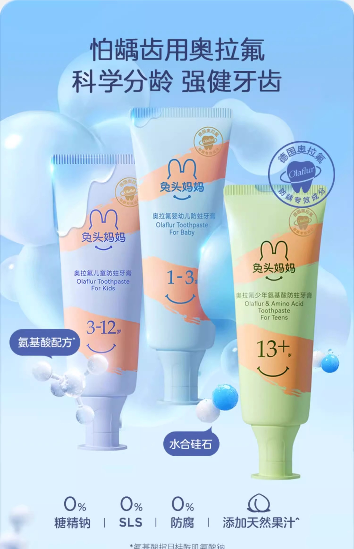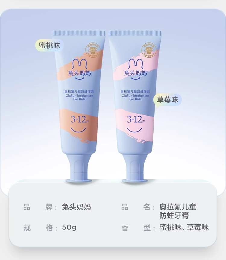 3-12岁(草莓味)50g兔头妈妈奥拉氟儿童防蛀牙膏