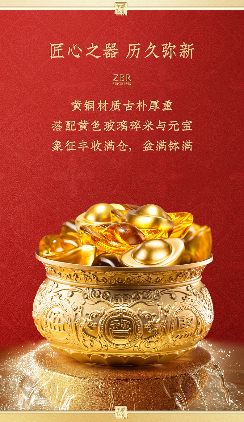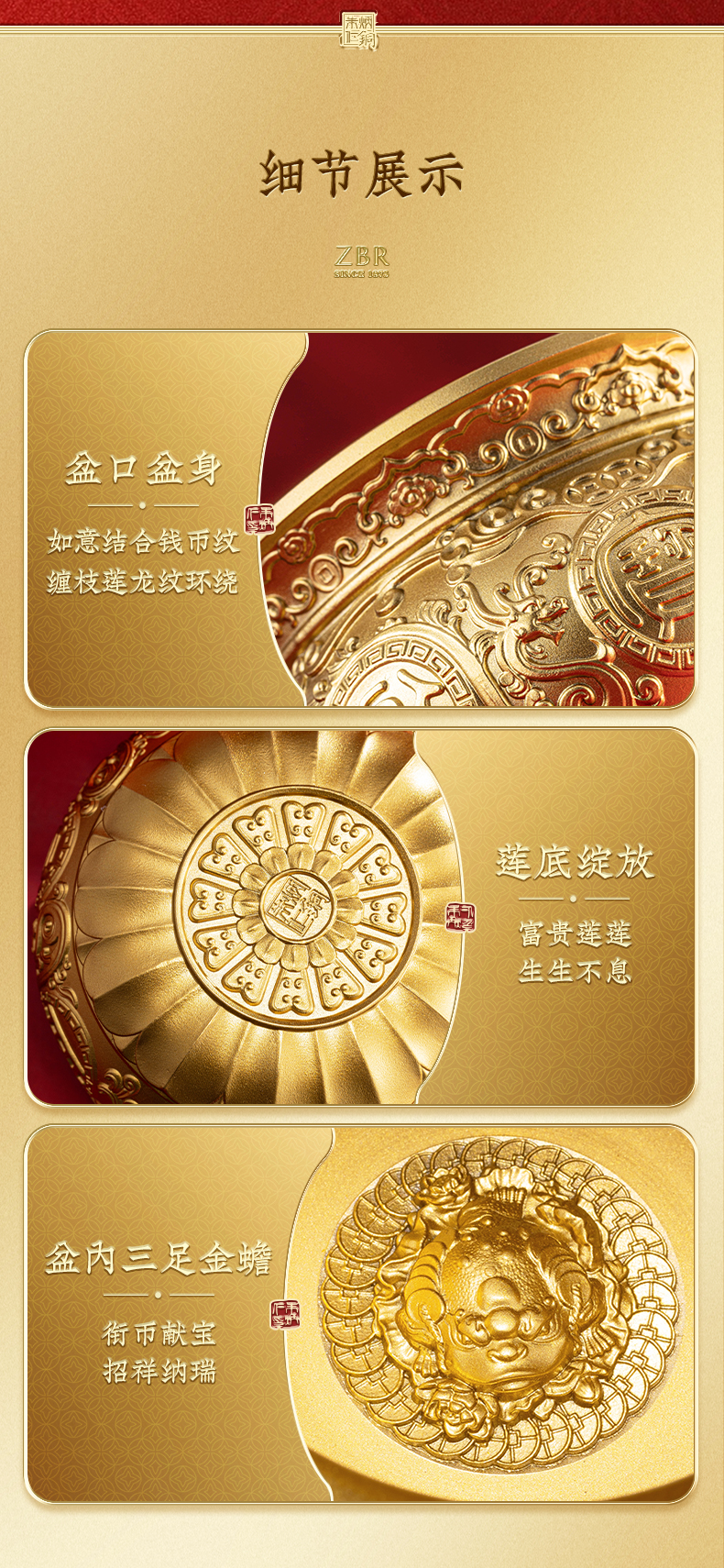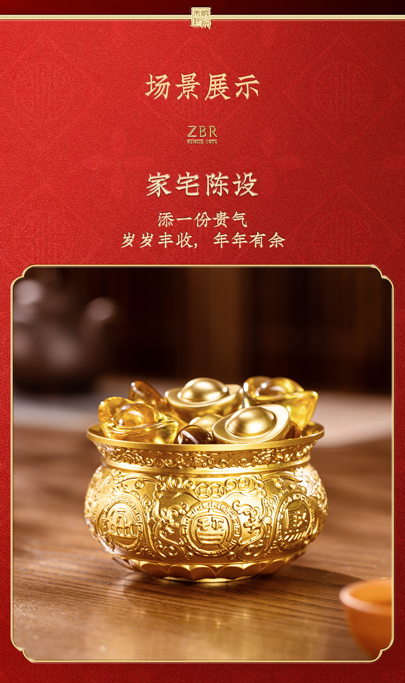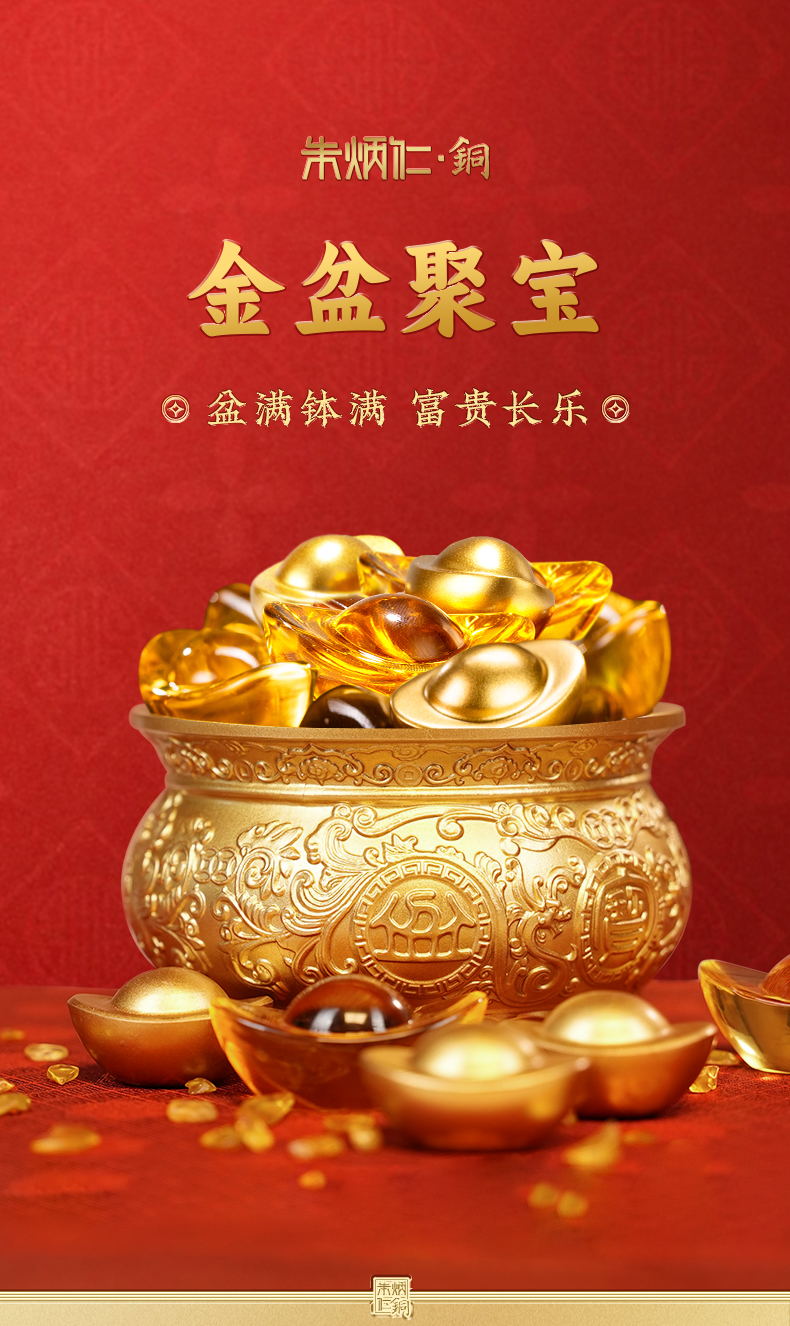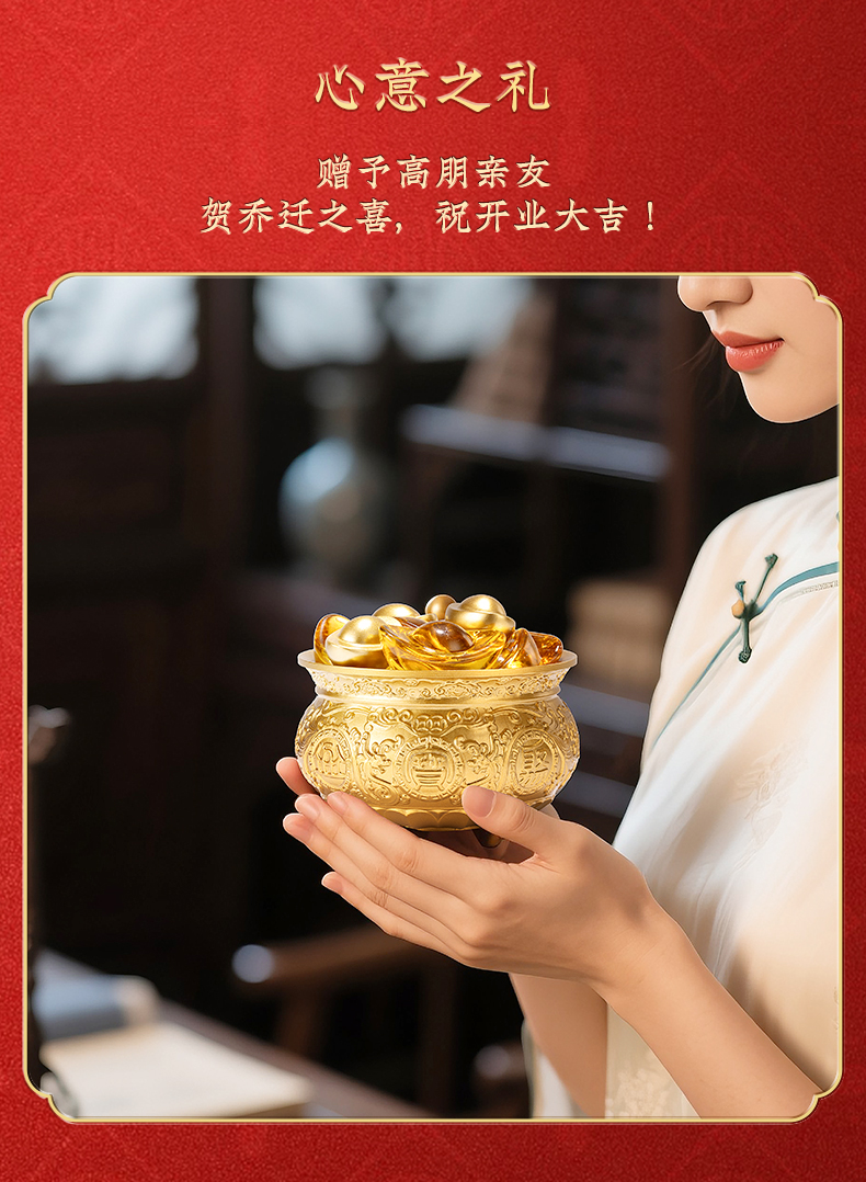 朱炳仁铜 金盆聚宝礼盒套装 桌面招财高档聚宝盆客厅摆件开业乔迁礼物