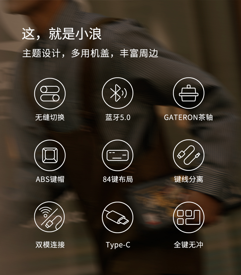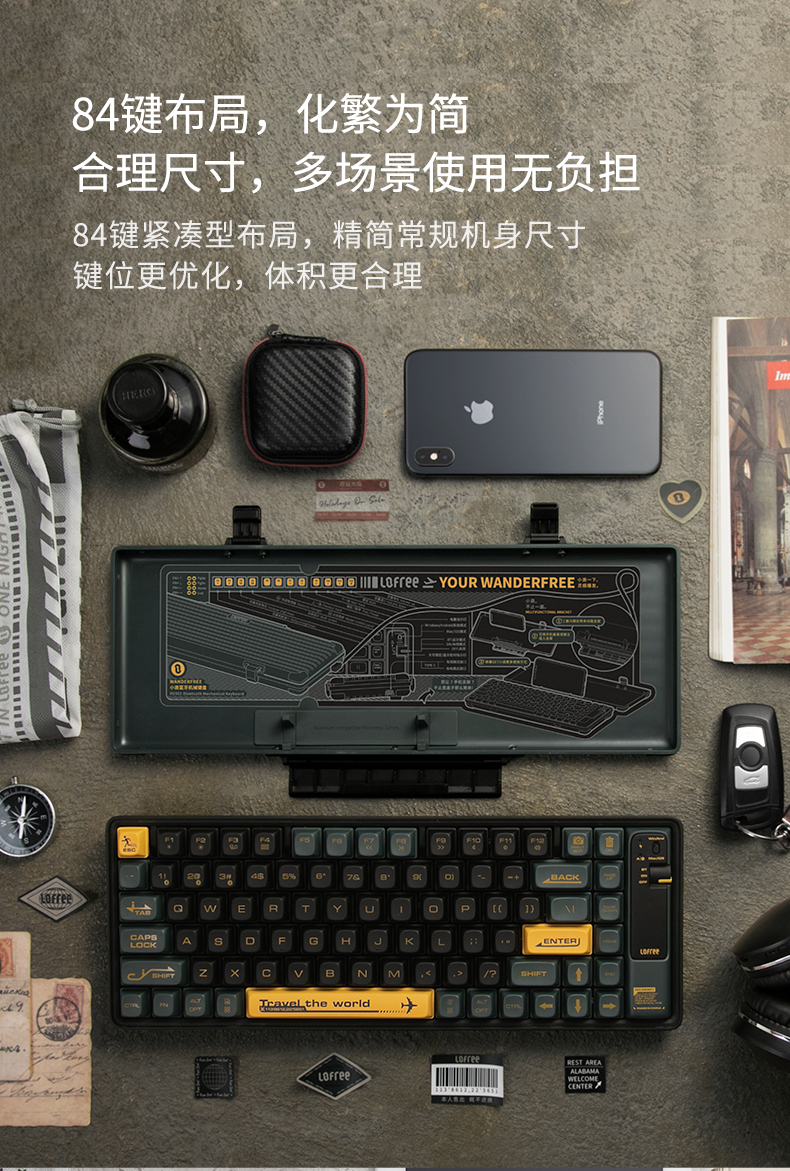 lofree洛斐小浪机械键盘无线蓝牙ipad游戏电竞电脑笔记本茶轴84键