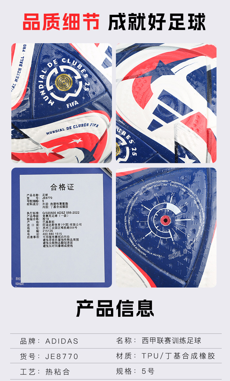 小李子阿迪达斯25赛季世俱杯5号足球热粘合A/Pro标赛事球JE8770