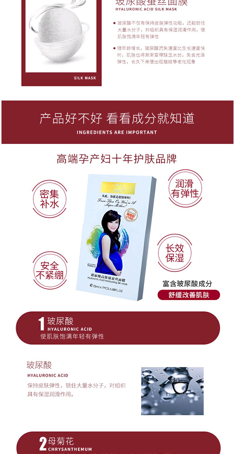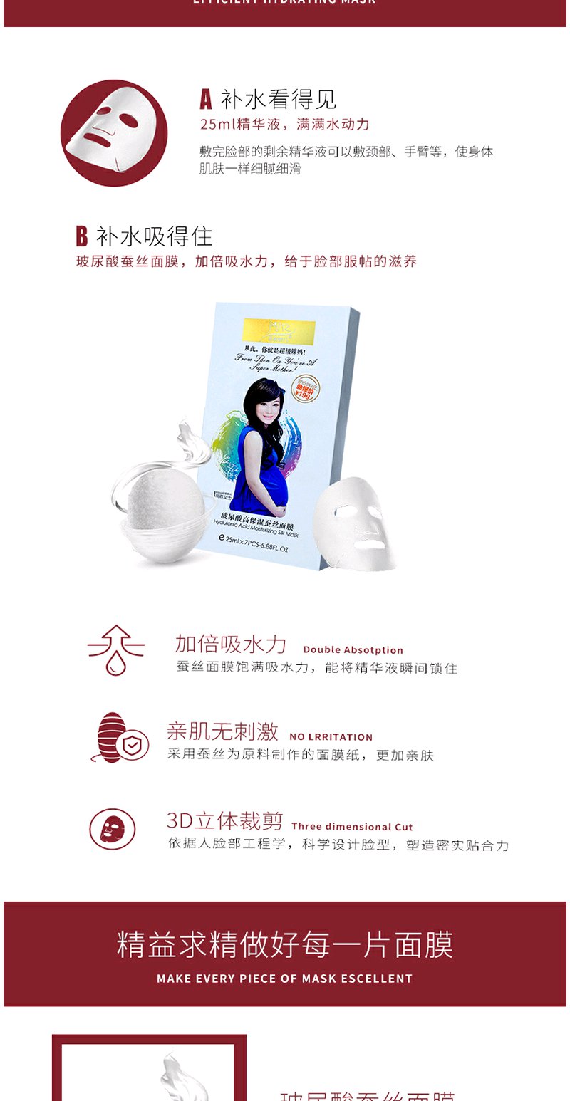 金韵娇儿-1JY01063玻尿酸高保湿蚕丝面膜单片 25ml*1片