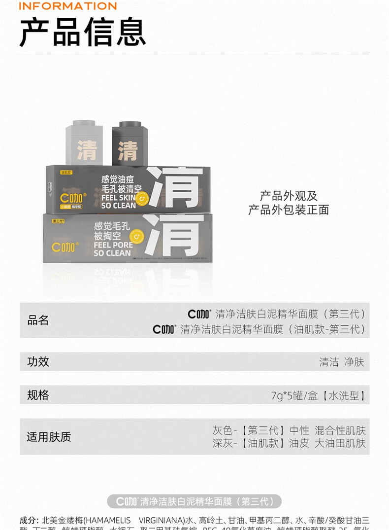 C咖 金缕梅泥膜7g*5罐白泥精华清洁毛孔补水保湿去黑头 100013695121