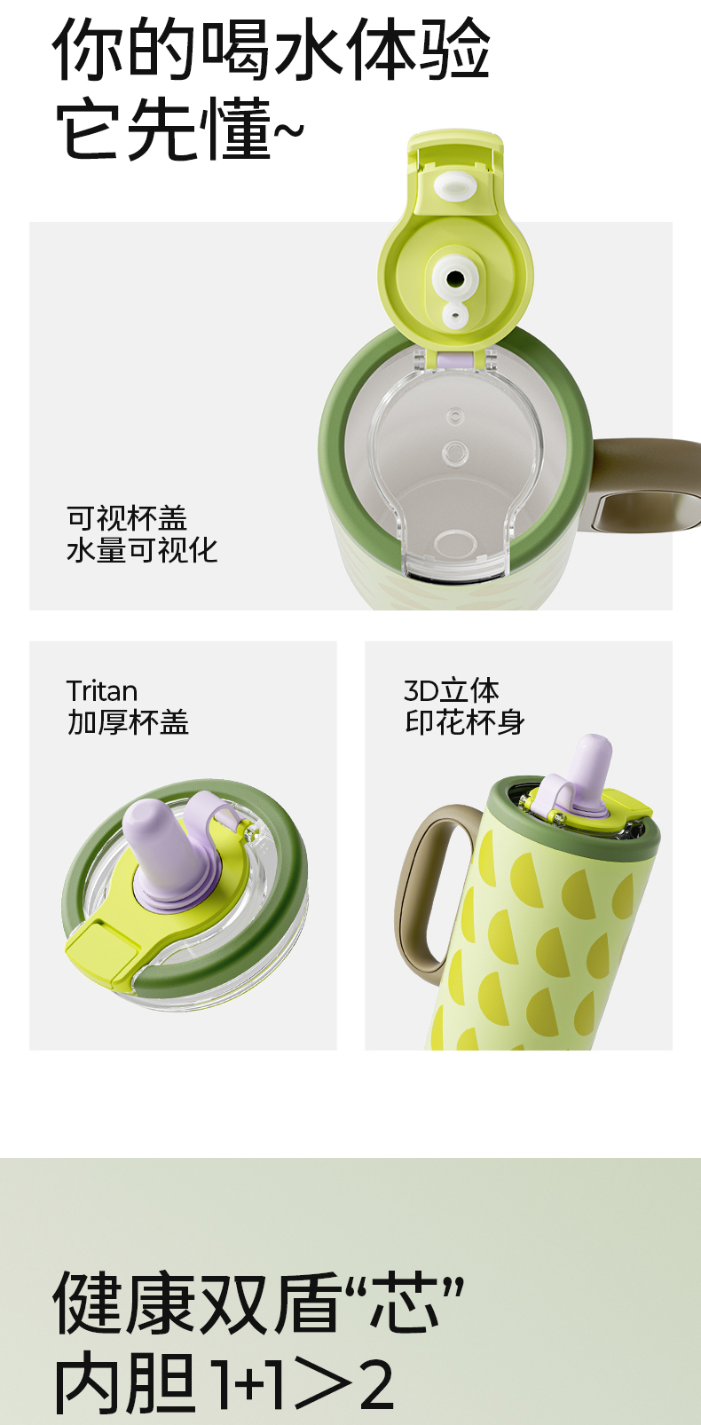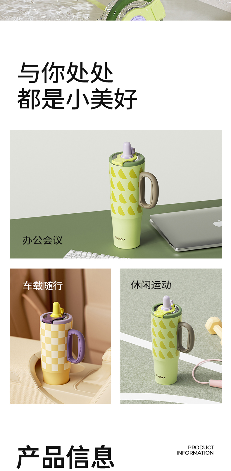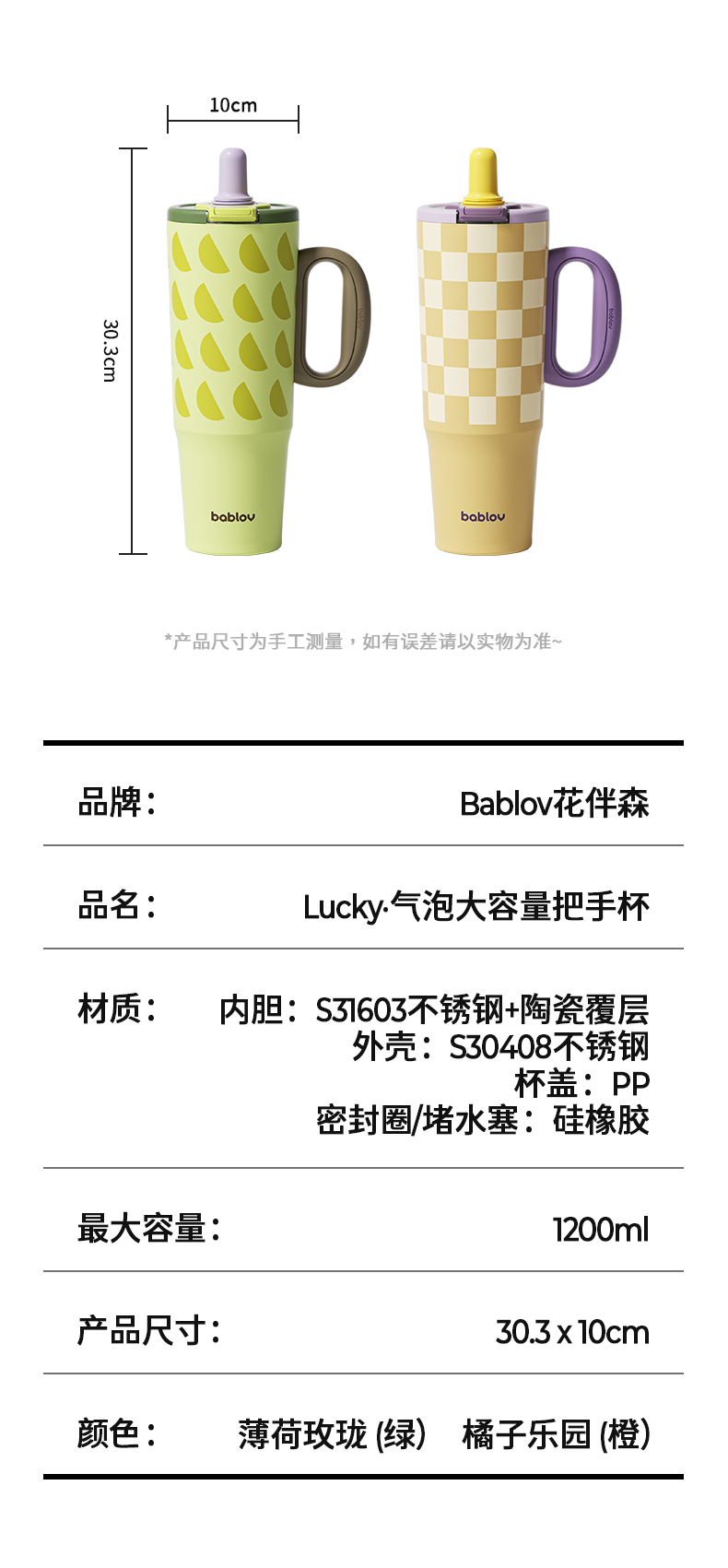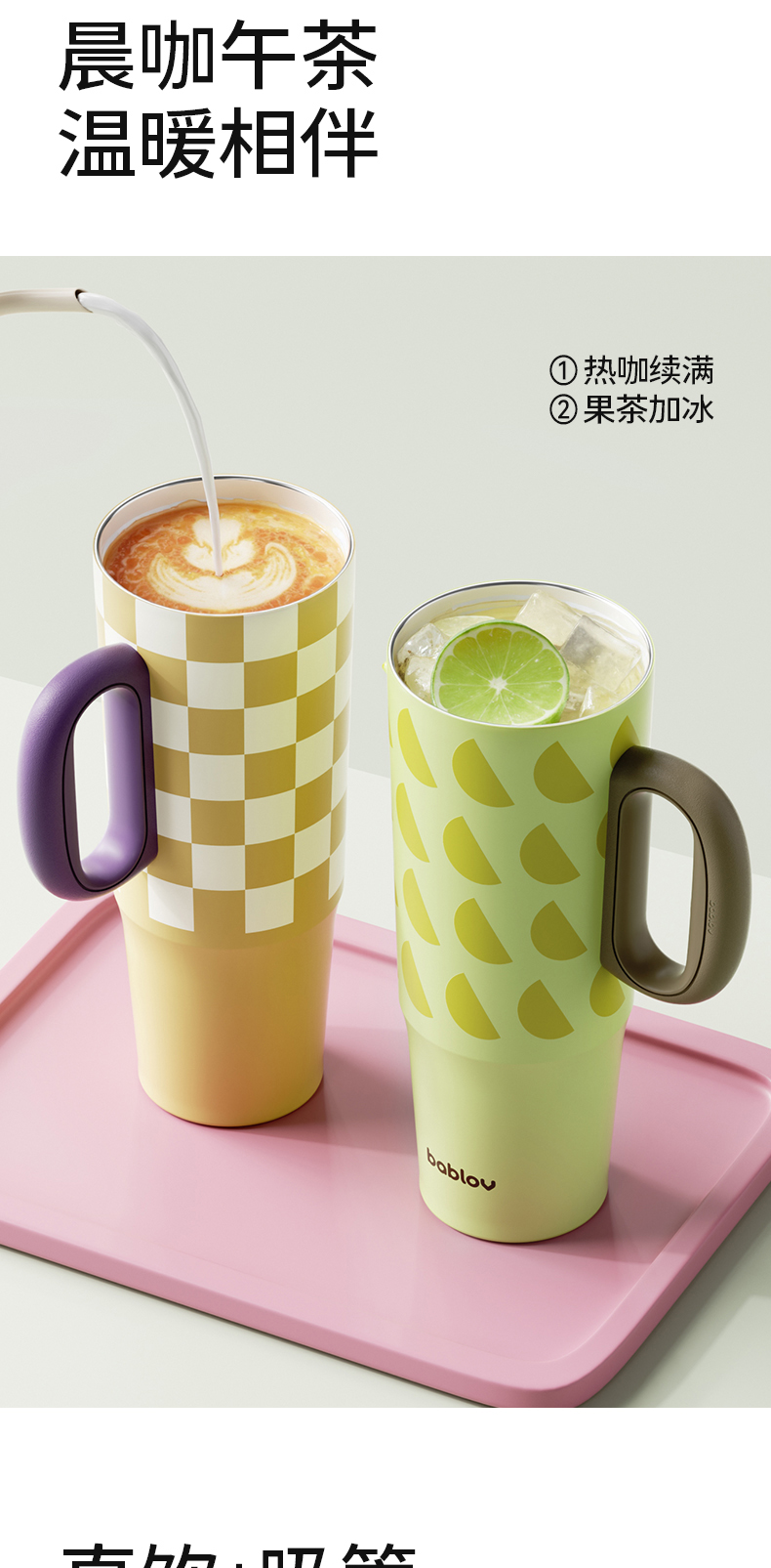 bablov巨无霸保温杯大容量吸管杯陶瓷覆层办公室水杯高颜值杯子女