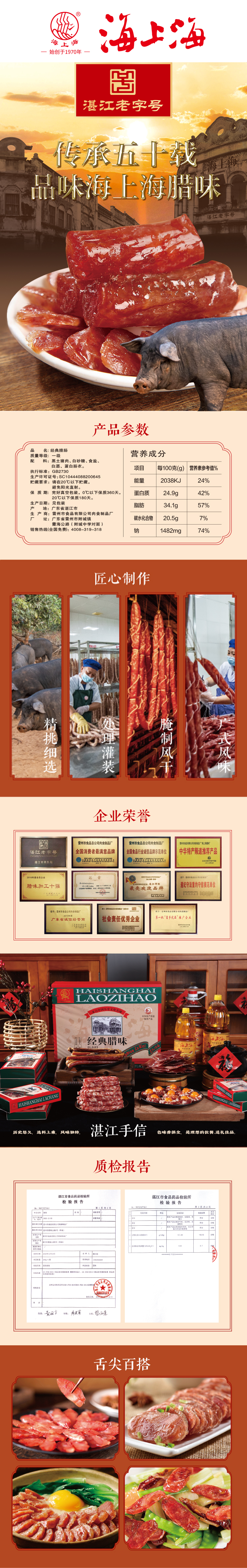 【雷州帮扶】海上海丨黑土猪肉经典腊肠 500g/盒