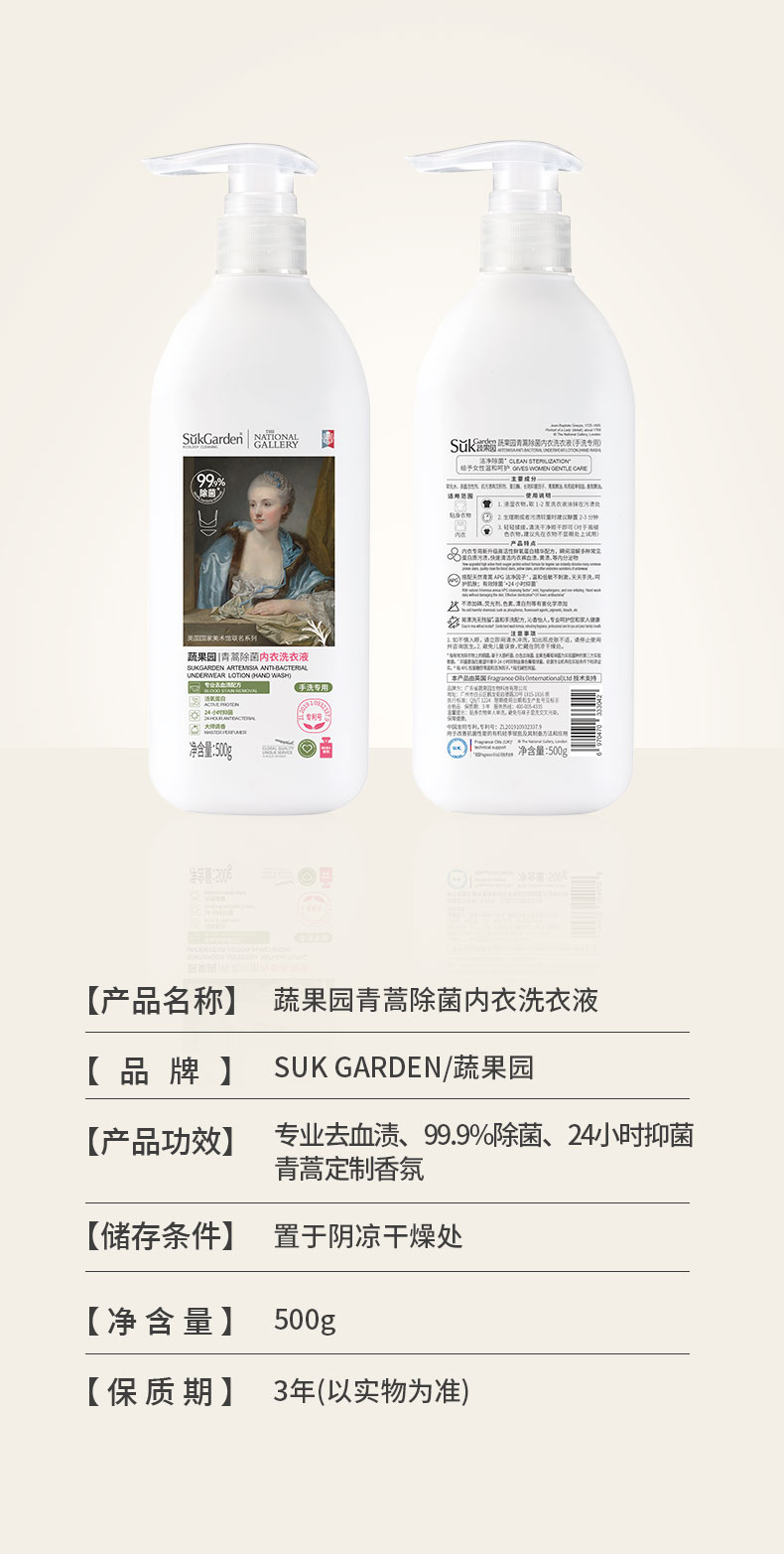 蔬果园SukGarden青蒿除菌内衣洗衣液 500g*瓶
