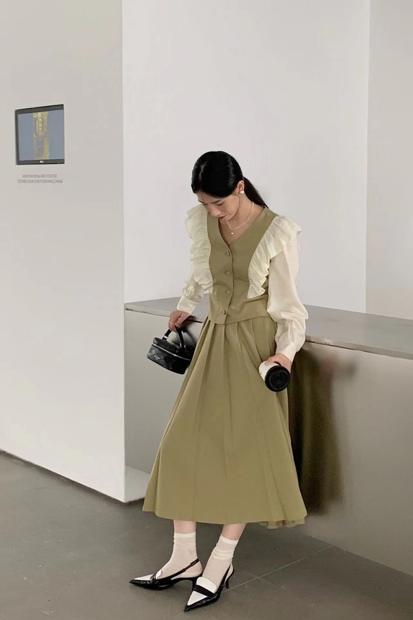 Le Malene 木耳边设计感上衣半裙套装 17170