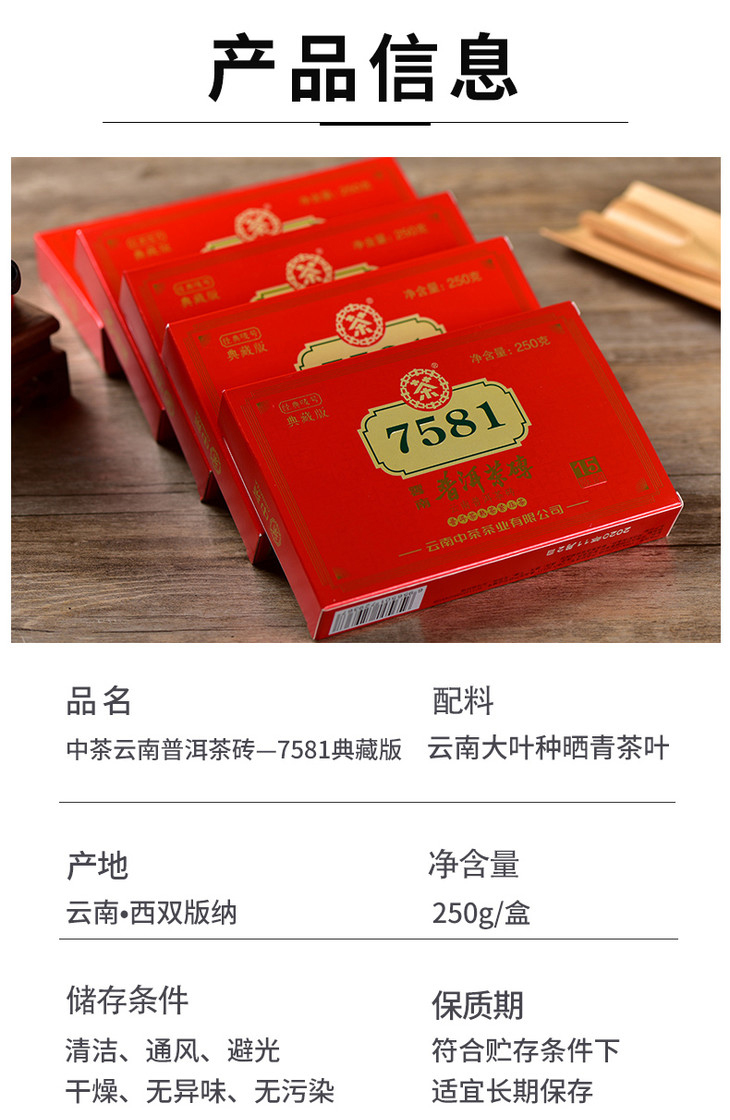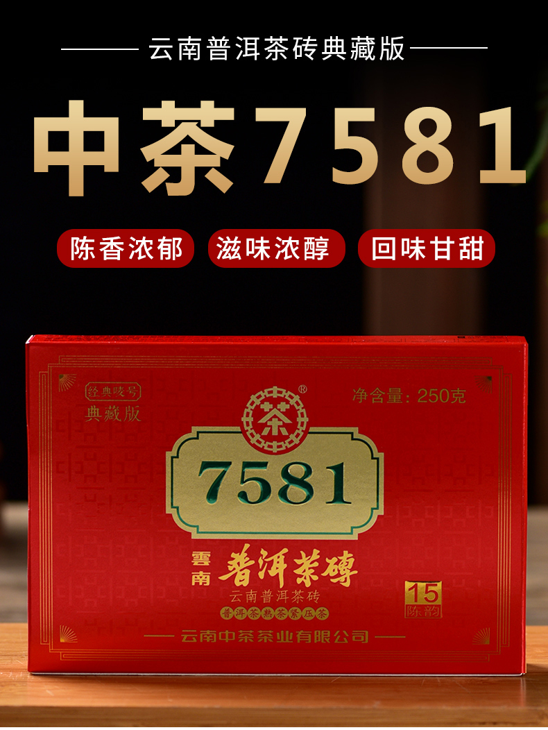 中粮-中茶普洱茶7581(十五年窖藏陈韵)经典唛号典藏版 2020年经典唛号典藏版普洱茶熟茶 250克/云南干仓直发