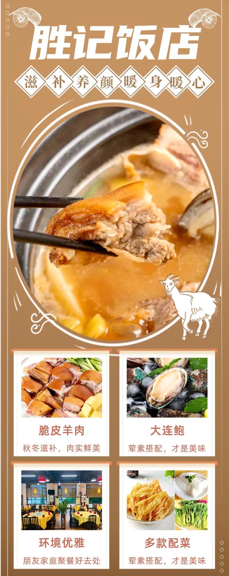 抢购截止日期1月25日【胜记饭店丨番禺区·万博翠湖花园】鲜美暖胃吃“脆皮”羊宴,人均不到50!¥138抢3人餐=脆皮羊肉+大连鲍+多种配菜!