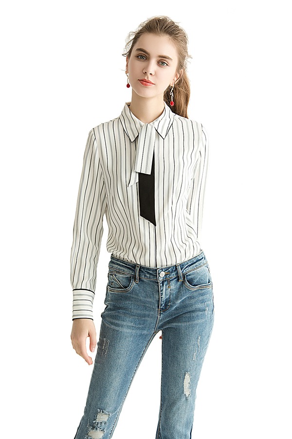 LILY 黑灰竖条纹领结衬衫 1479