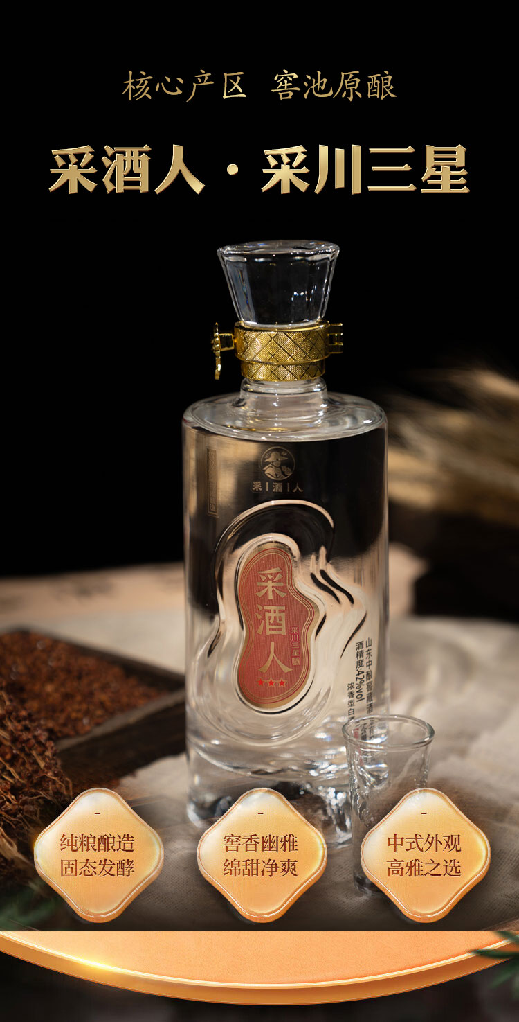 采酒人 采川三星 浓香型白酒500ml*1瓶 酒精度42%vol