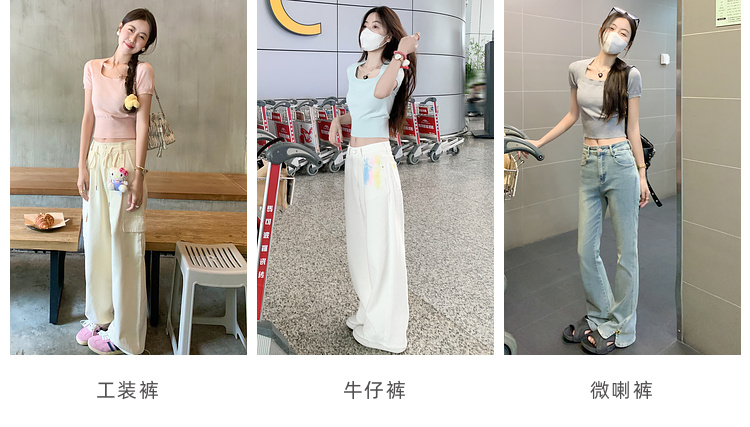 杏色工装裤