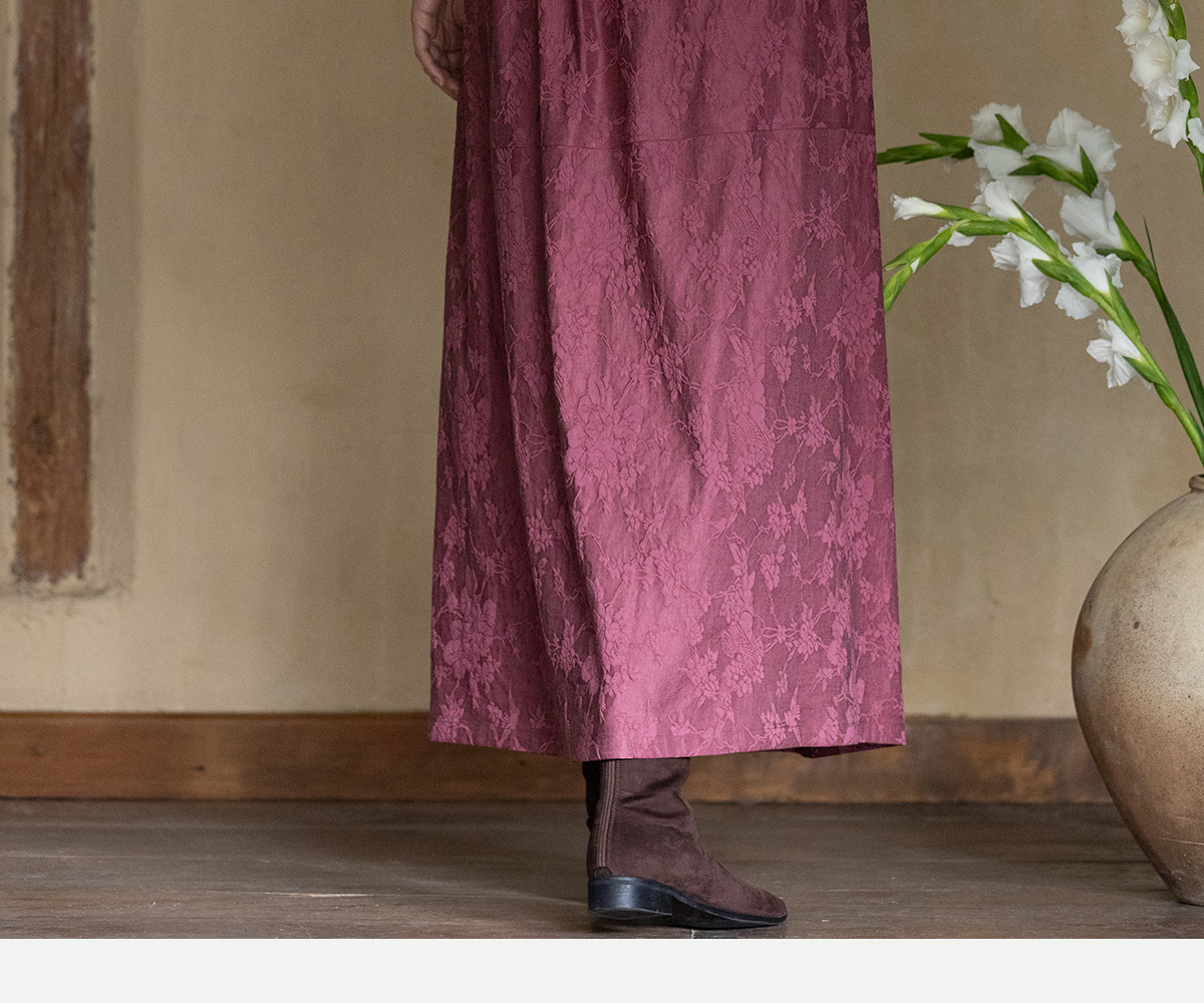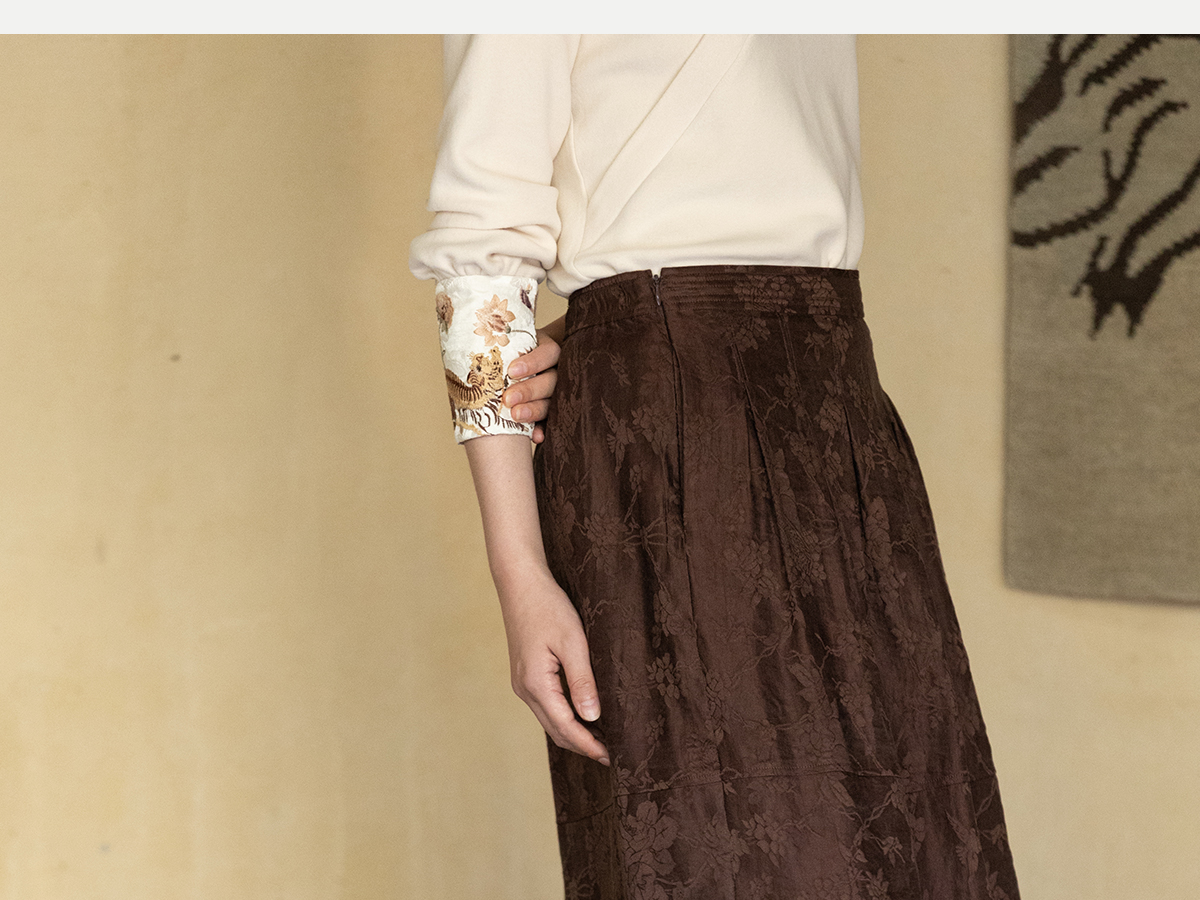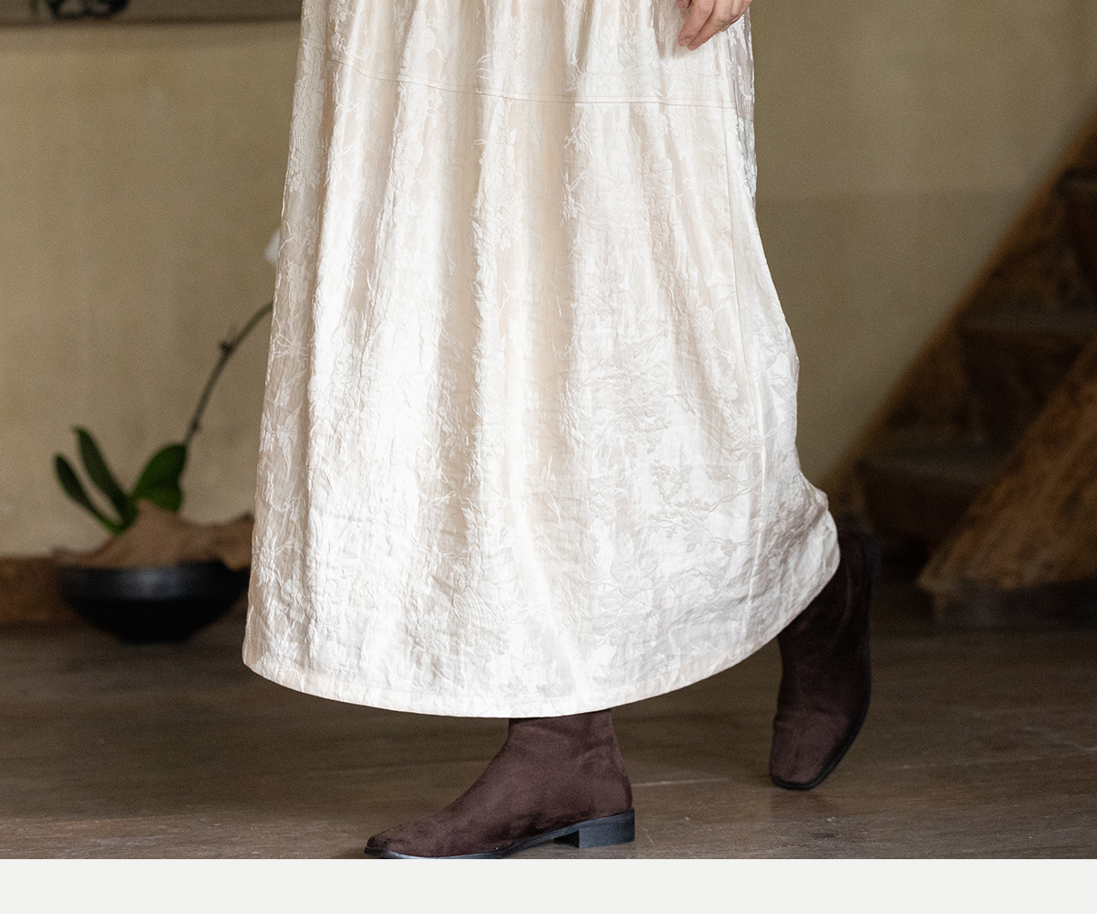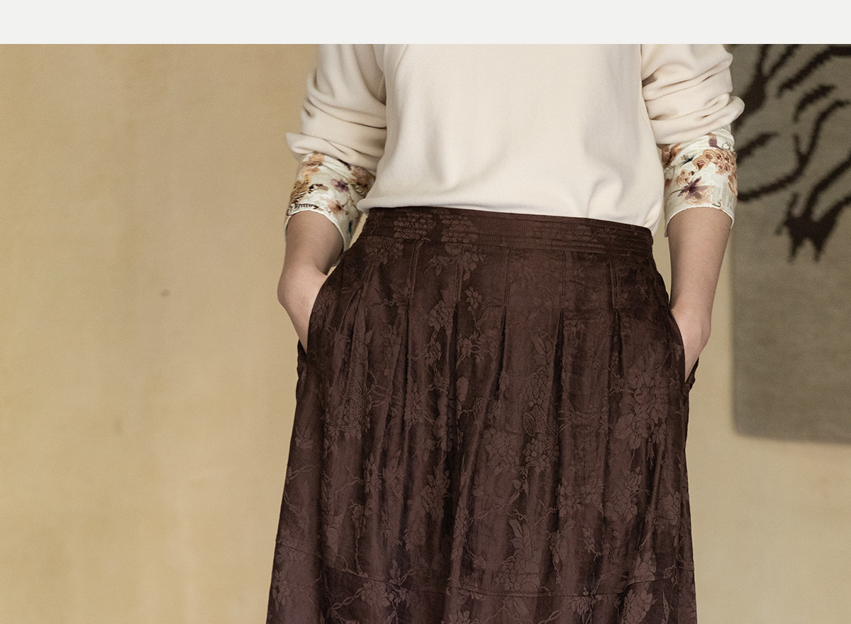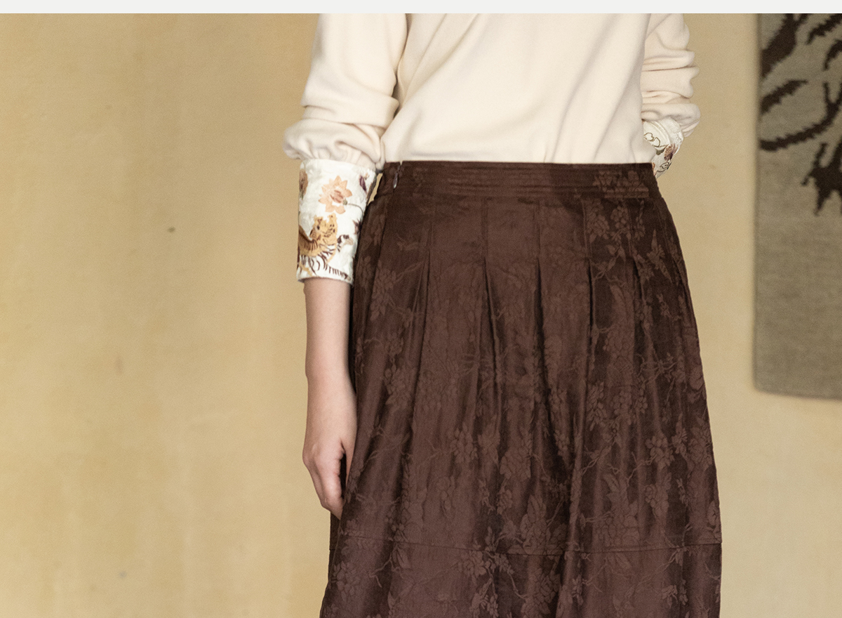 牧衣游原创 芍药提花半裙秋新款柔软轻盈宽松百搭A字半身裙 蜜尔