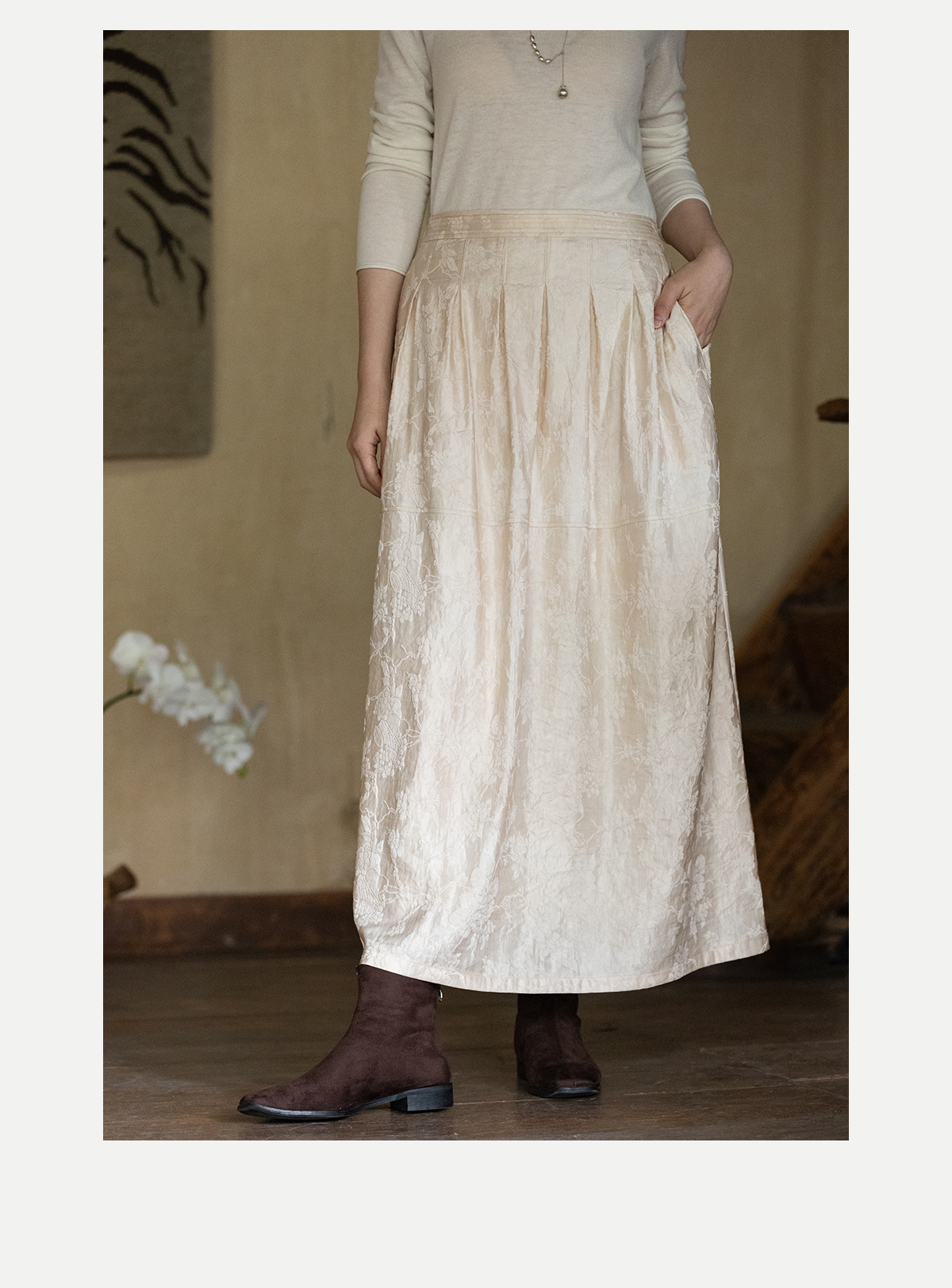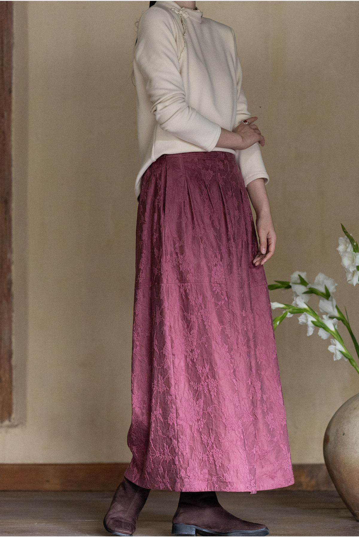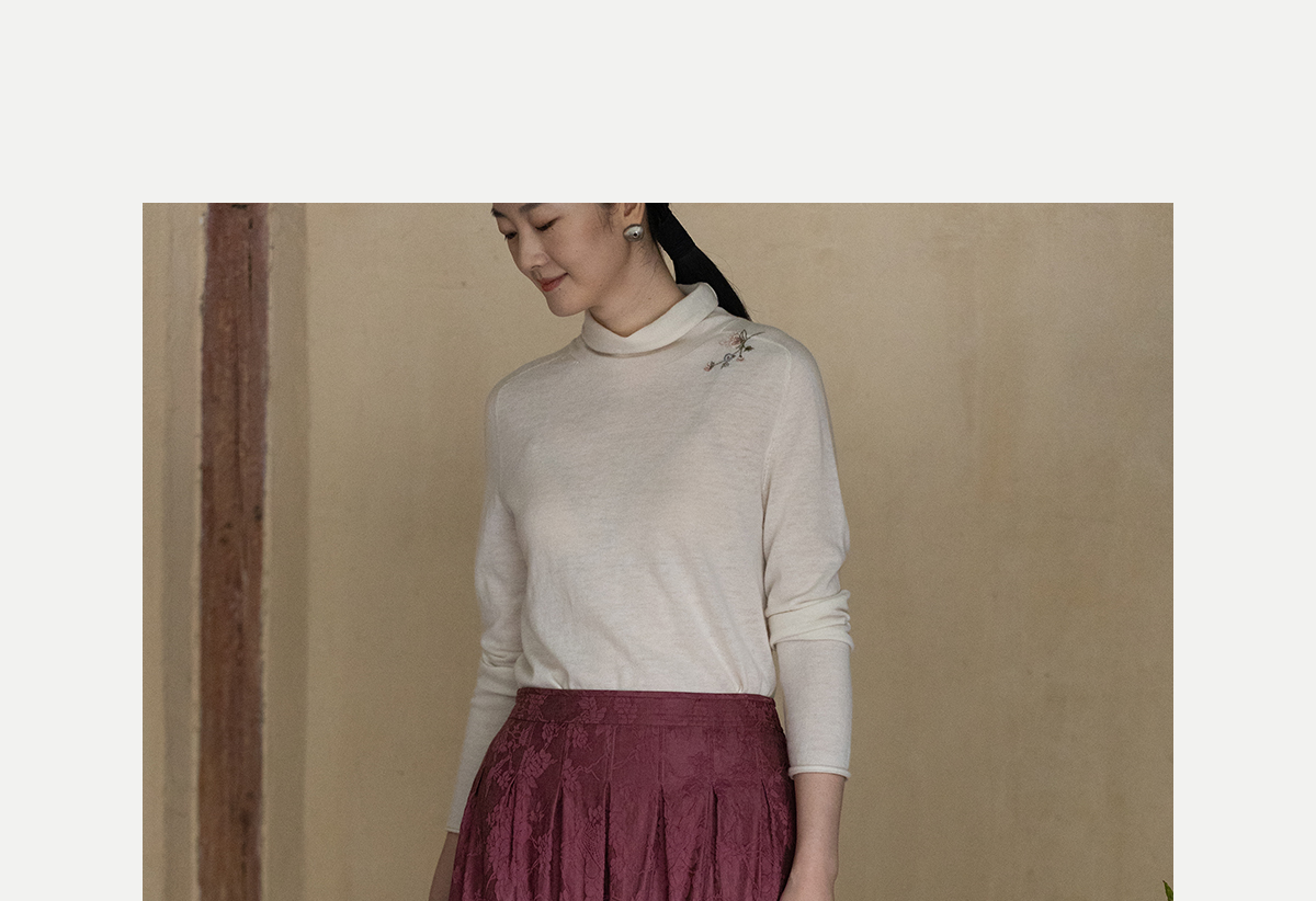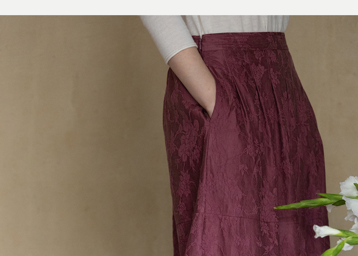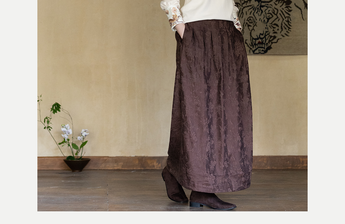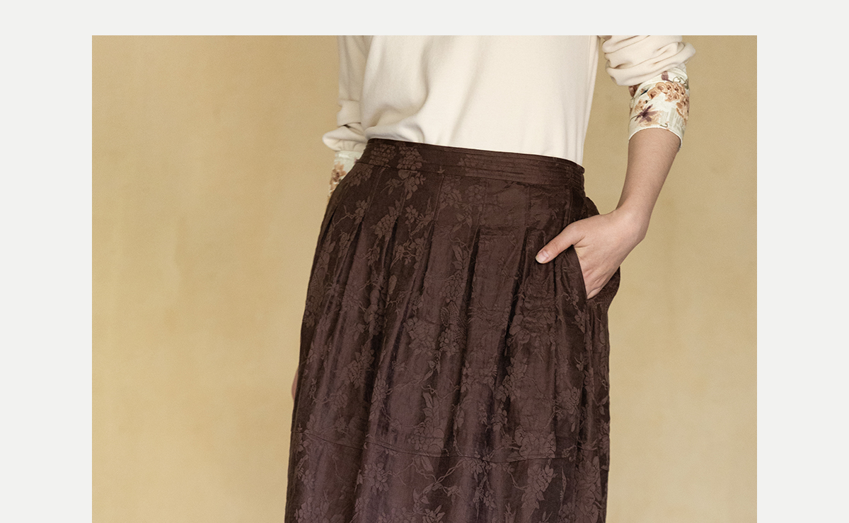 牧衣游原创 芍药提花半裙秋新款柔软轻盈宽松百搭A字半身裙 蜜尔