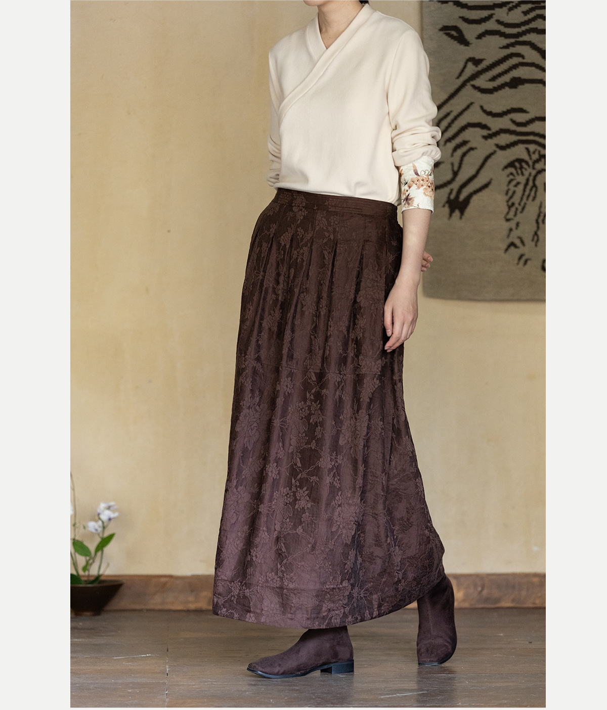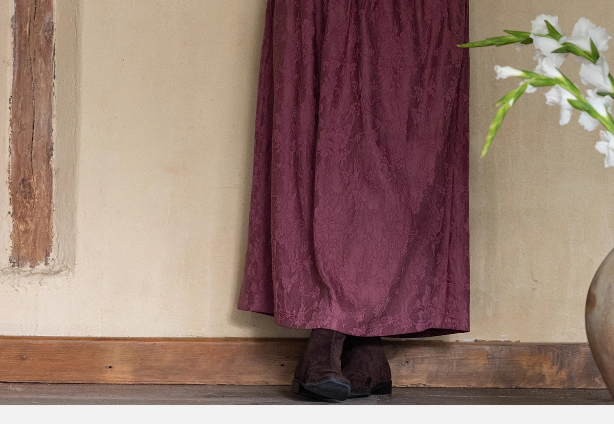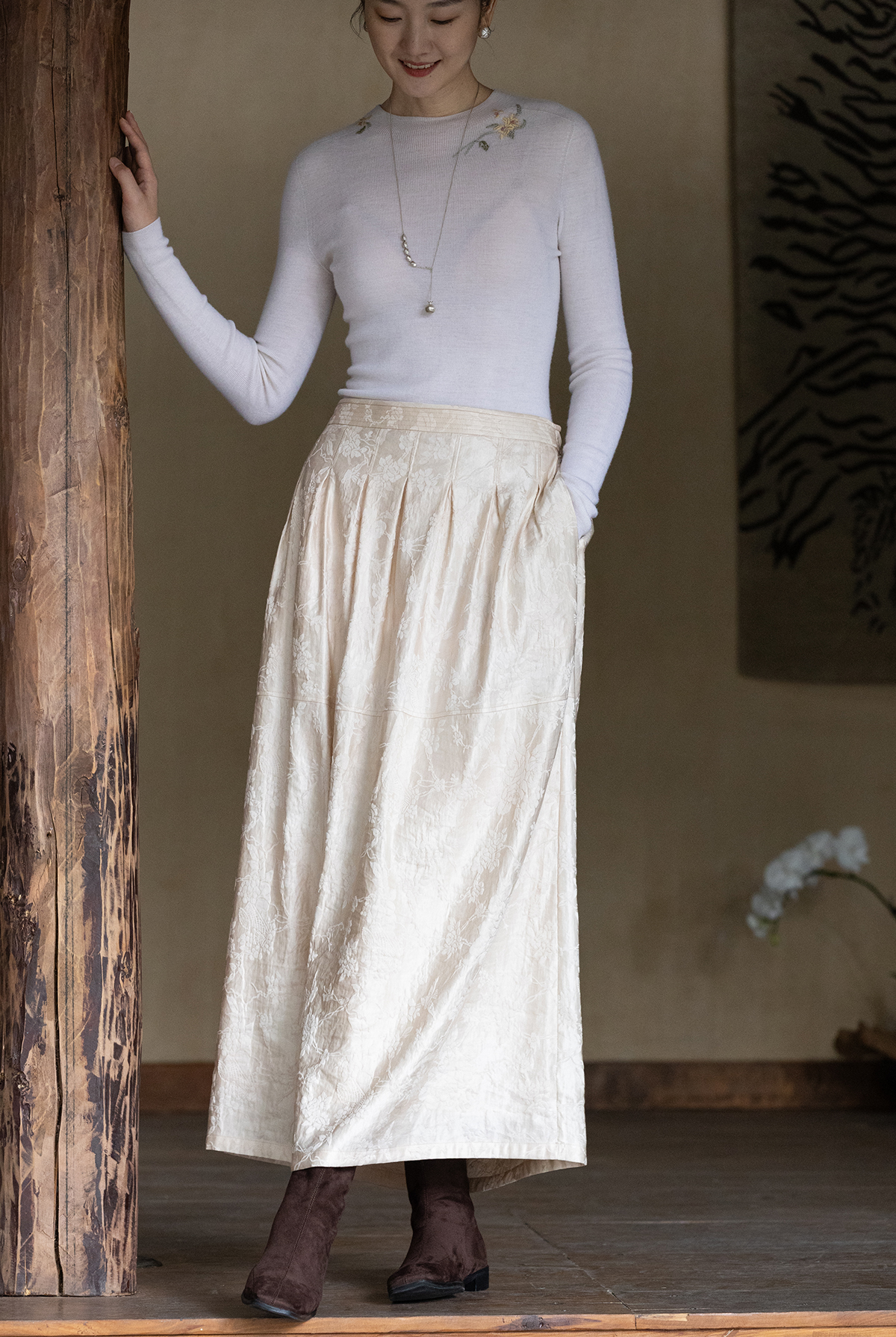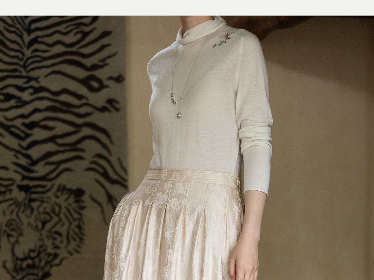 牧衣游原创 芍药提花半裙秋新款柔软轻盈宽松百搭A字半身裙 蜜尔