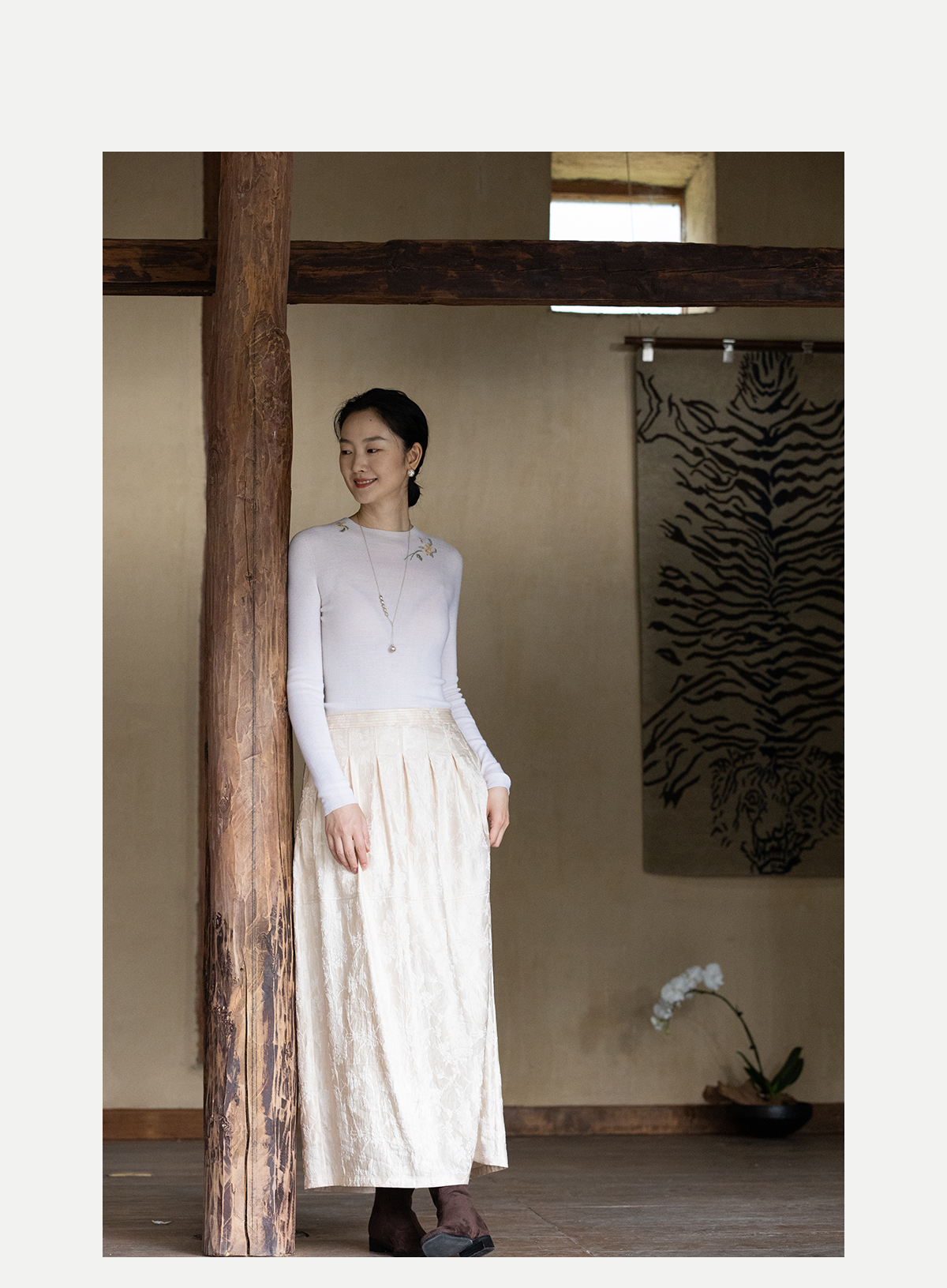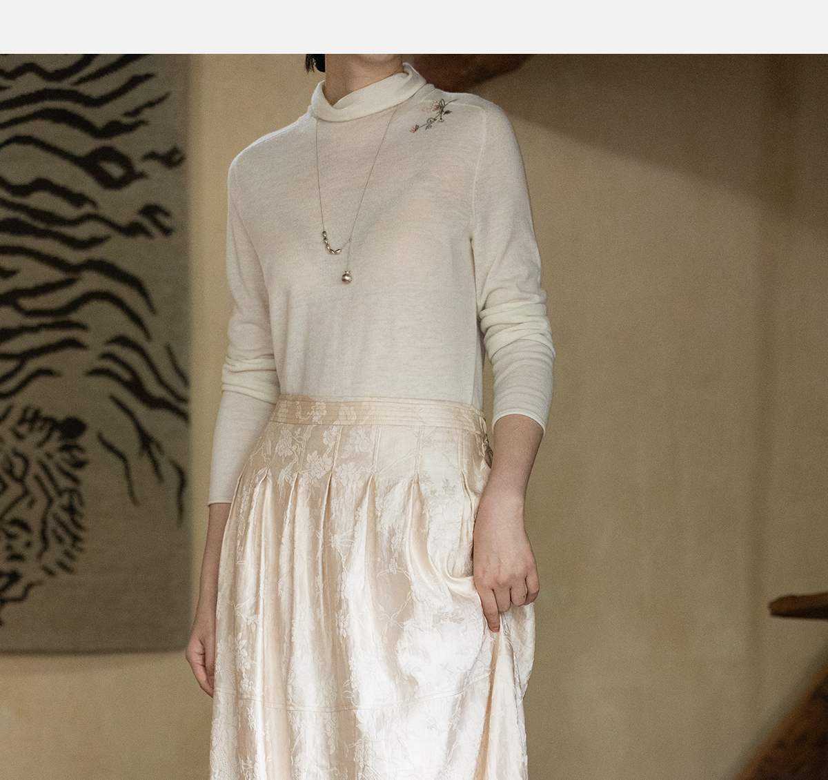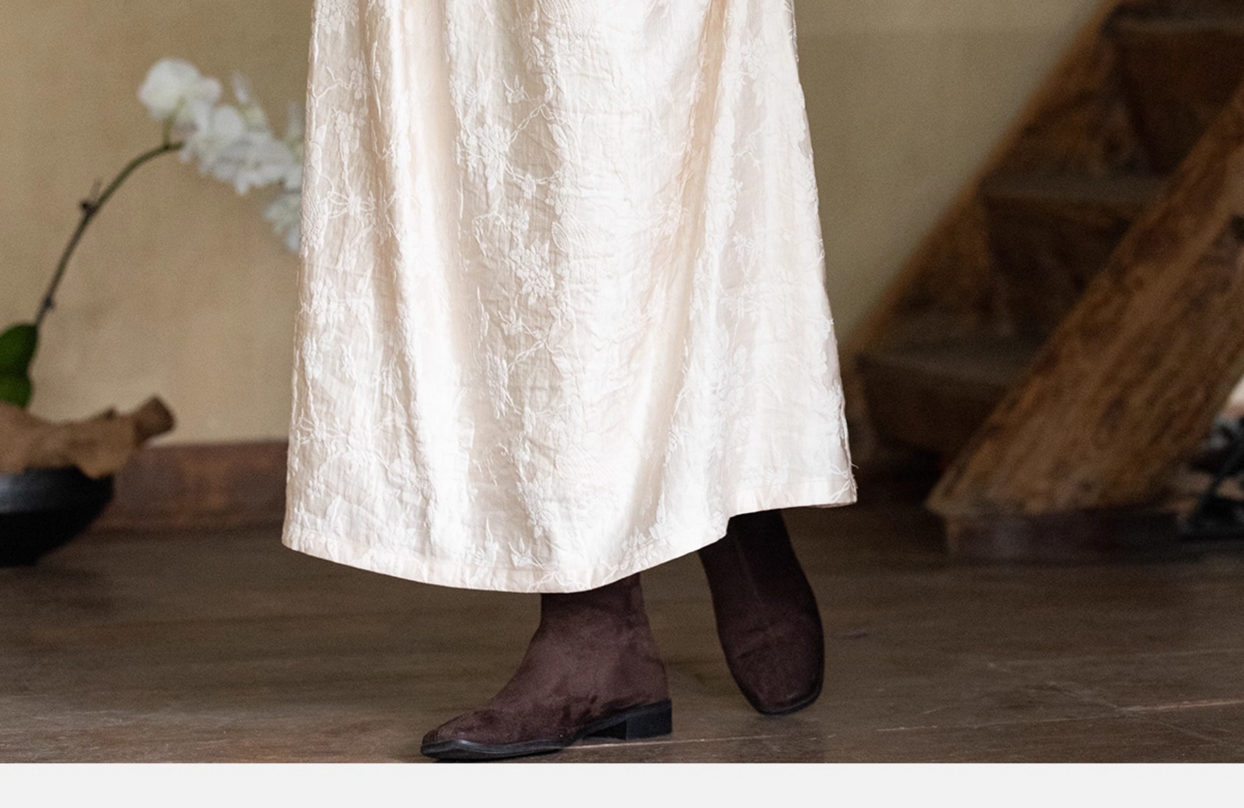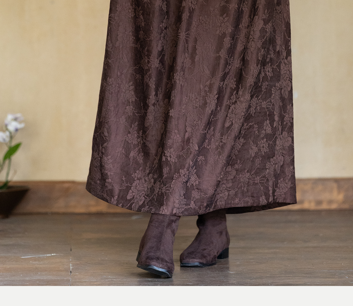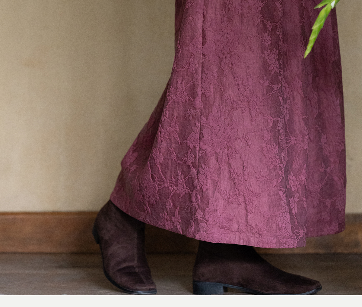 牧衣游原创 芍药提花半裙秋新款柔软轻盈宽松百搭A字半身裙 蜜尔
